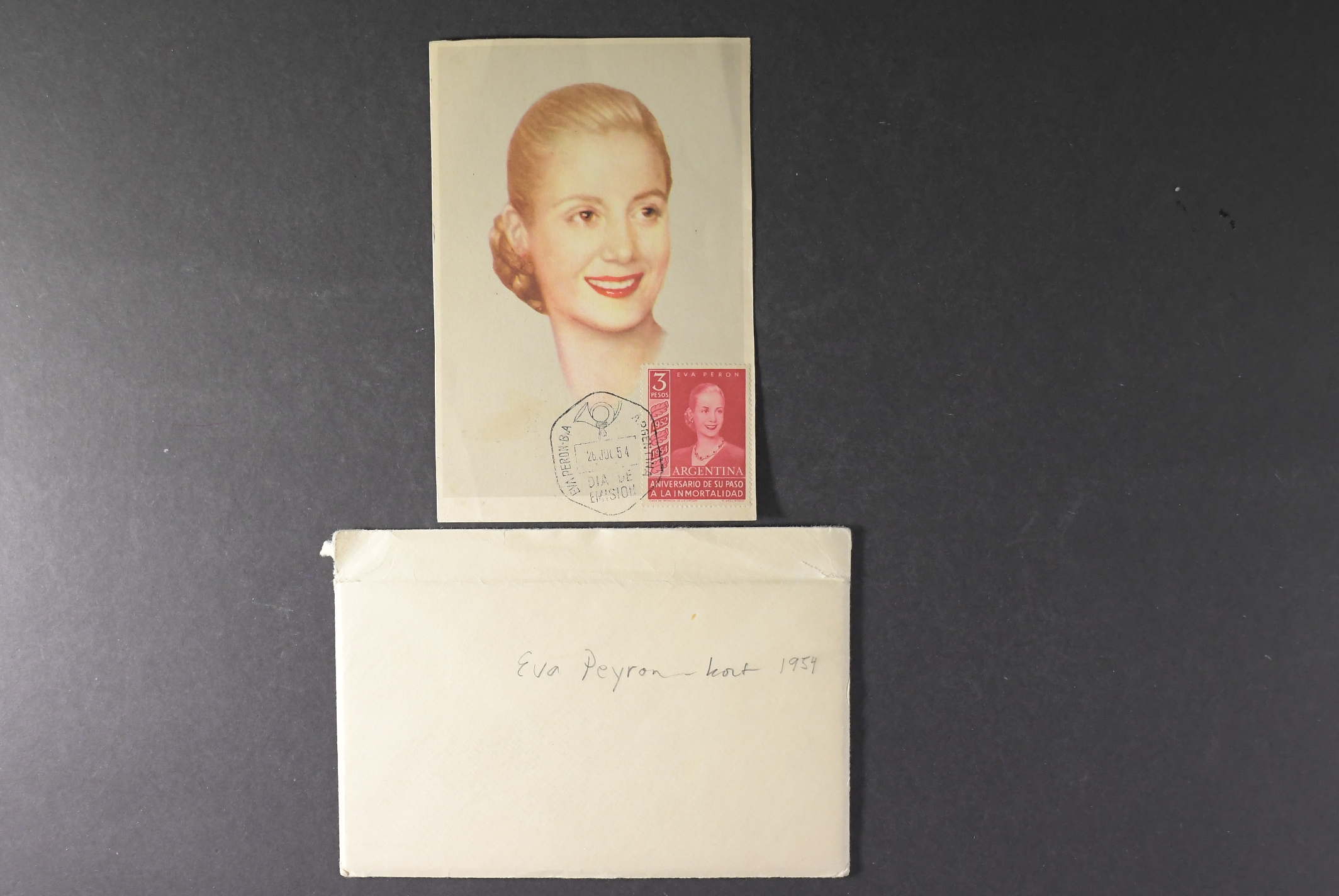Argentina. Michel 618 on cover, 1954 EVITA PERON 3 pesos carmine rose. Her second death anniversary. Maximum card with FDC cancellation 26. JUL 54.