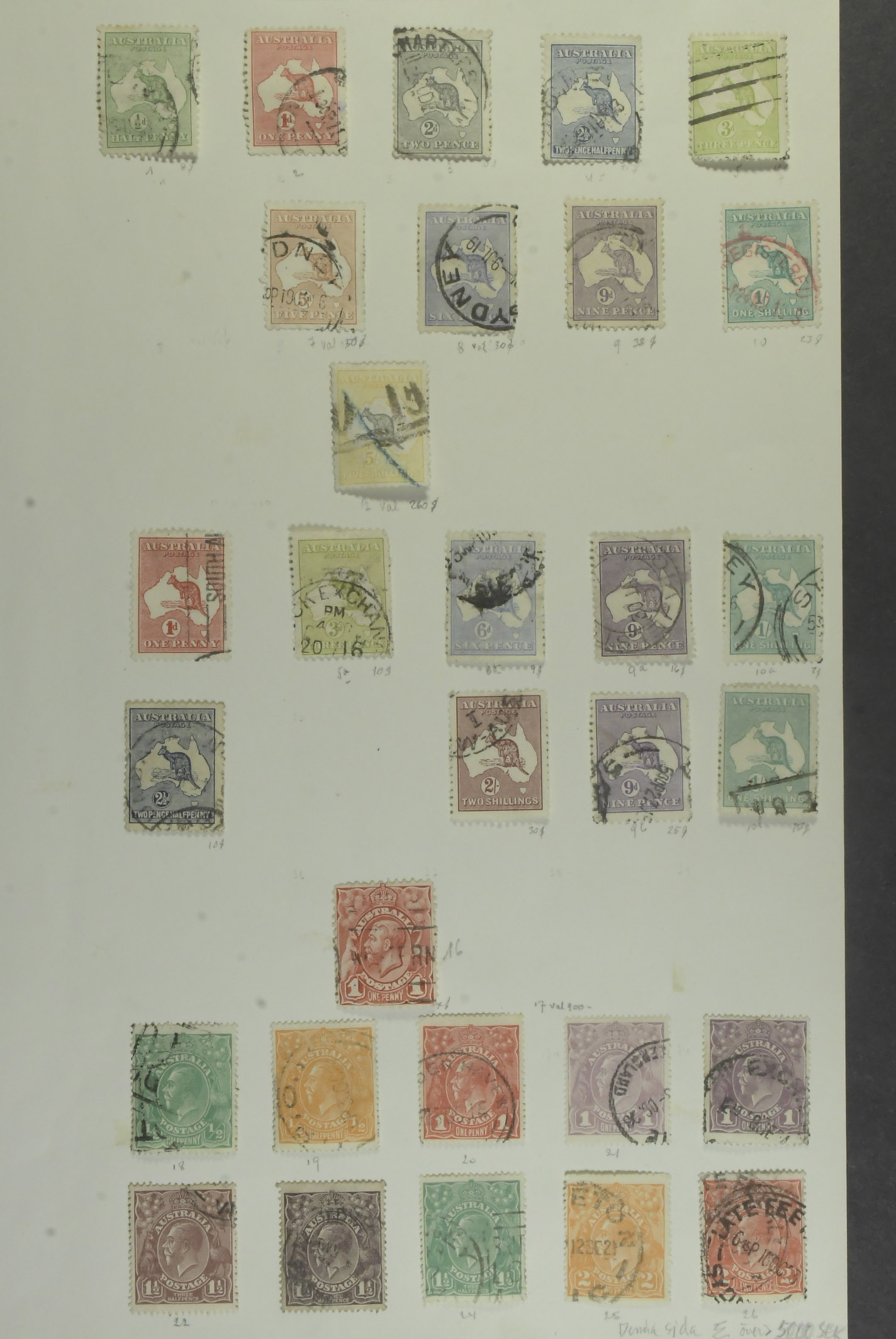 Australia. Collection used 1902–1970s on 16 old leaves. Some better Kangaroo issues and officials. Somewhat mixed quality. Around 1300 £
