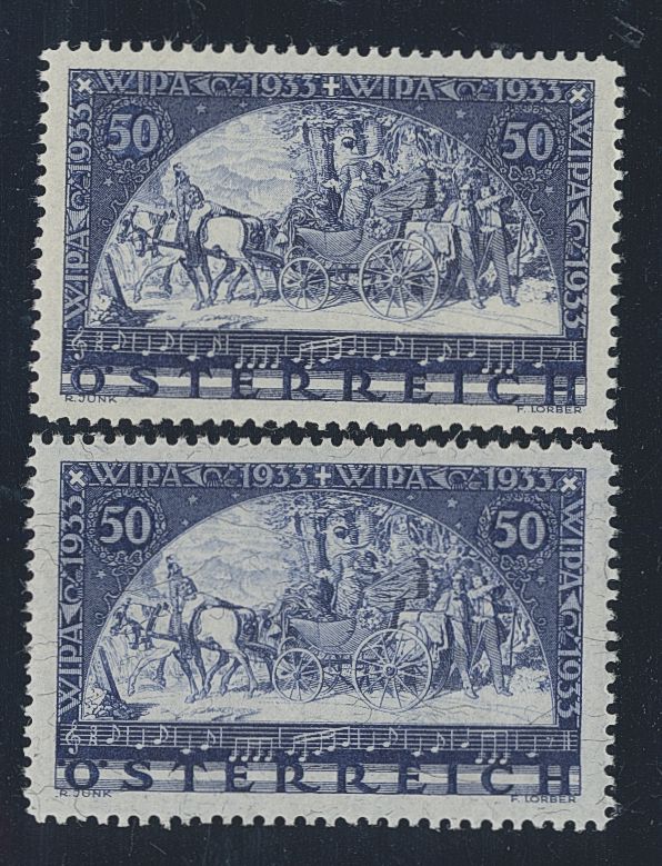 Austria. Michel 555A–556A ★★, 1933 WIPA Exhibition 50+50 g dark ultramarine on ordinary paper and on "fasier-paper". EUR 1000