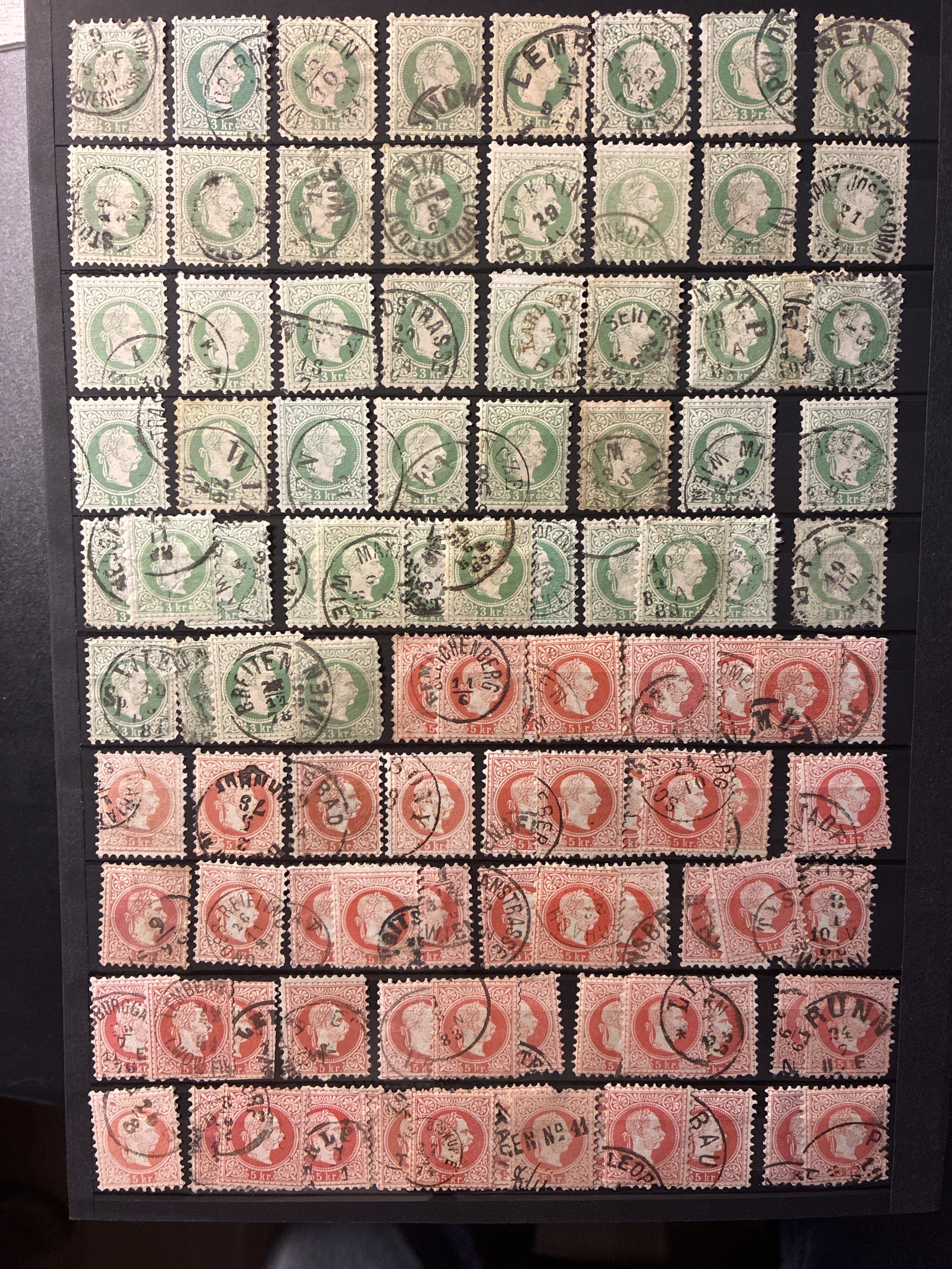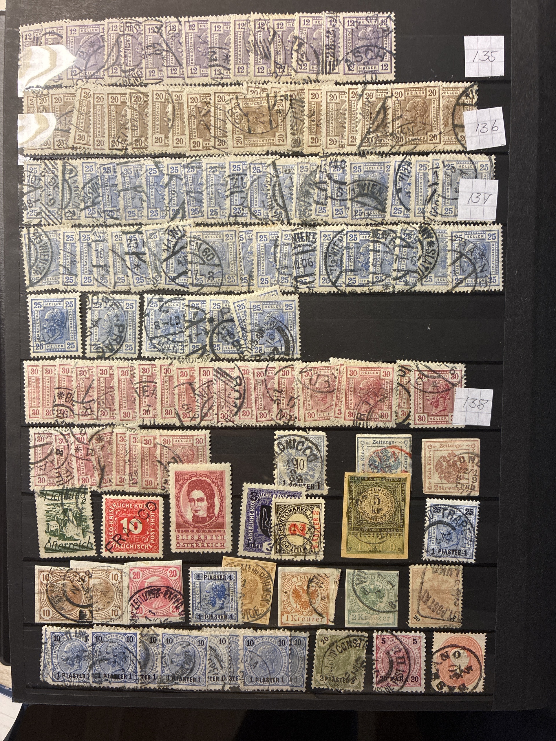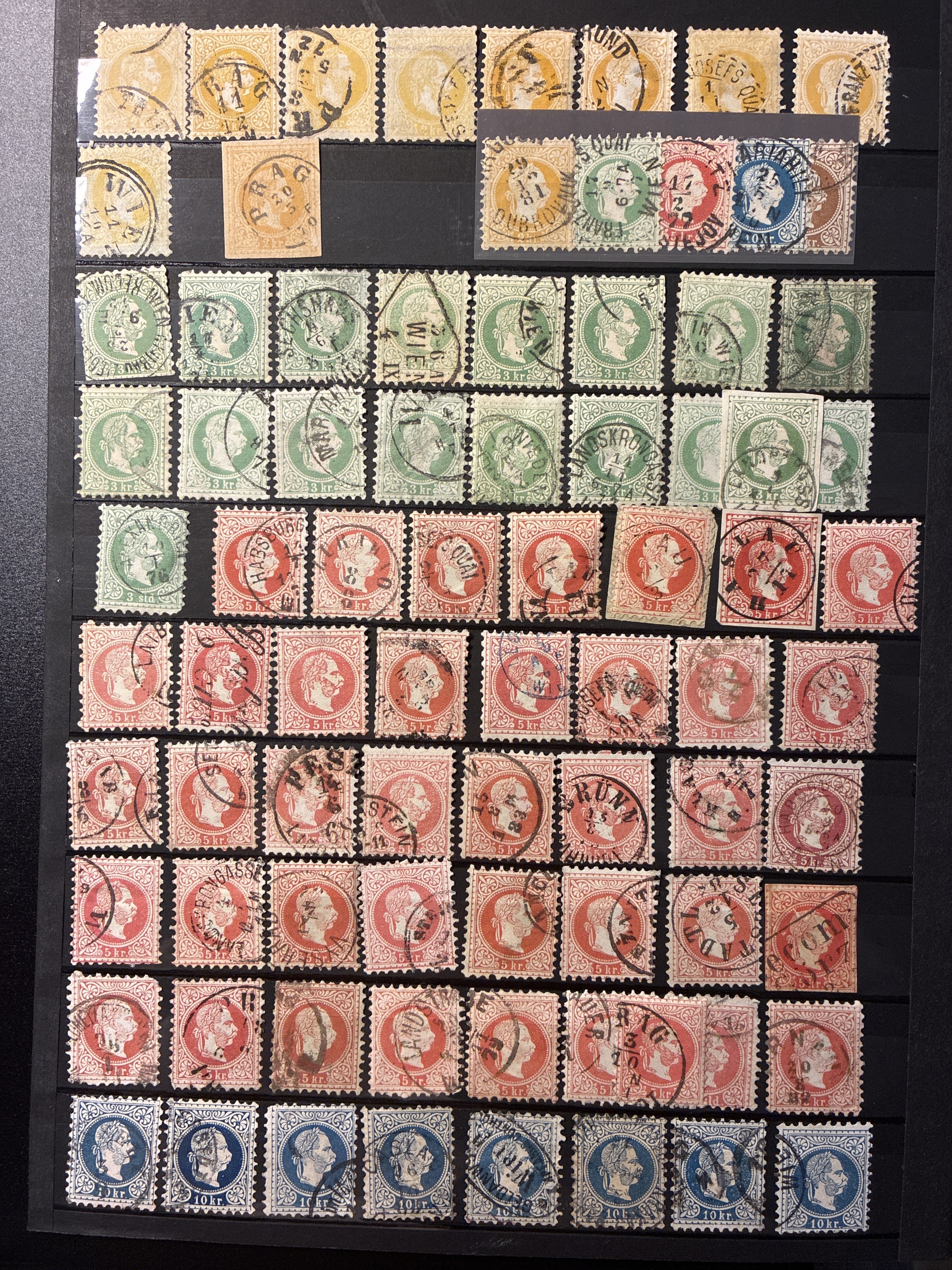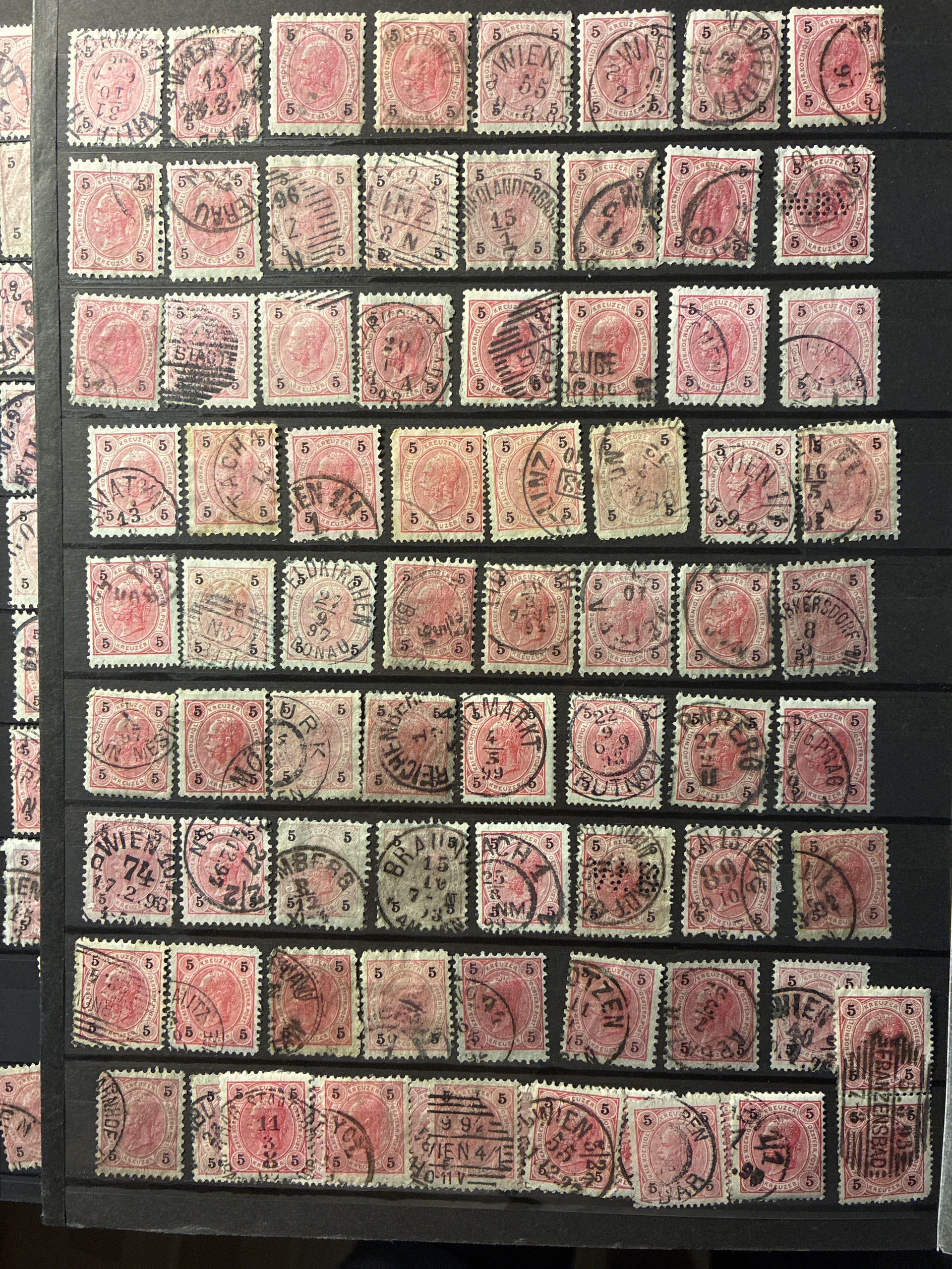 Austria. Collection/accumulation used 1858–1907 in large stockbook. Nice classic lot with severel stamps of each. Cancellations ? Please see a selection of scans at www.philea.se. Mostly good quality. (4000)