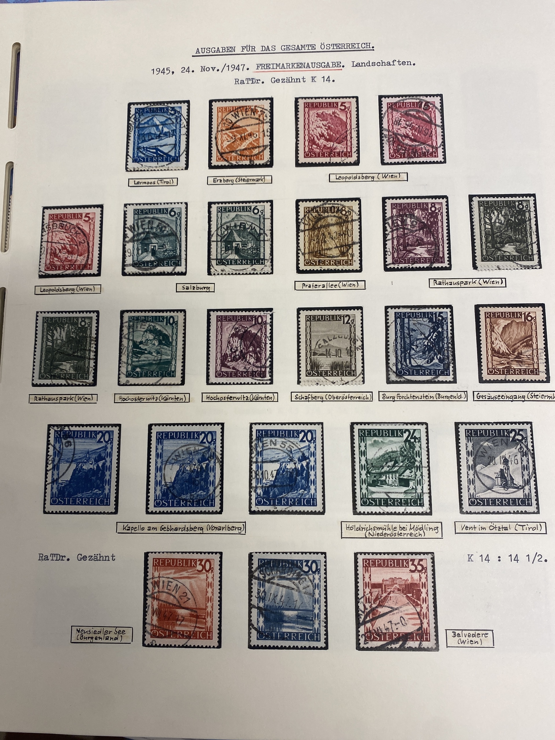 Austria. Collection used 1945–1955 on leaves with stamp mounts Excellent quality. (700)