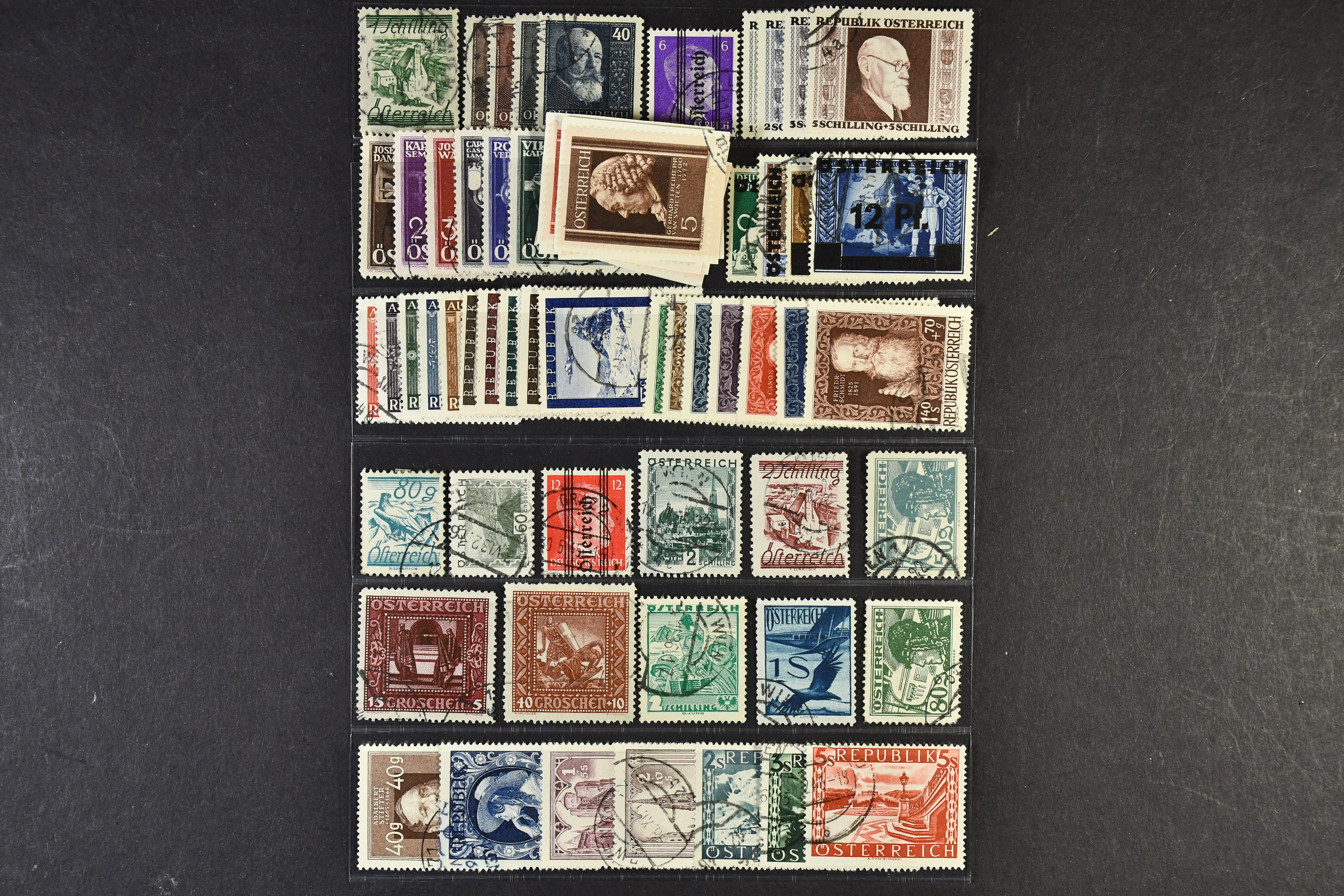 Austria. Used 1925–1948. All different, e.g. Mi 466b, 495–97, 632–37 (CTO), 649–57, 664–67, 678, 772–75, 785–89, 822–28, 878–84. Mostly good quality. Mi € 623 (63)