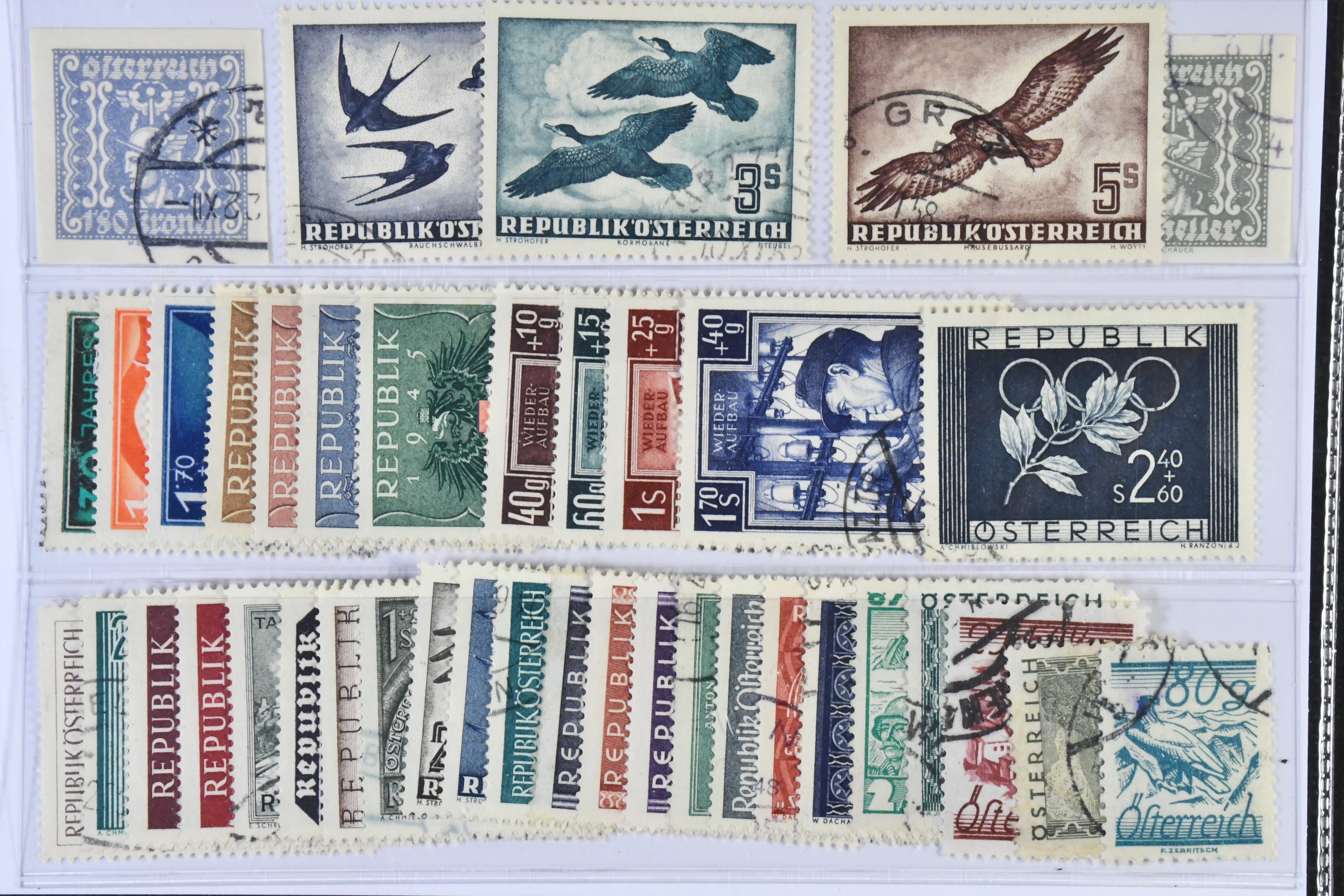 Austria. Used 1921–1955. All different, e.g. Mi 412, 937-40, 952-54, 960-63, 969, 984-86. Mostly good quality. Mi € 773 (41)
