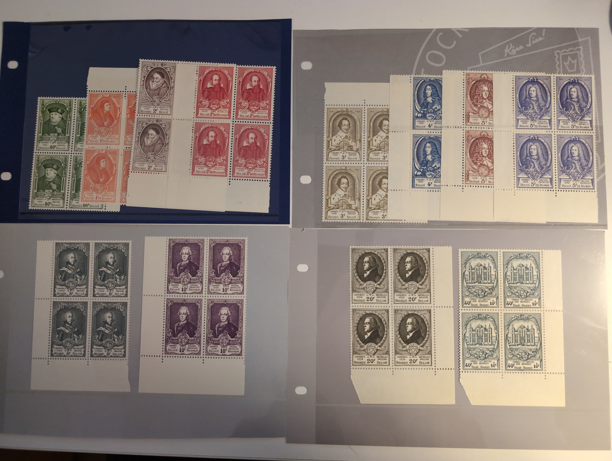 Belgium. Michel 929–40 ★★, 1952 UPU SET (12). In beautiful blocks of 4. Superb quality. EUR 1120