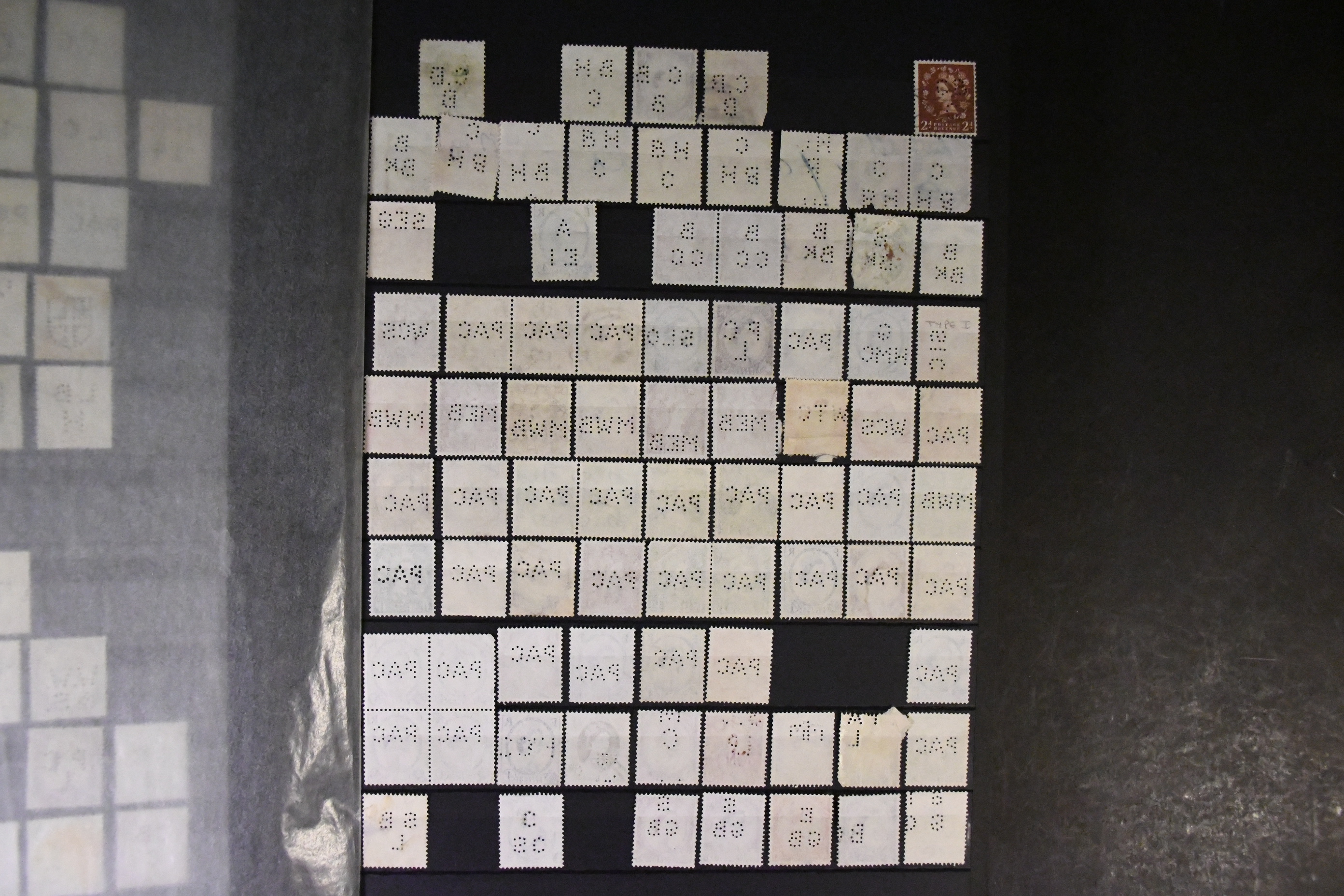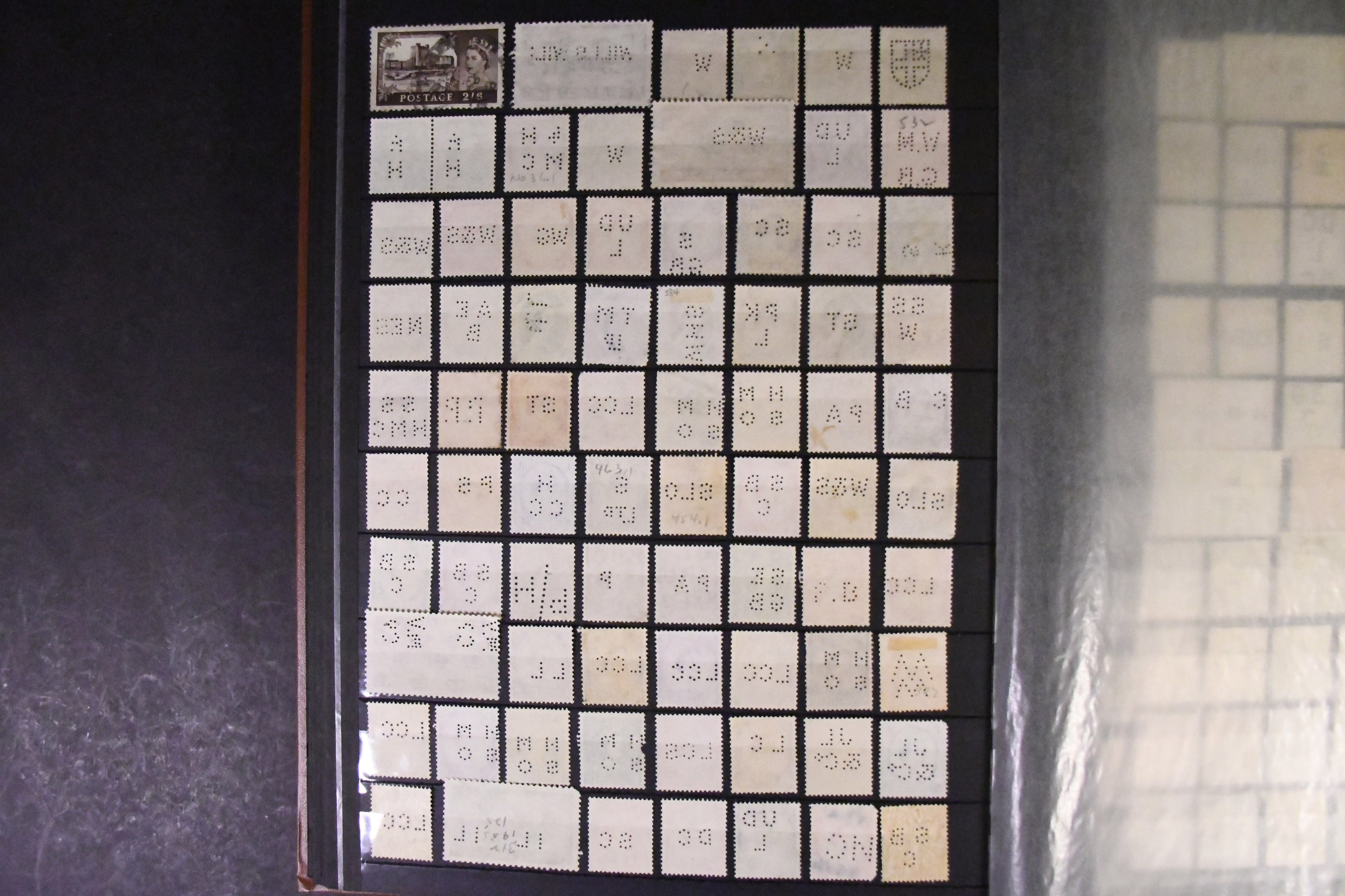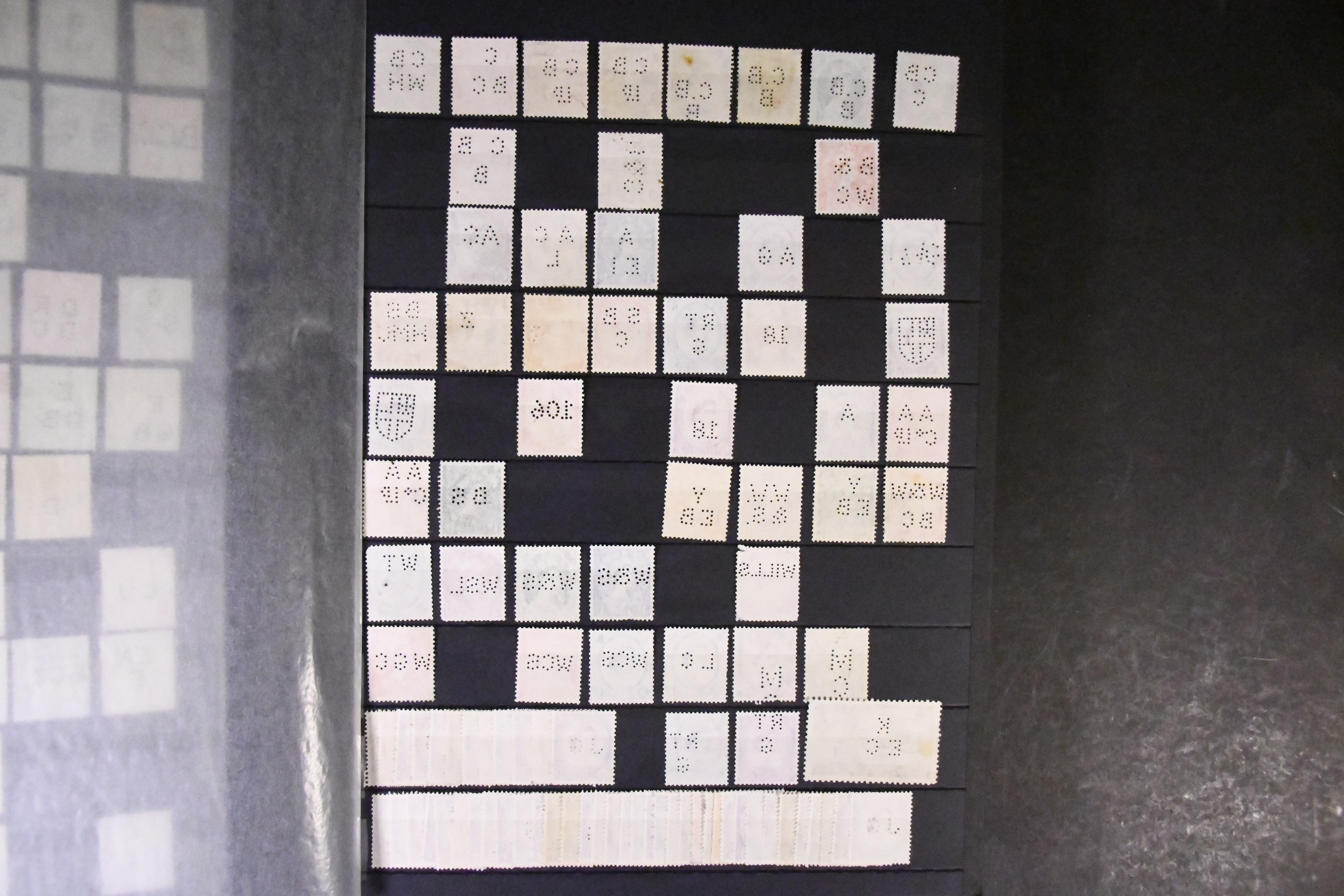 Britain. Used. Many 1000s of perf-ins (and some fancy shields) housed in one substantial volume, virtually all QEII inc high values and probably a perf-in for most people's initials here! This is an increasingly popular area of stamp collecting. If this is your bailiwick, look no further, this took many years to assemble.
