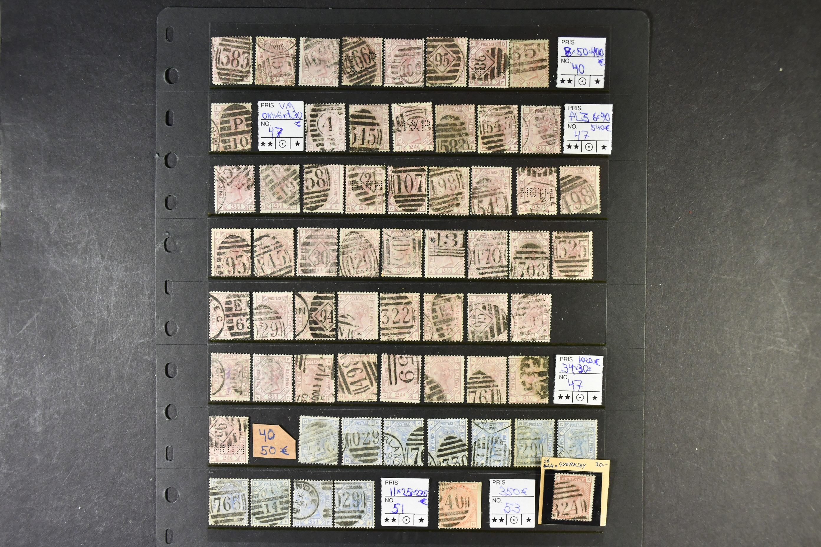 Britain. Accumulation used 1873–1936 on visir leaves. A great varitey of different cancellations and, shades and positions on the plate. Can be considered as a stock material but also as a research material. Please see a selection of scans at www.philea.se. Mostly good quality. (>300)