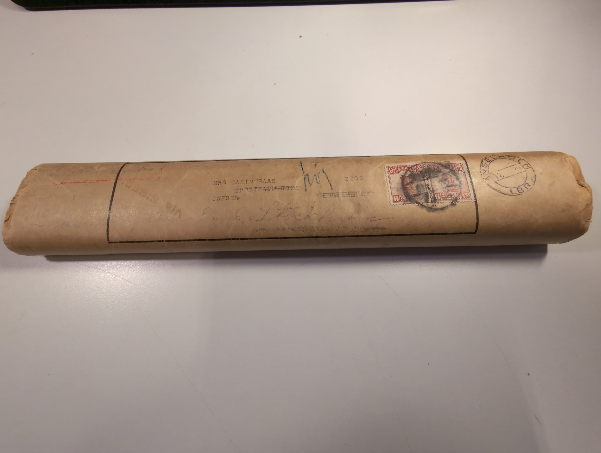 China, R.O.C. Newspaper Michel 195 ×2 on cover, The North-China Herald wrapper including the actual newspaper. Sent to Ängelholm, Sweden and then re-directed to Stockholm. Dispatch cancel Shanghai almost unreadable and arrival cancel Ängelholm. Scarce item!