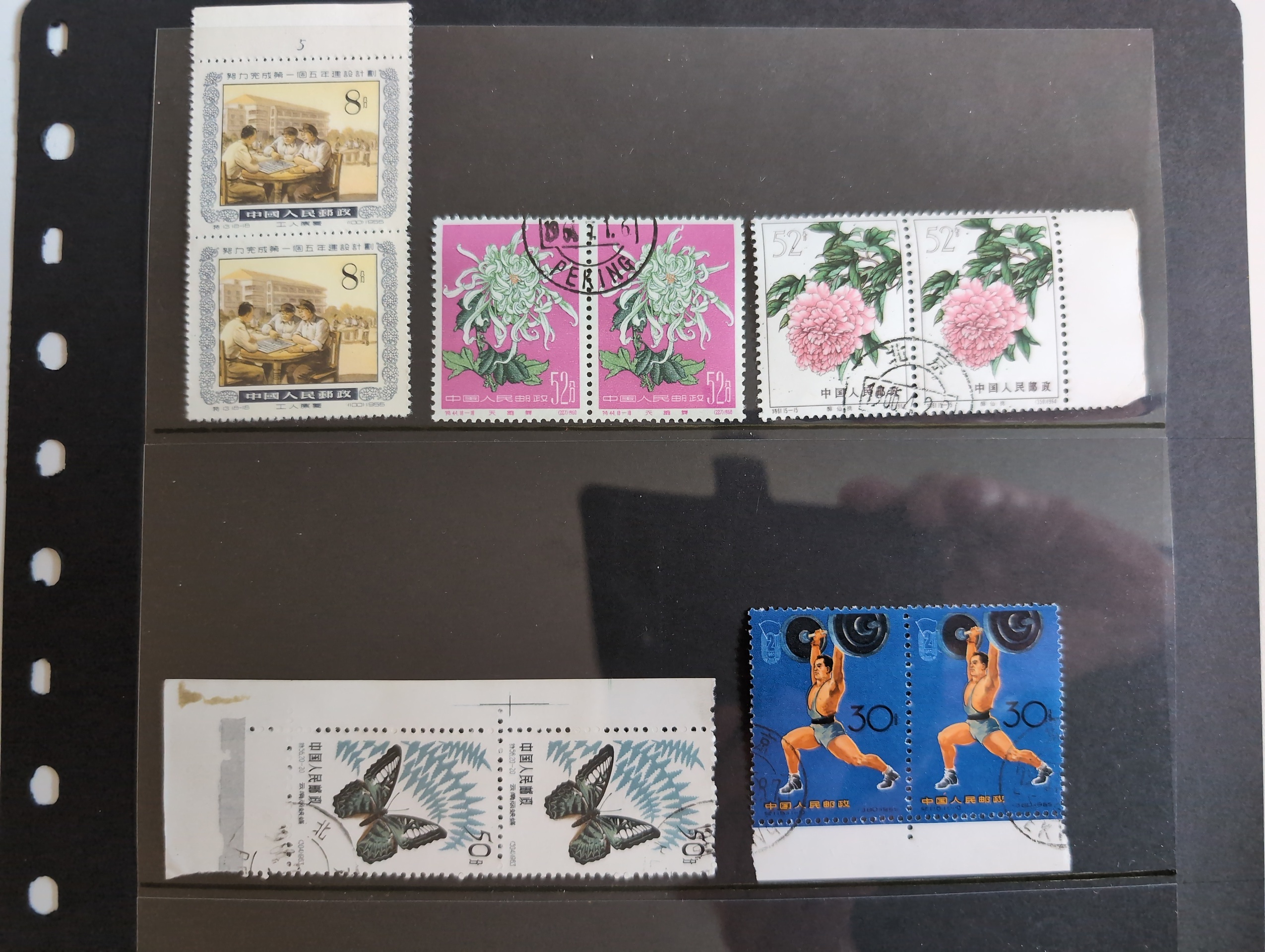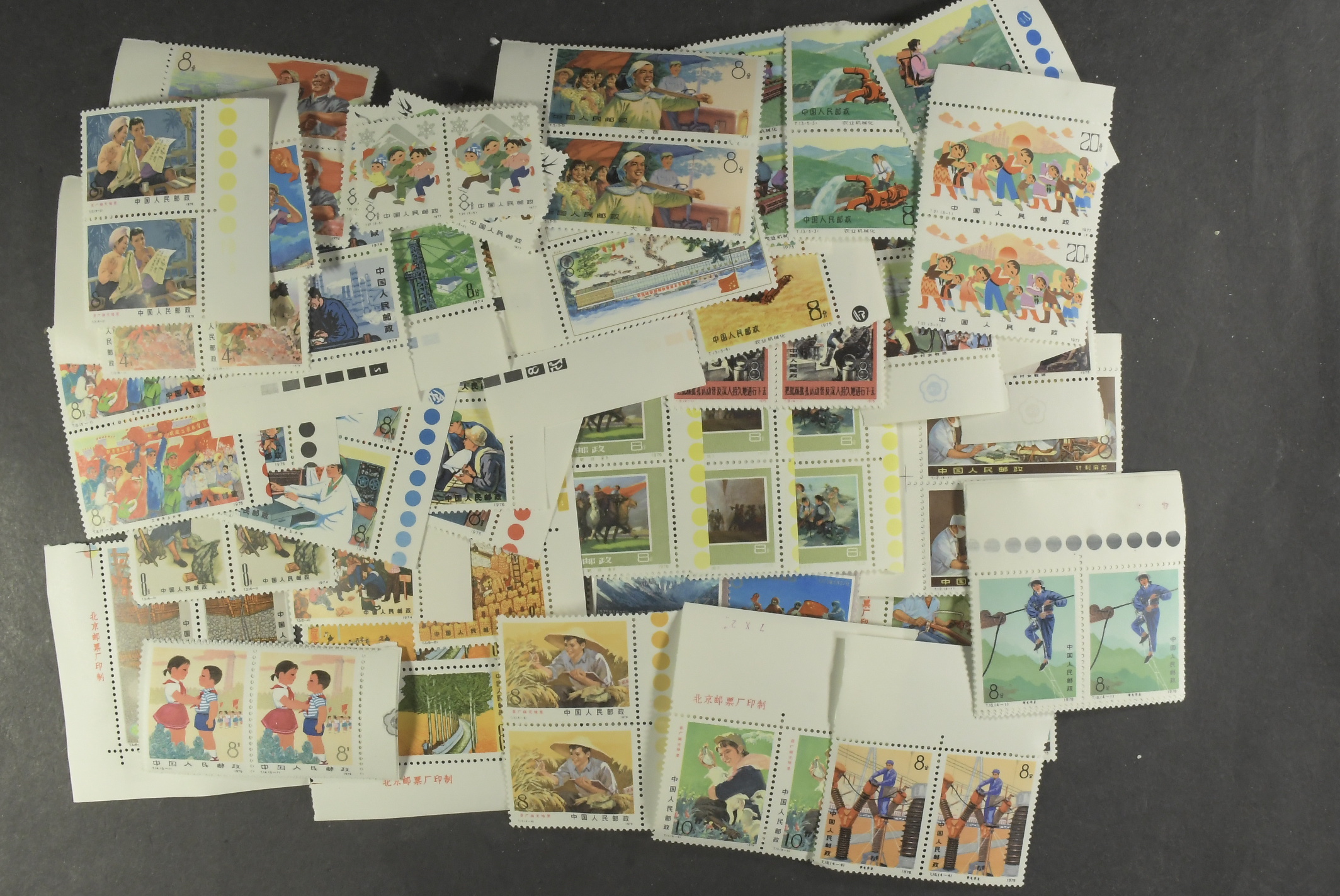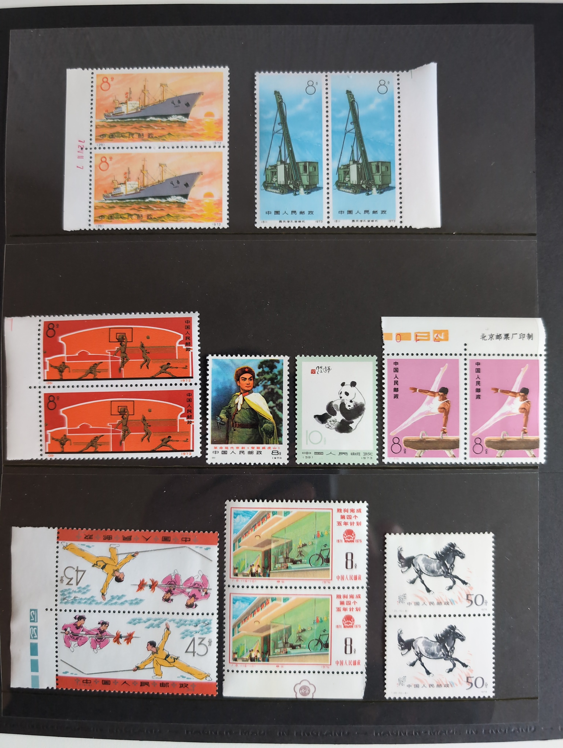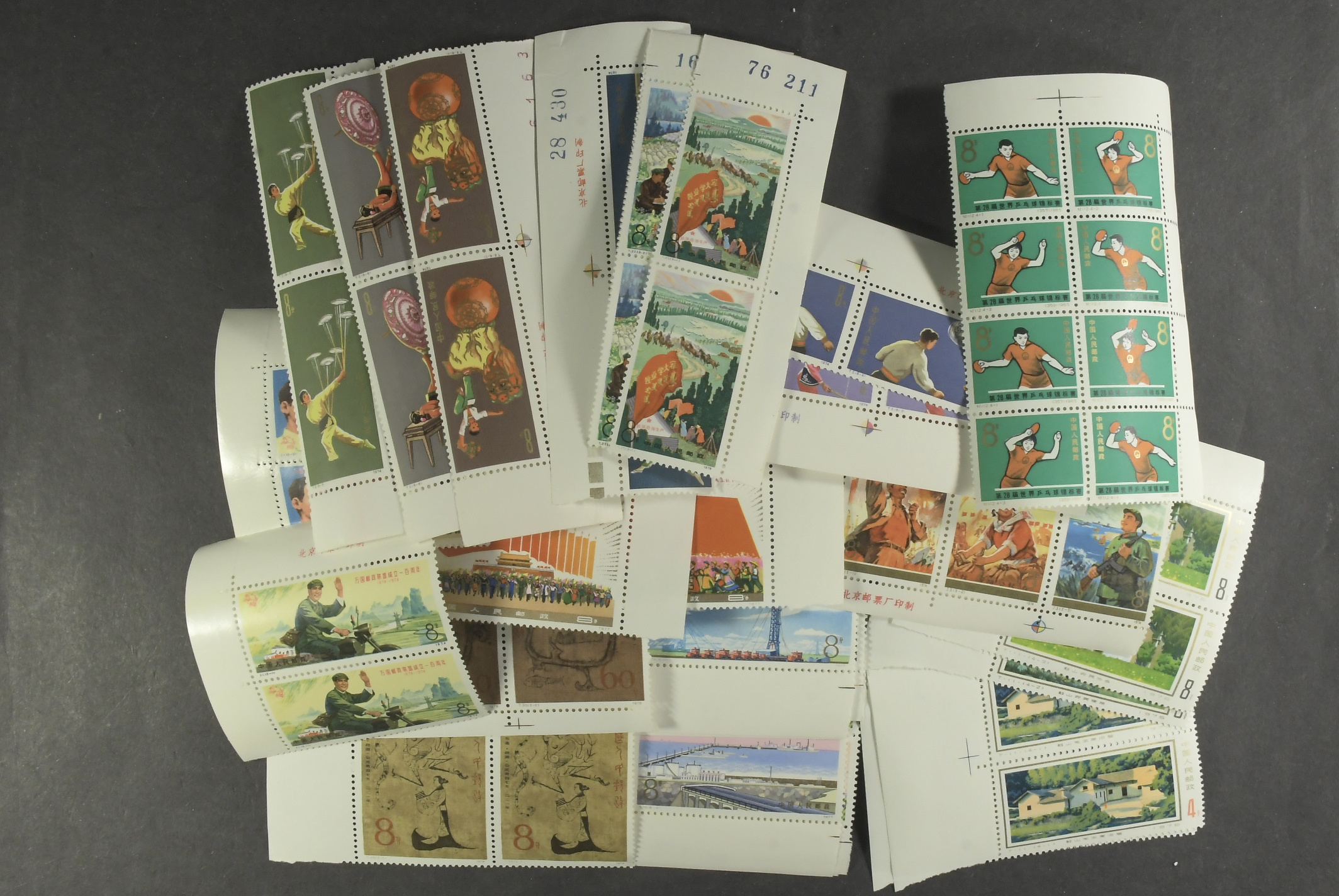 China, People’s Republic. Accumulation ★★/⊙ 1949–1979 in box. amazing lot of sets most of them in pairs. NGAI, MNH or CTO, with many better sets e.g. Five year plan (1955) NGAI, Chrysanthemum cto, Butterflies cto, Peonis cto, Sports cto (1965) from 1970s only NGAI or MNH Peking Opera, Merchant Ships, Table tennis 1972, Red flag canal, Pandas 1973, Internationla womens day 1973, Modern balett, from 1974 almost complete with Heavy machinery, Five year plan 1976 and horses. Mostly very fine quality. Viewing is recommended. Please see a selection of scans at www.philea.se. Fine quality. (1000s)