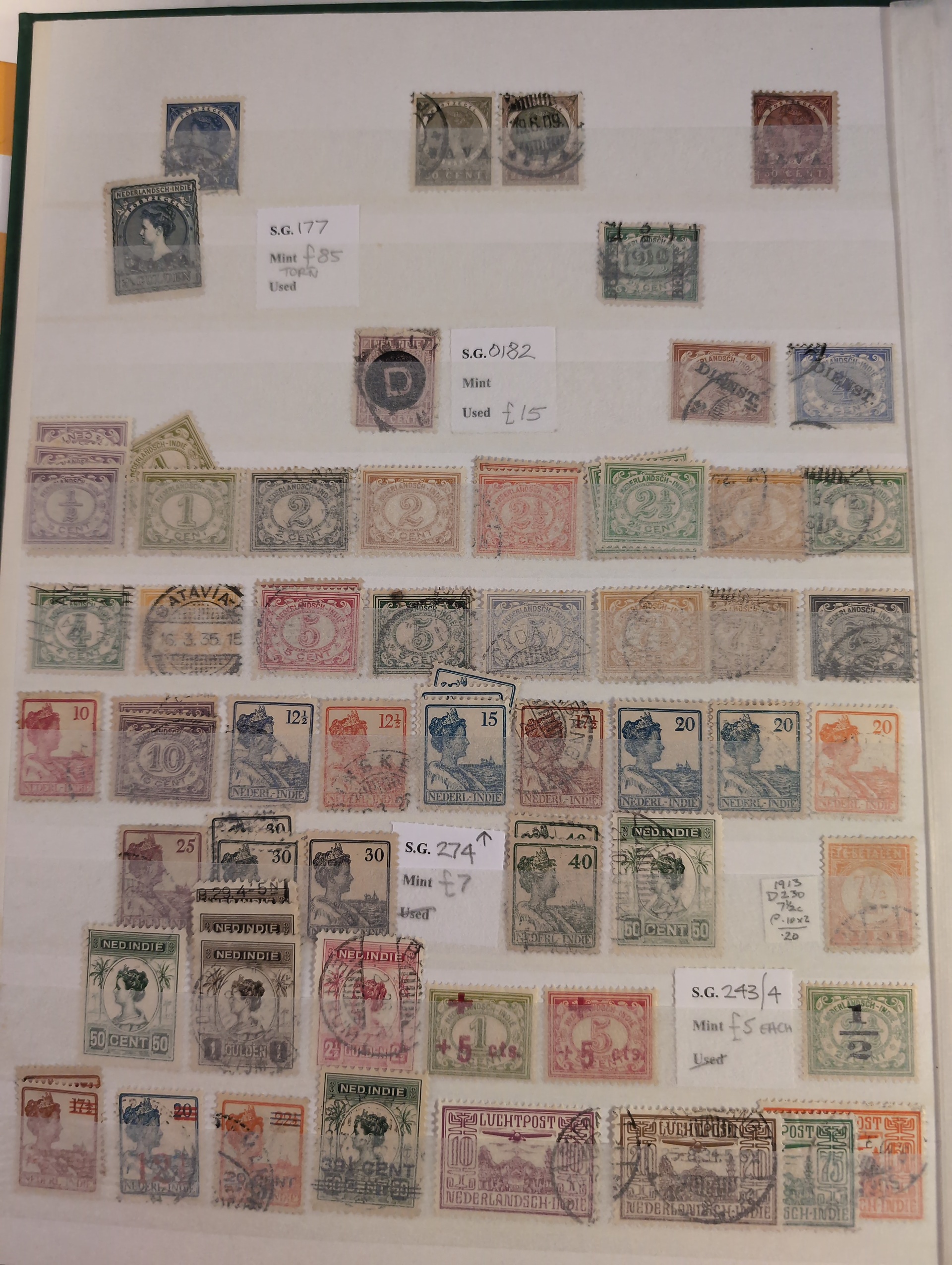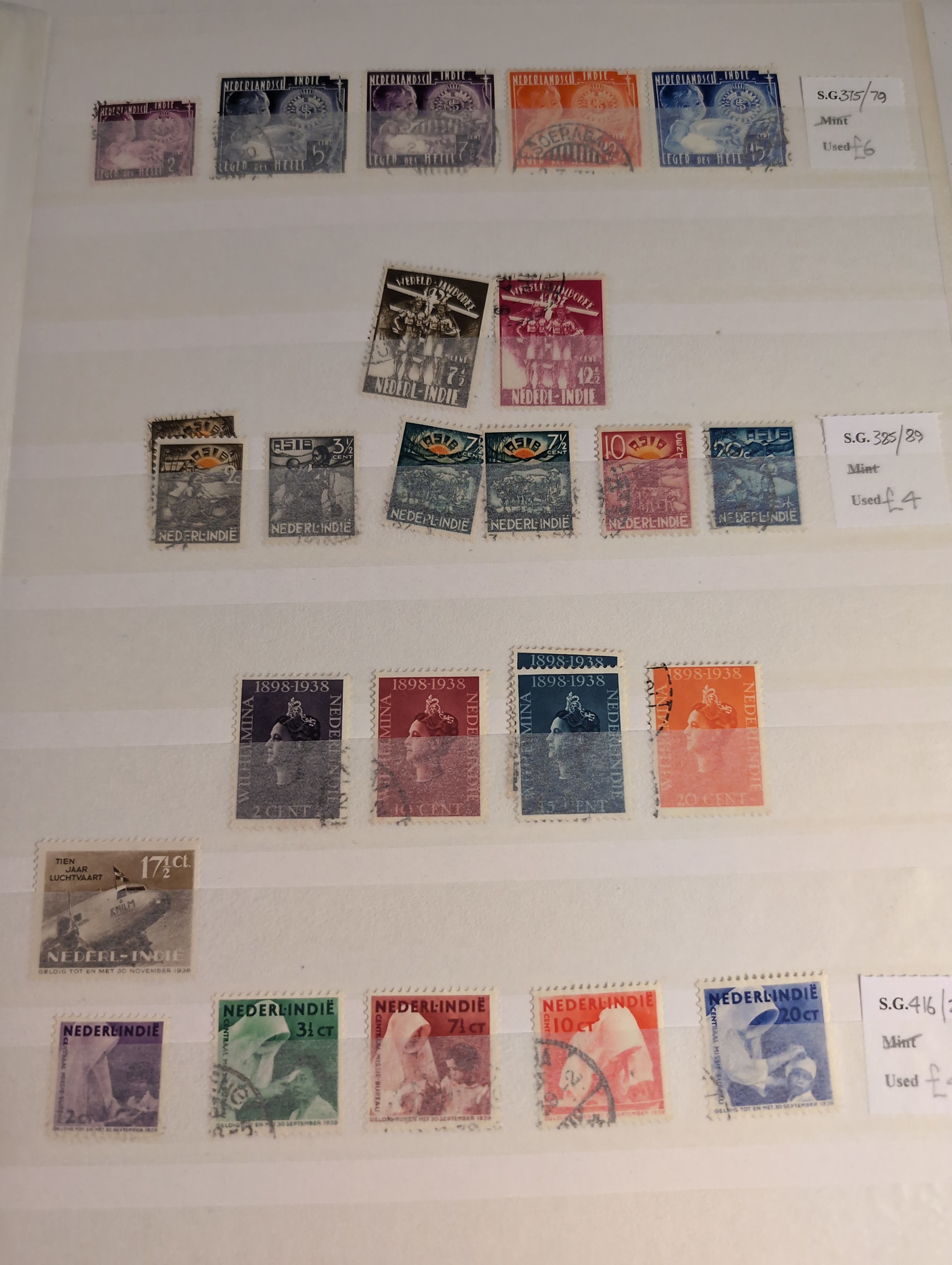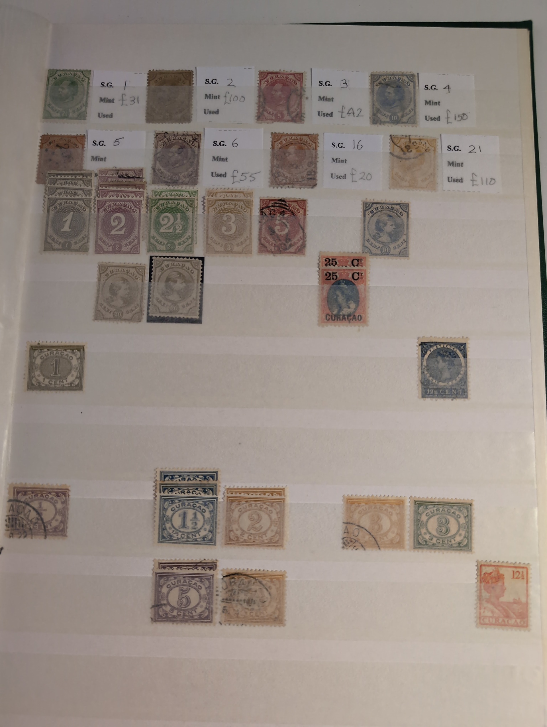 Dutch colonies. Collection/accumulation ★★/★/⊙ 1870s–1980s in stockbook. With good section of Indies and Curacao incl. better stamps and sets. Please see a selection of scans at www.philea.se. Mostly fine quality. (400–500)