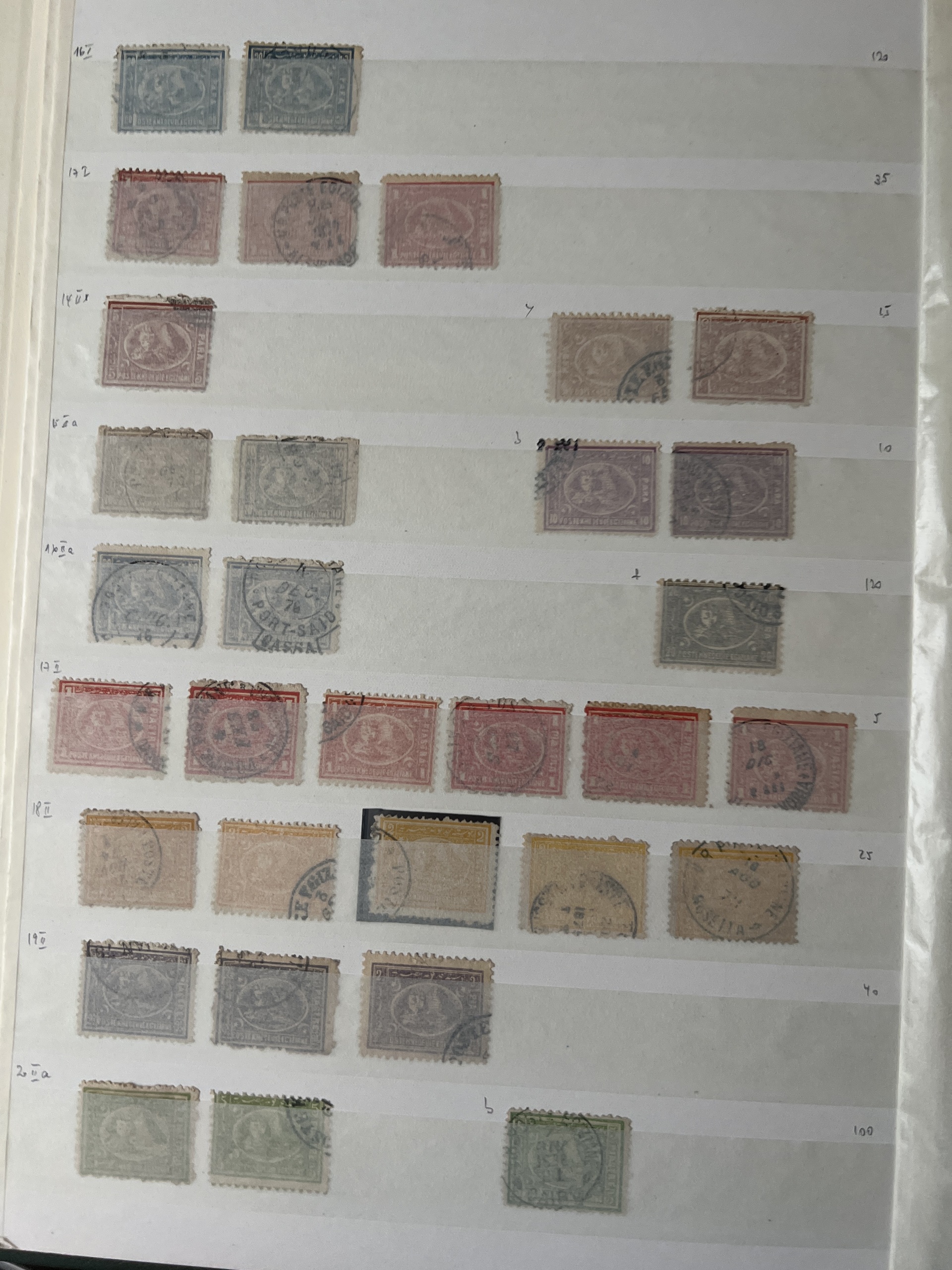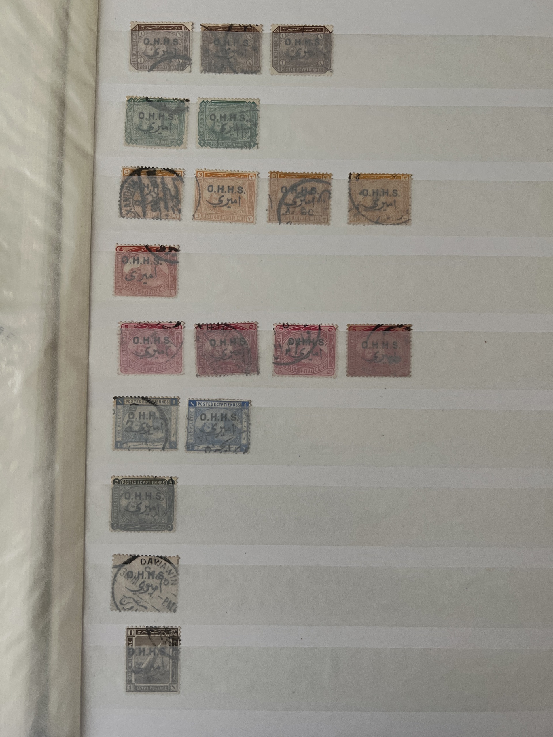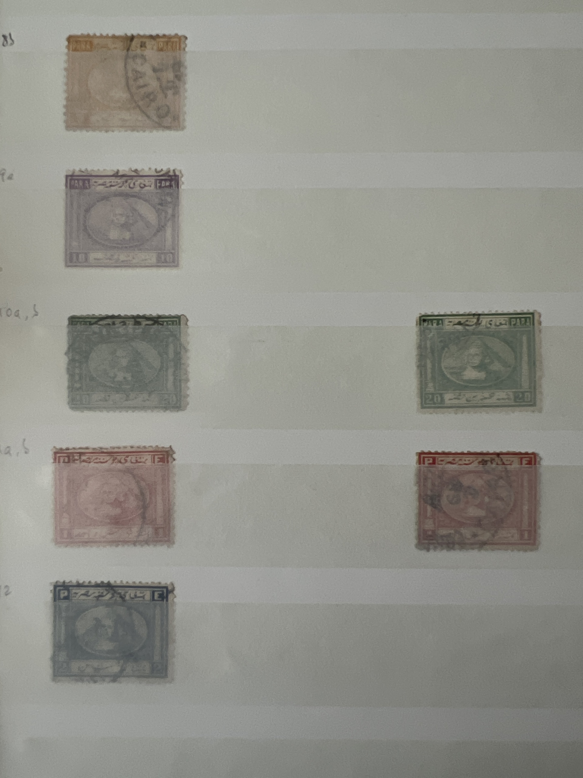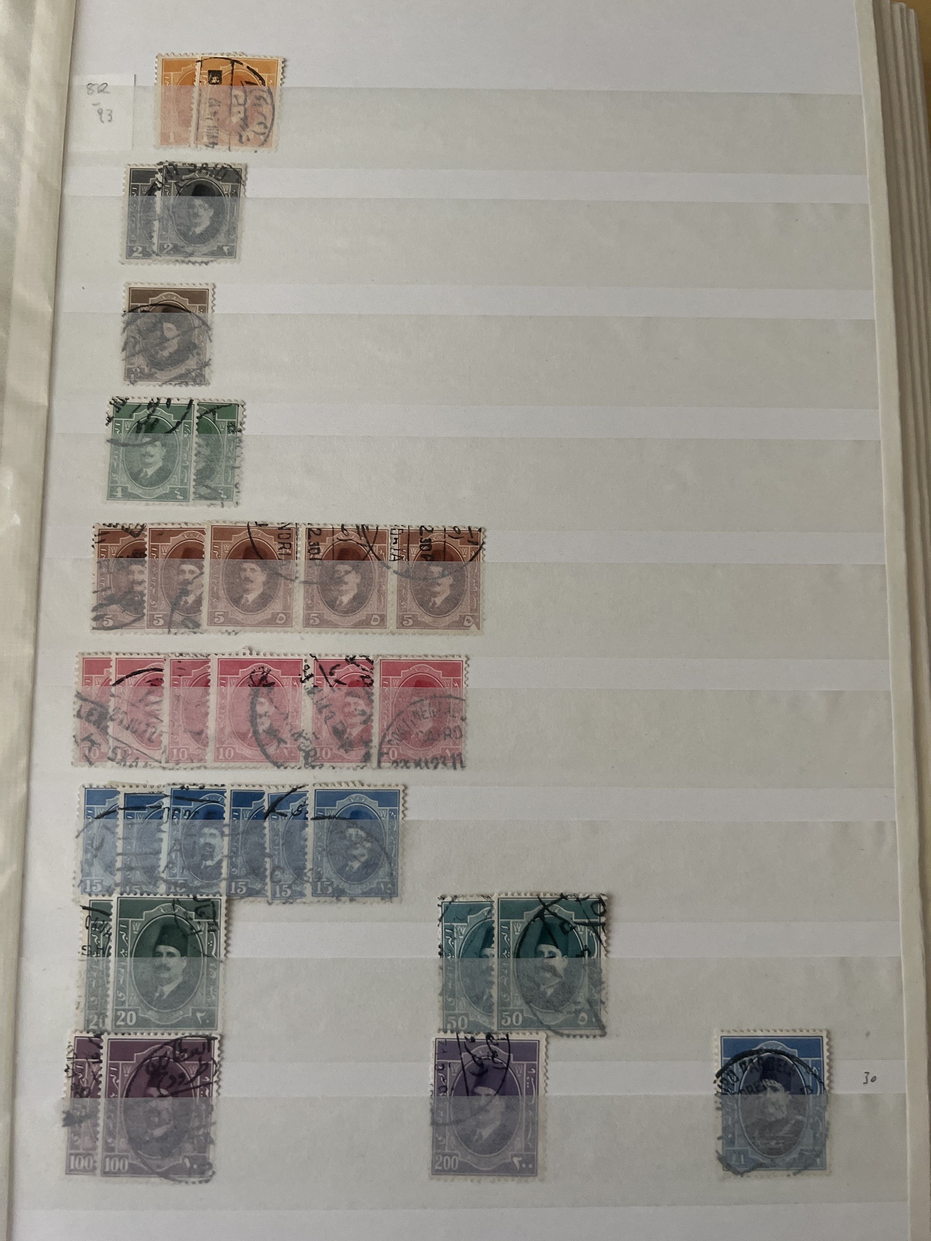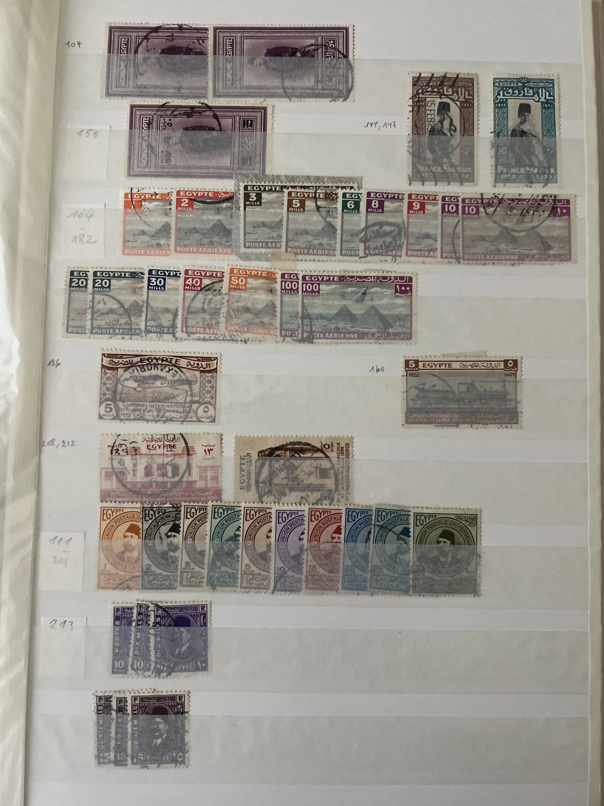 Egypt. Collection/accumulation mostly used 1866–1970s in thick stockbook. Starts with eight stamps from the first set incl. 2p mint. Good range of pyramids. King Fuad up to £1. Later issues with some air mail. Please see a selection of scans at www.philea.se. Mostly good quality. (700)