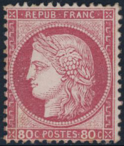 France. Michel 55 ★, 1872 Ceres Head with thick letters 80 c rose-carmine. Light hinged. EUR 900