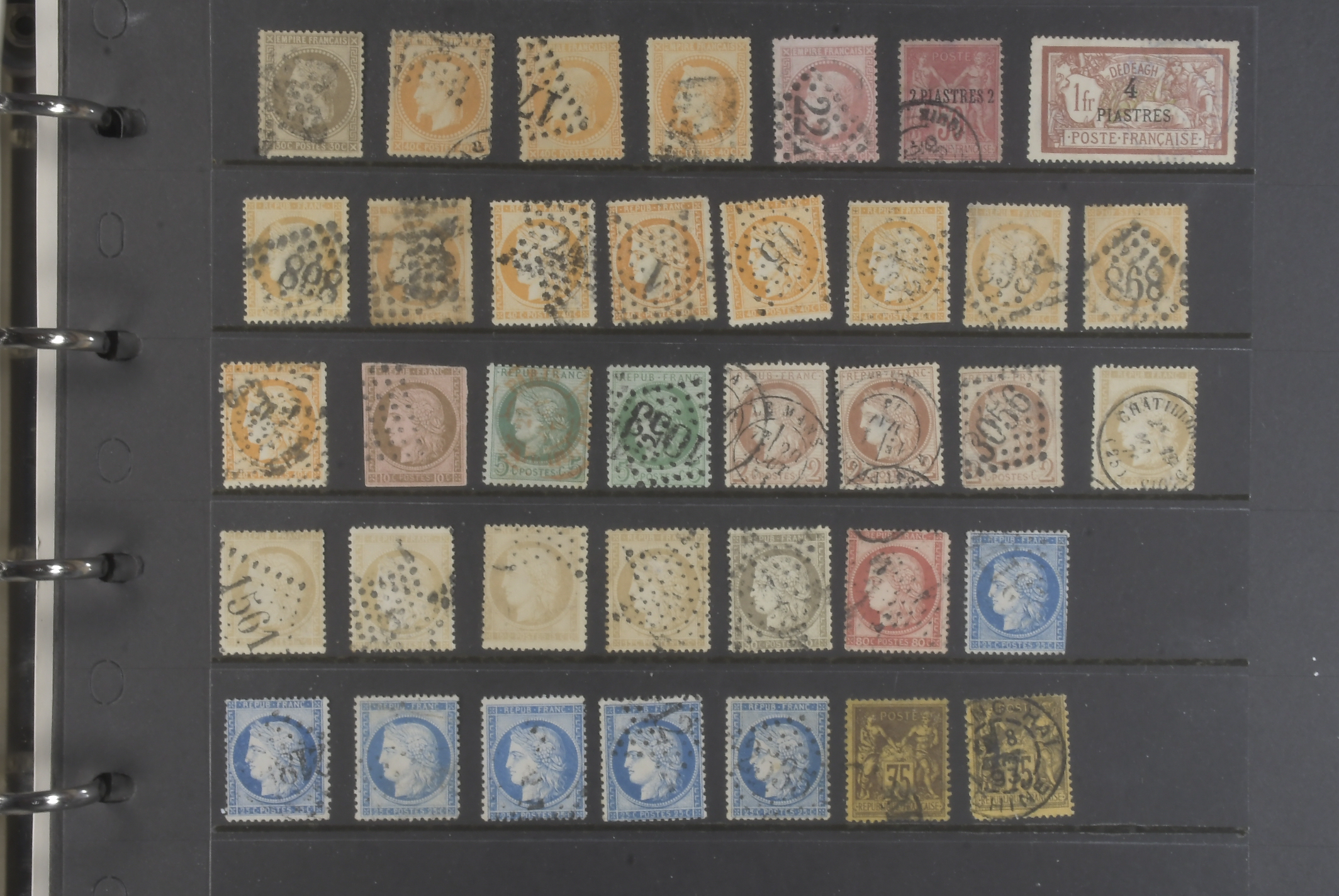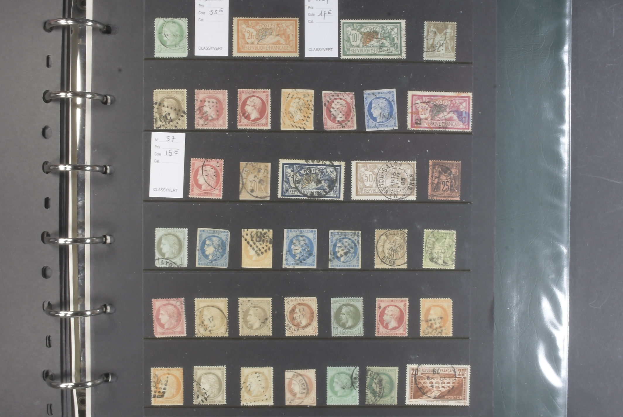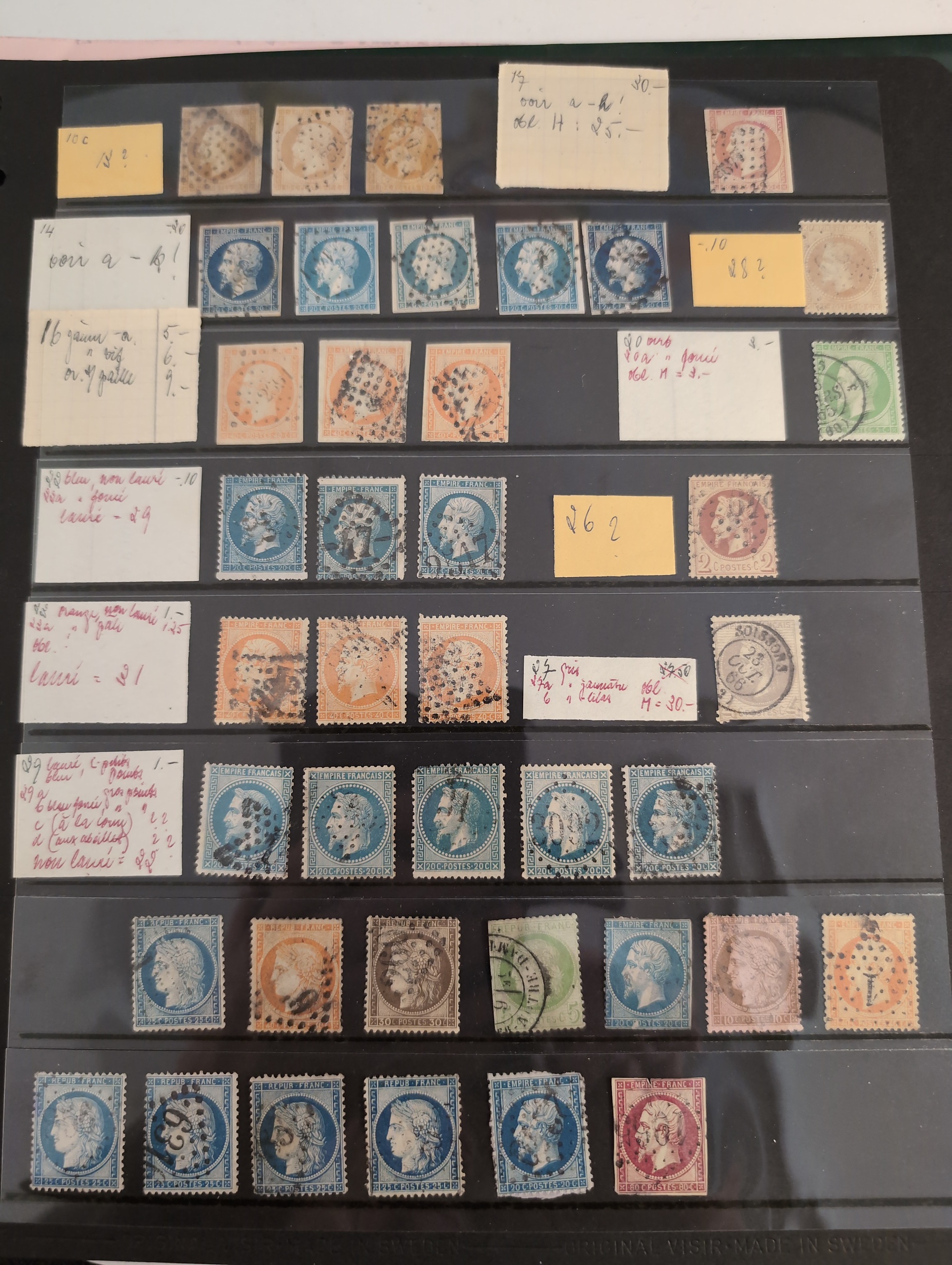 France. Lot ★★/★/⊙ 1849–1930s in visir album. Mostly Napoleon and Ceres stamps on twelve visir leaves. The entire lot is presented at www.philea.se. Mixed quality. (200+)
