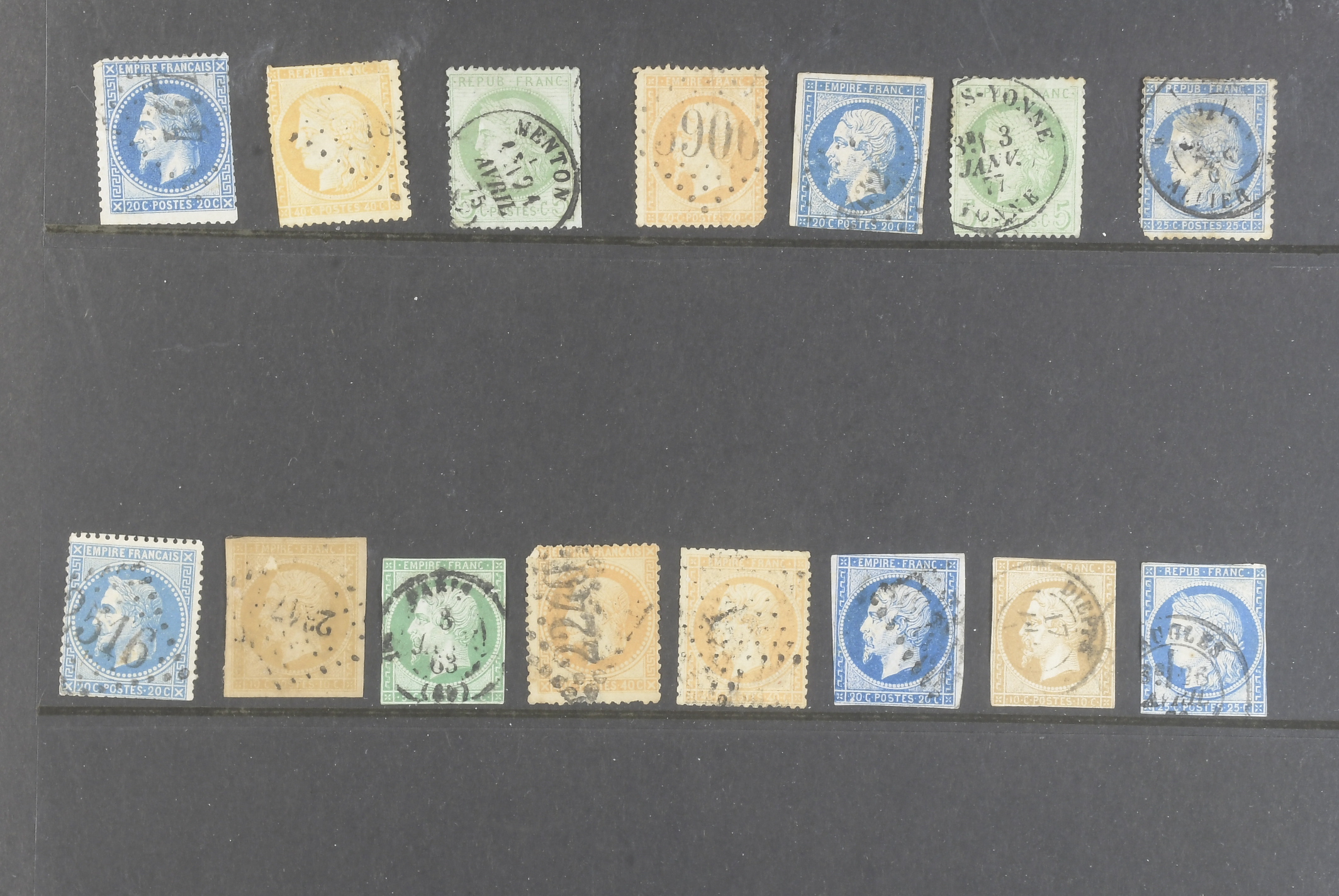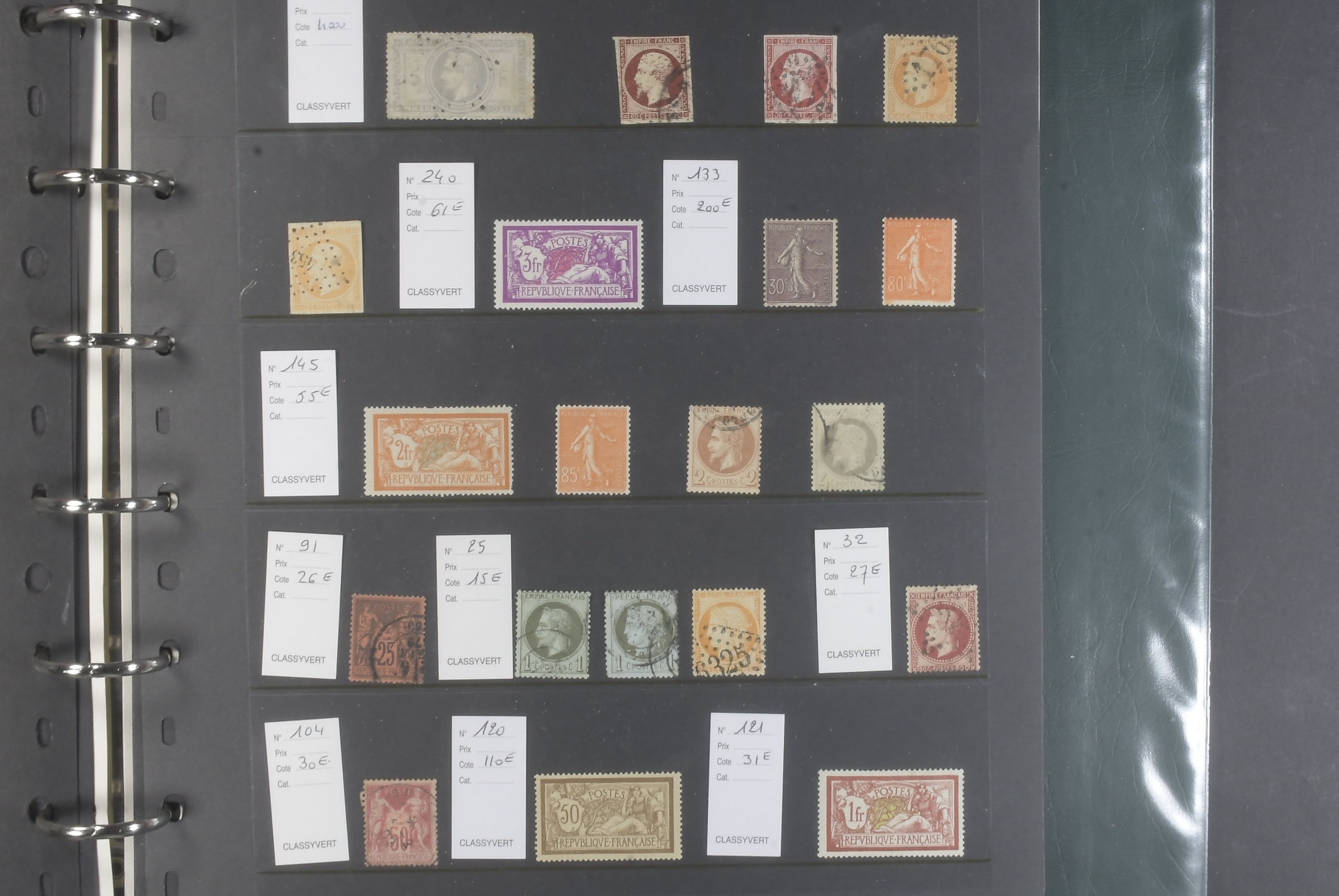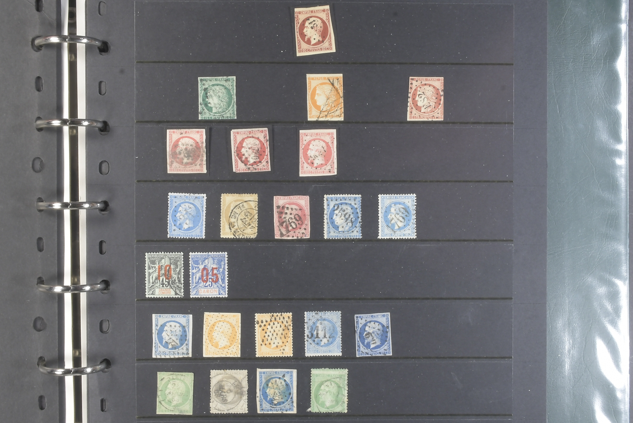 France. Lot ★★/★/⊙ 1849–1930s in visir album. Mostly Napoleon and Ceres stamps on twelve visir leaves. The entire lot is presented at www.philea.se. Mixed quality. (200+)
