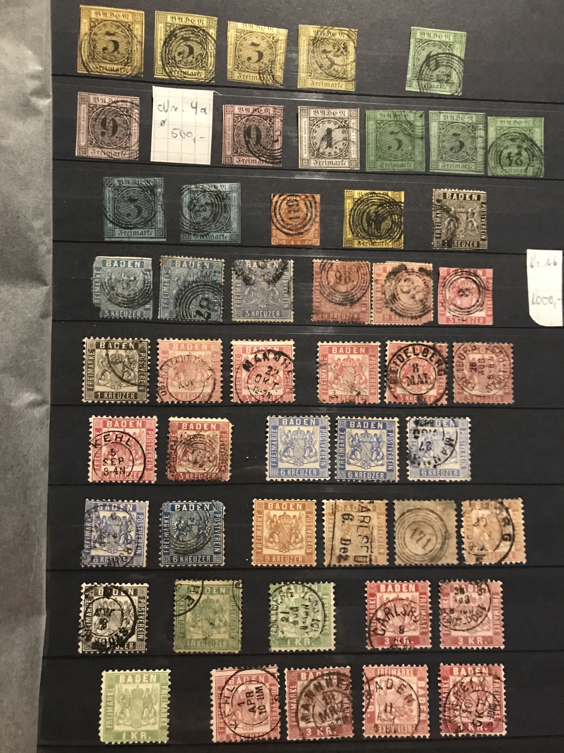 Germany, Baden. Mostly used. 49 copies 1851–1868 incl. also better issues however somewhat mixed quality. The entire lot is presented at www.philea.se.