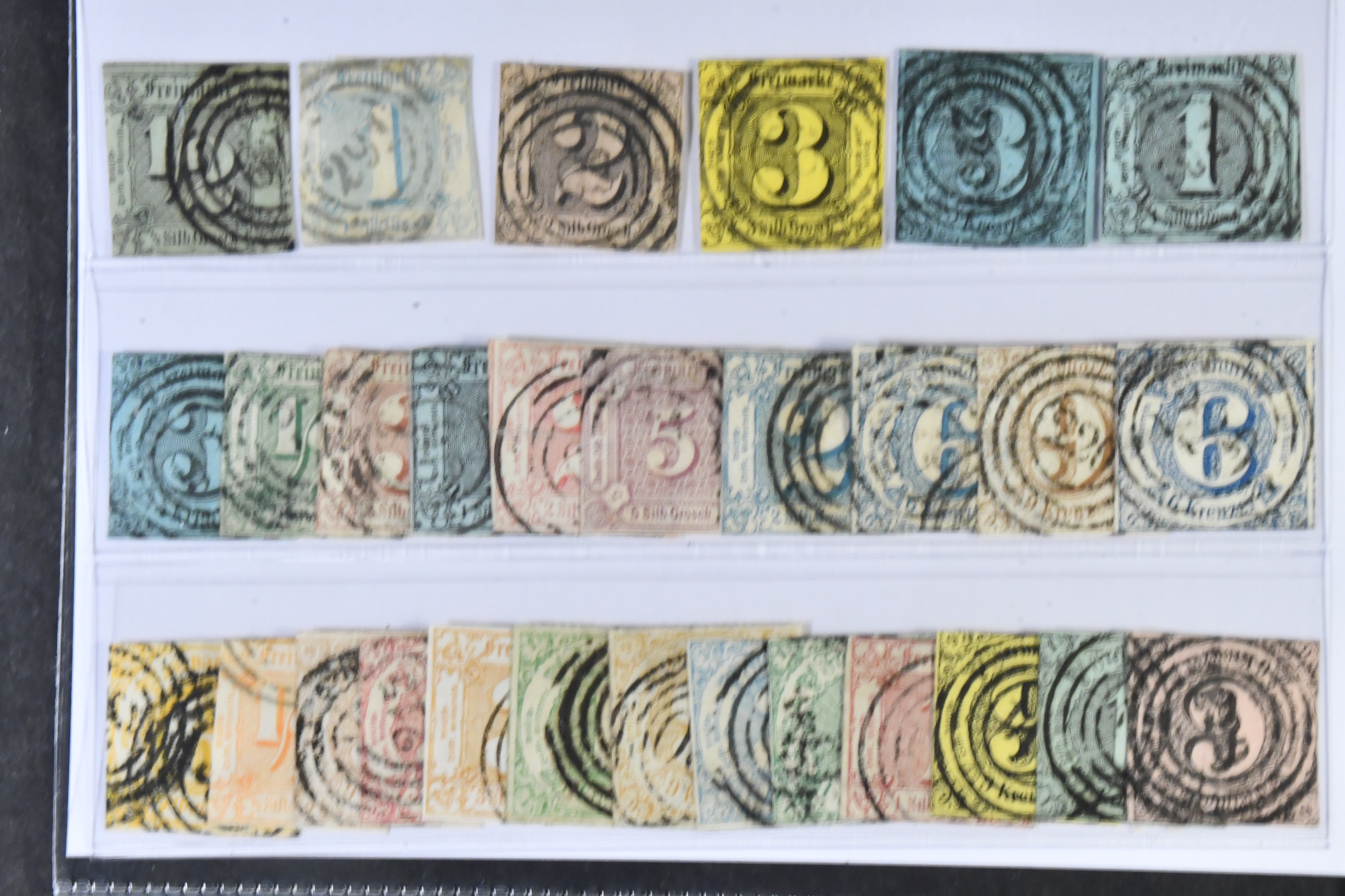 Germany, Thurn und Taxis. Used 1852–1866. All different, e.g. Mi 3-6, 8, 11-12, 14-18, 23, 28, 30-34, 43-44, 51, 54. Mixed quality. Mi € 1250 (29)