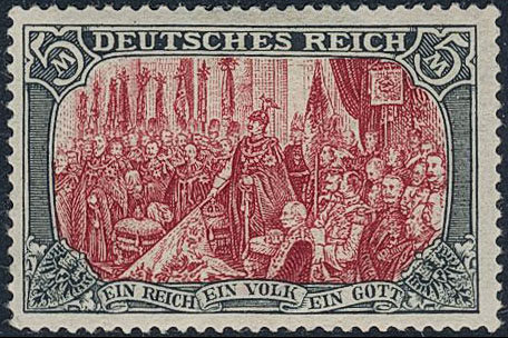 Germany, Reich. Michel 81A ★, 1902 Different designs 5 M black-green/dull carmine, perf 26:17. Owners mark. EUR 280