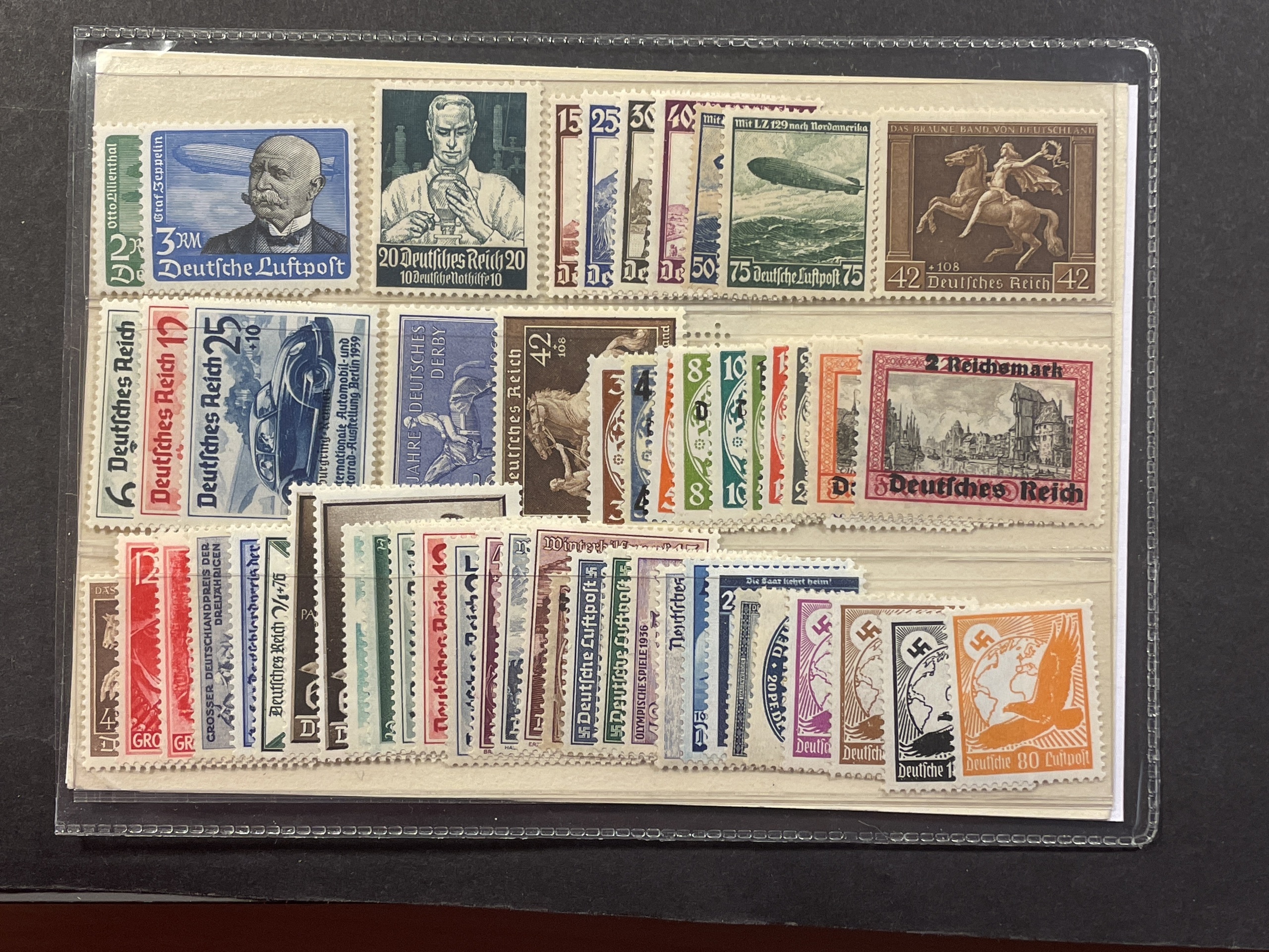 Germany, Reich. ★ 1920–1945. All different, e.g. Mi 538–39, 562, 594–97, 606–07, 658–59, 671, 695–97, 698–99, 716–29, 747, 909–10, souv. sheet 7. Mostly good quality. Mi € 663 (59)