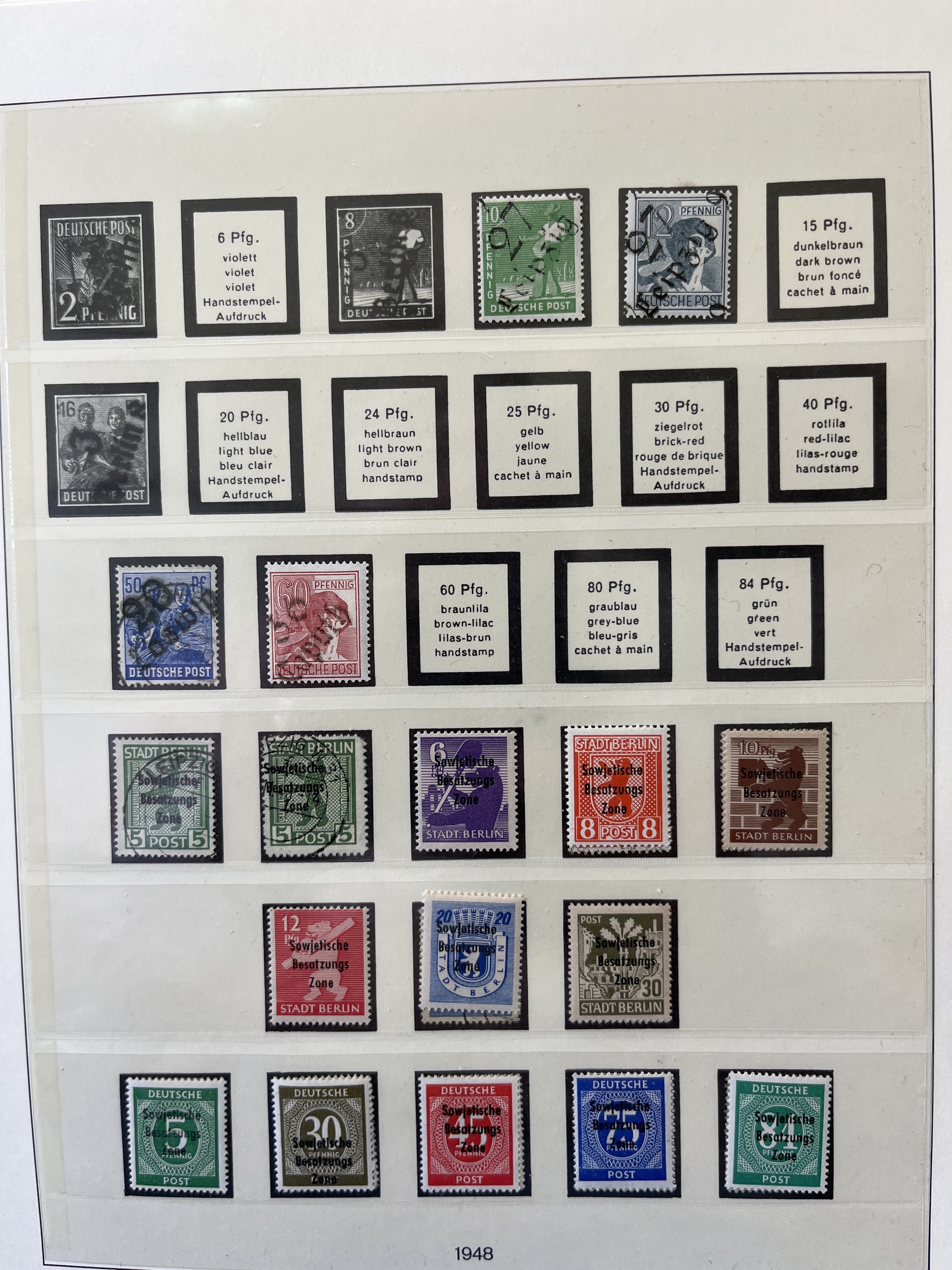 Germany, zones. Collection ★★/★/⊙ 1945–1949 in Lindner album with stamp mounts. Please see a selection of scans at www.philea.se. Fine quality.