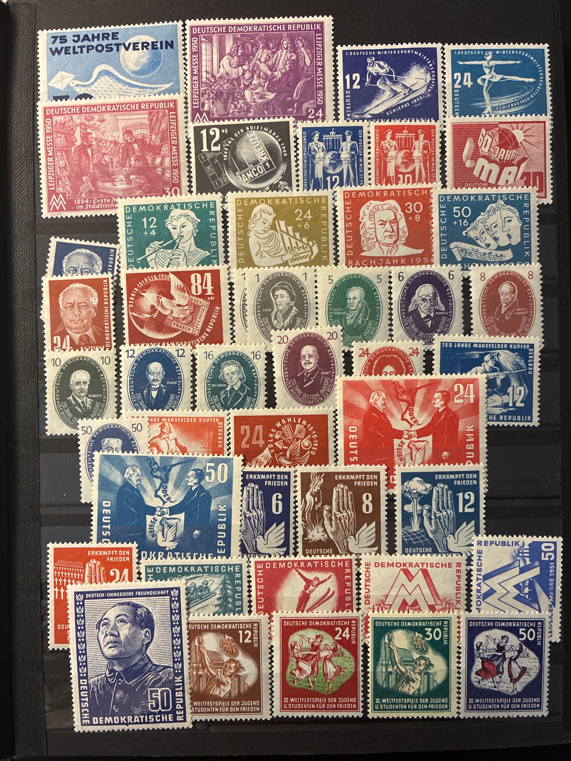 Germany, GDR (DDR). Collection ★★ 1949–1984 in small stockbook. Som better stamps, 50 pf Mao, 25 pf Rudolf Virchow. Please see a selection of scans at www.philea.se. Mostly good quality. (c.900)