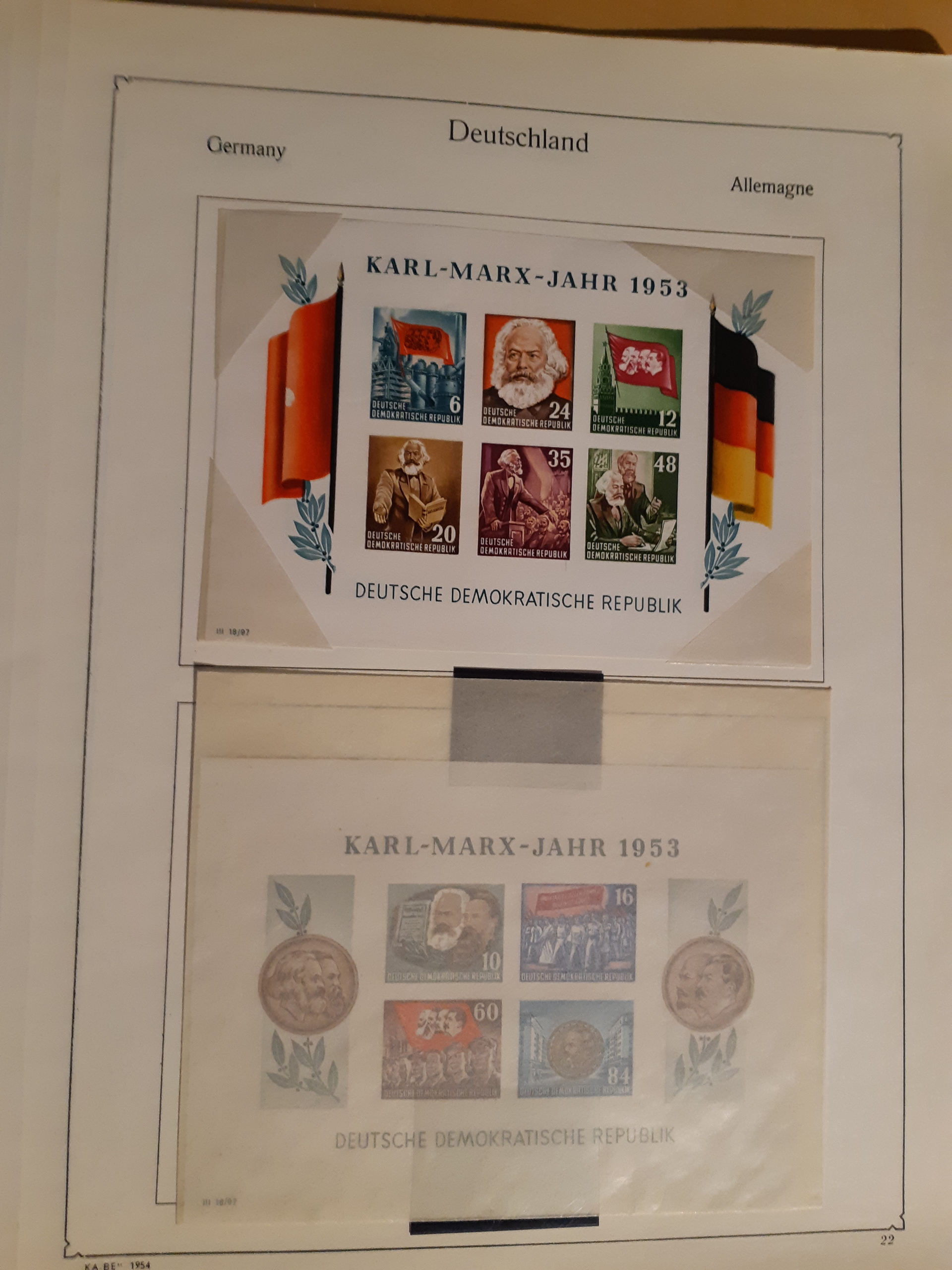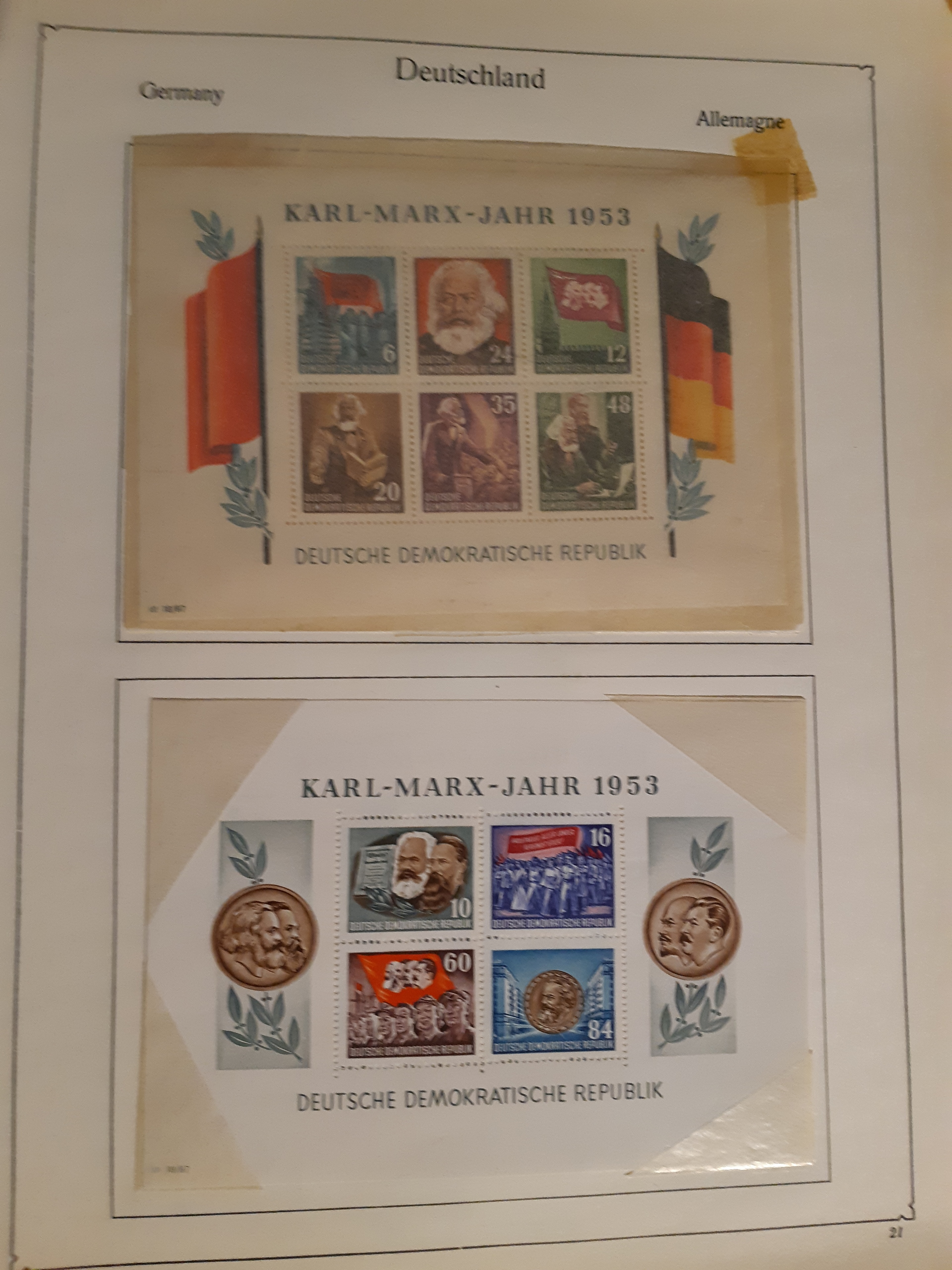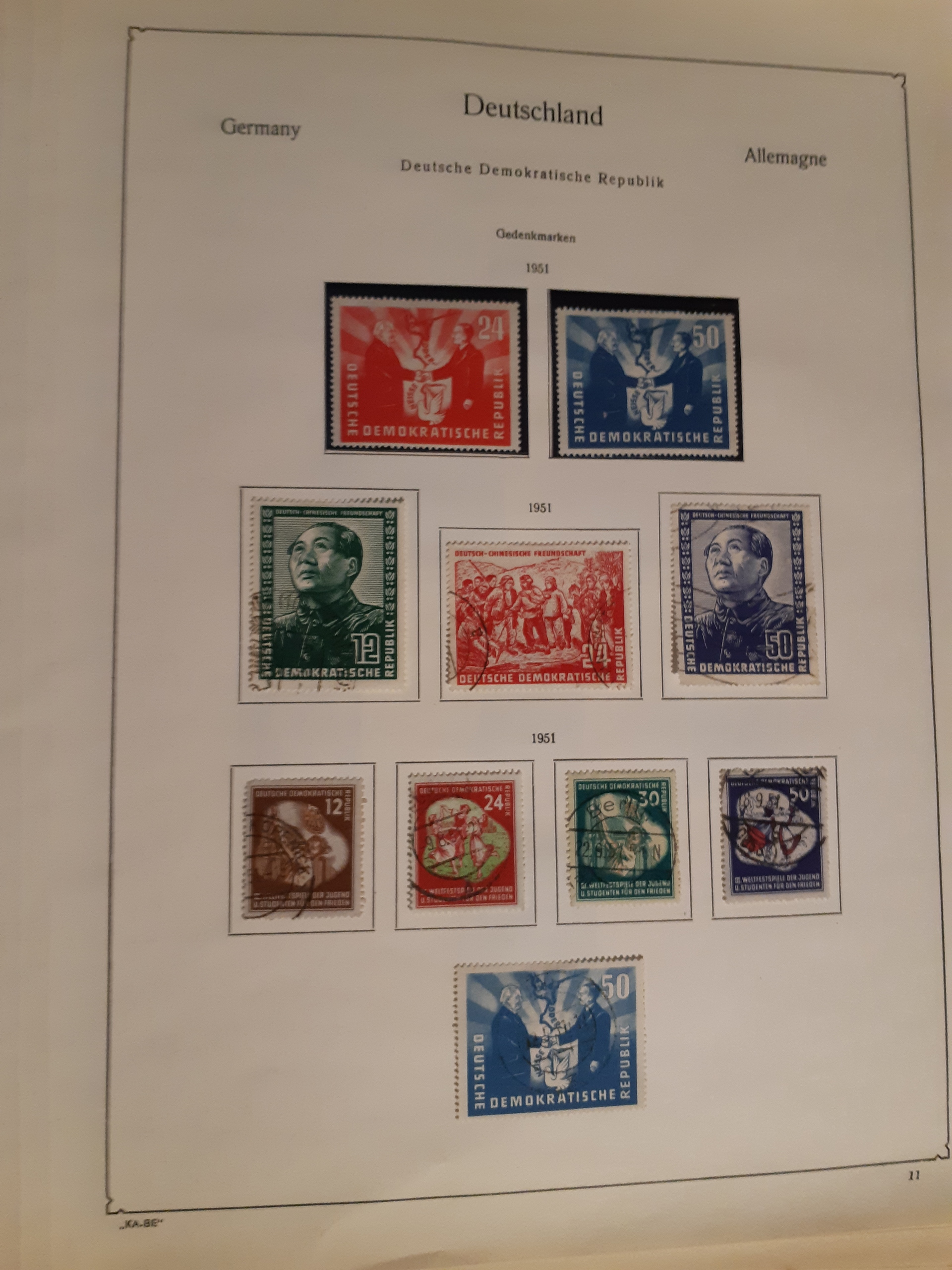 Germany, GDR (DDR). Collection ★/⊙ 1949–1955 on leaves. Partly both unused and used. Incl. souvenir sheets, etc. Favourable. Good quality. (350)