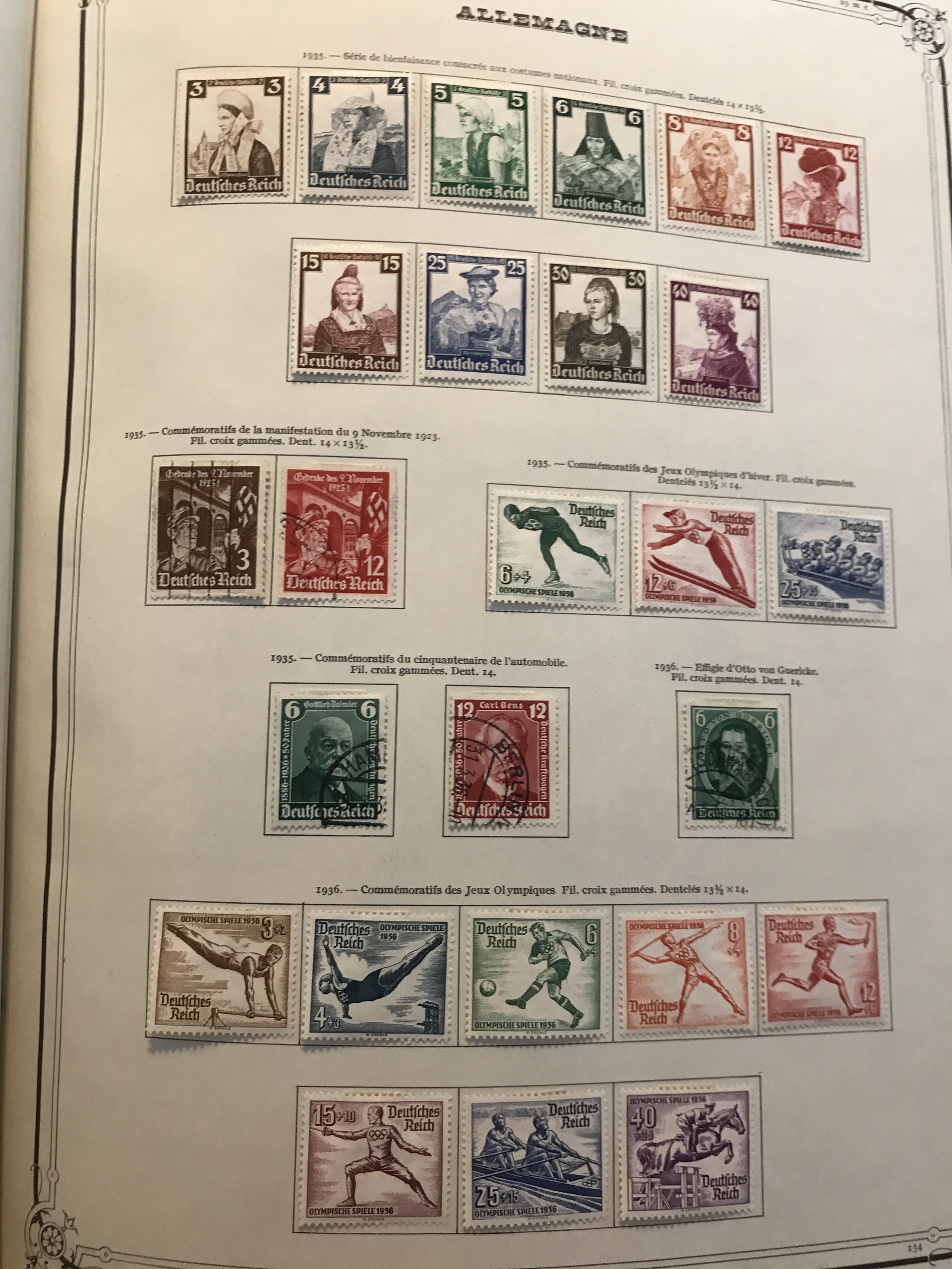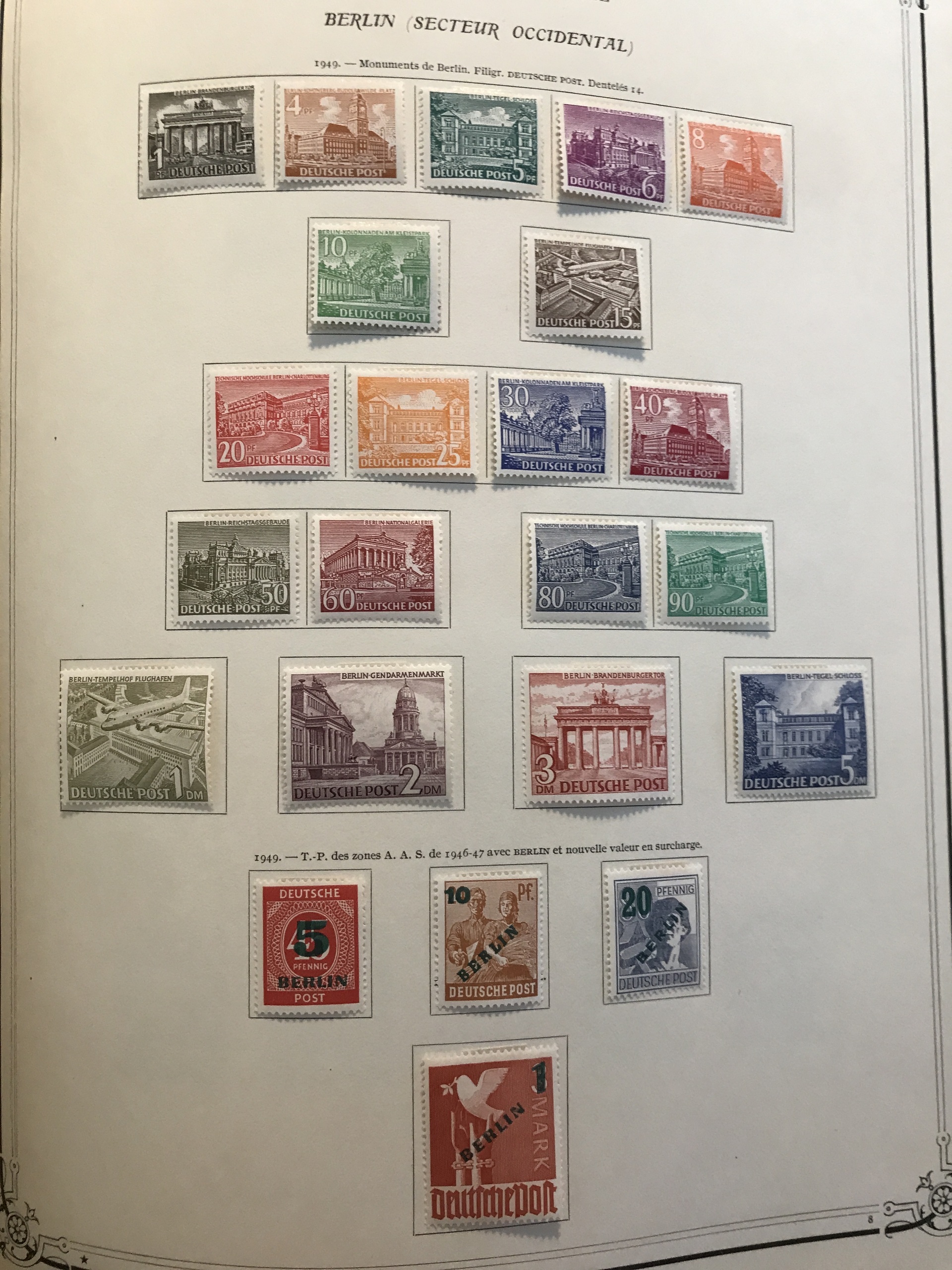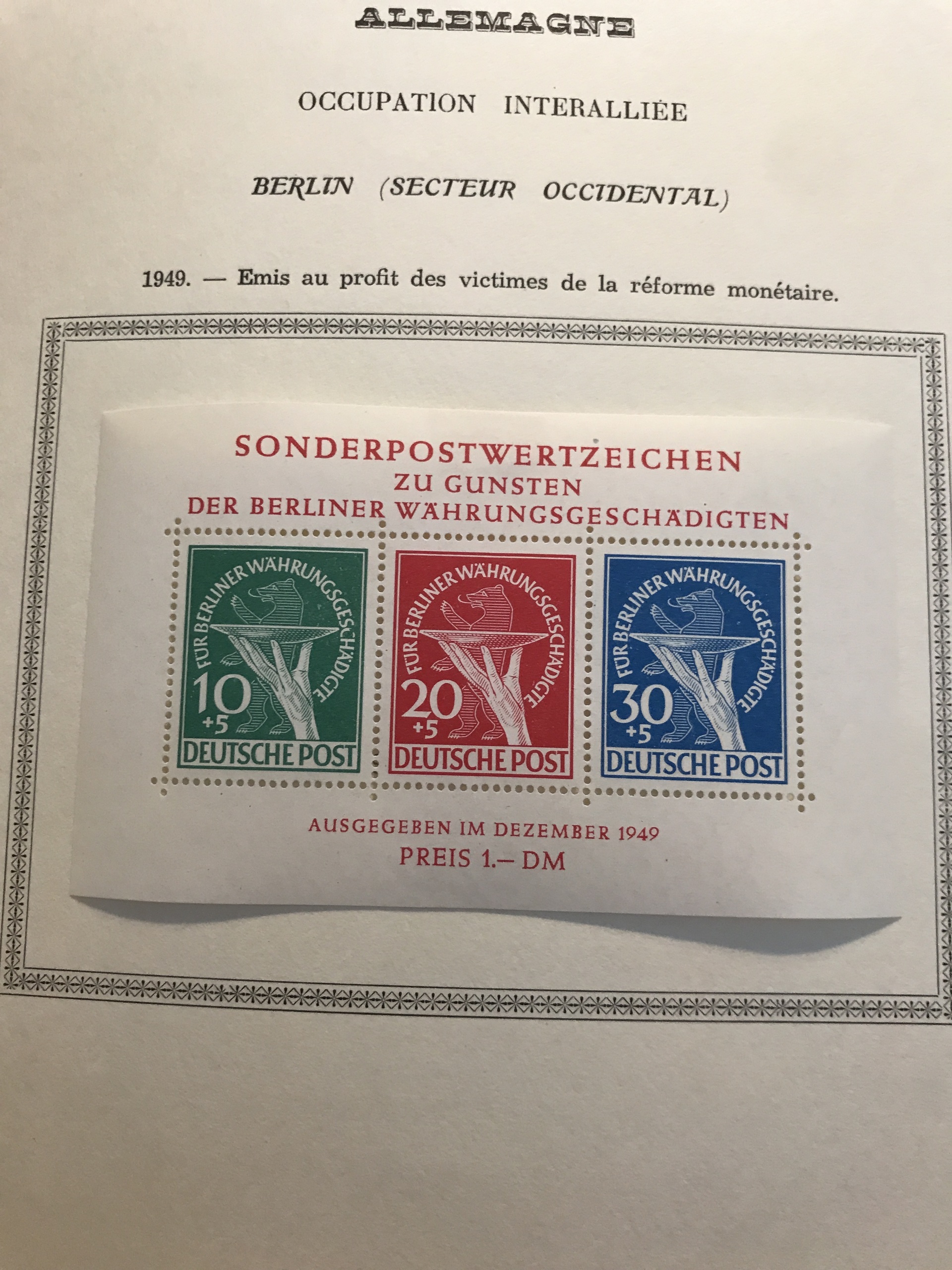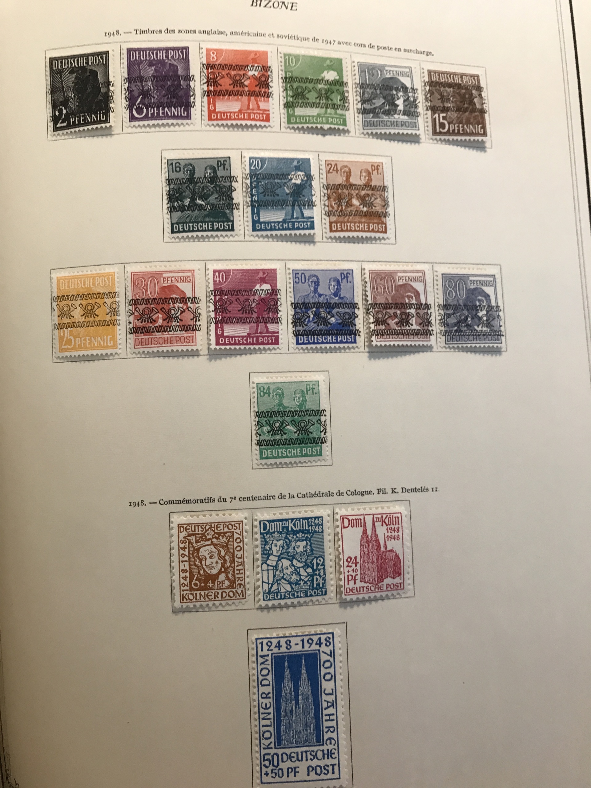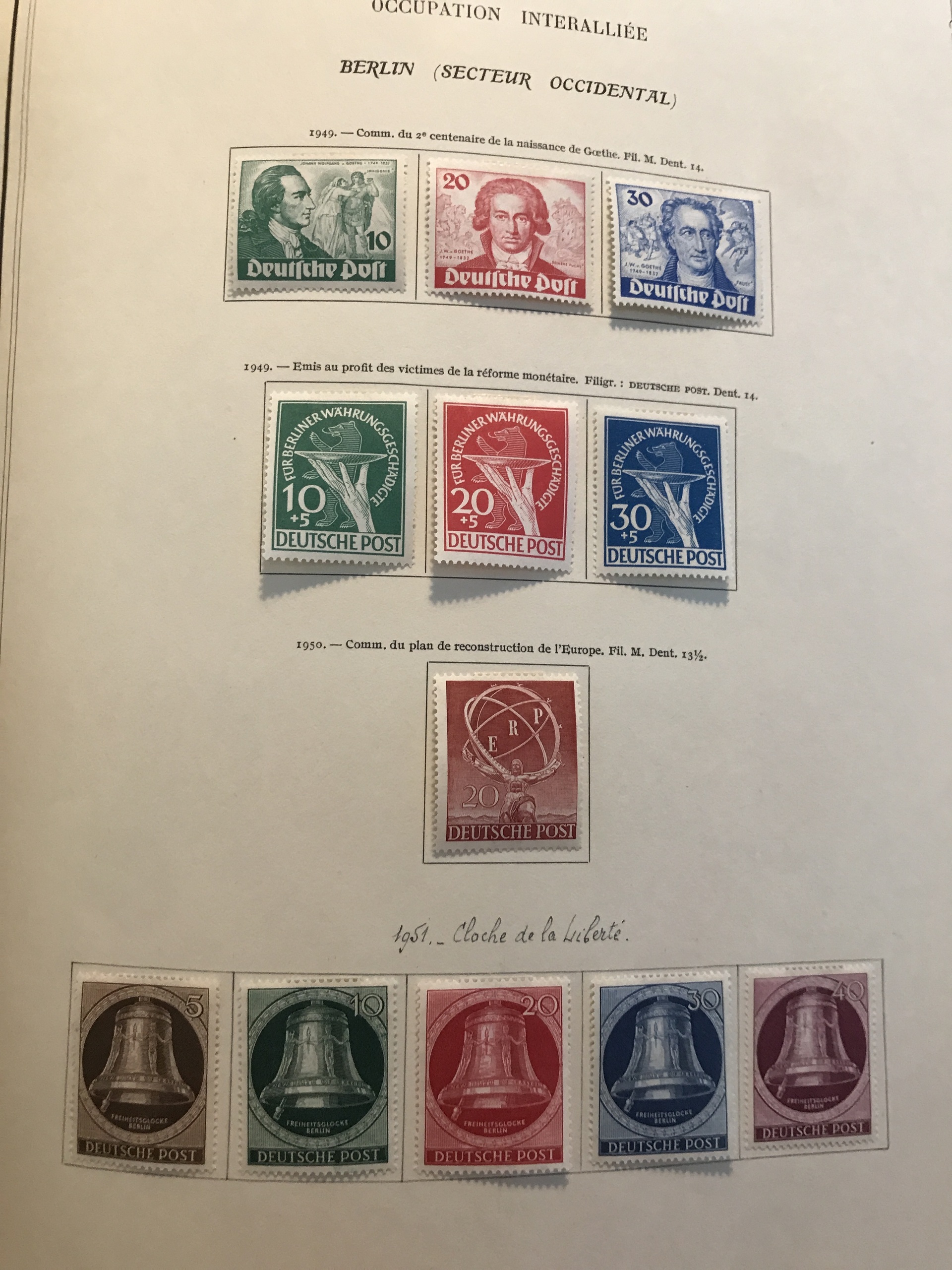 Germany, mixed. ★★/★/⊙. Collection 1872–1952 in Yvert album incl. e.g. Berlin Mi1–90 cpl. * and s/s1, BRD Mi111–47, Reich incl. e.g. Mi695–97 used and six souvenir sheets, Allied occupation, DDR and Soviet zone incl. souvenir sheet Goethe, etc. Please see a selection of scans at www.philea.se. Approx. 10 kg. (1600)