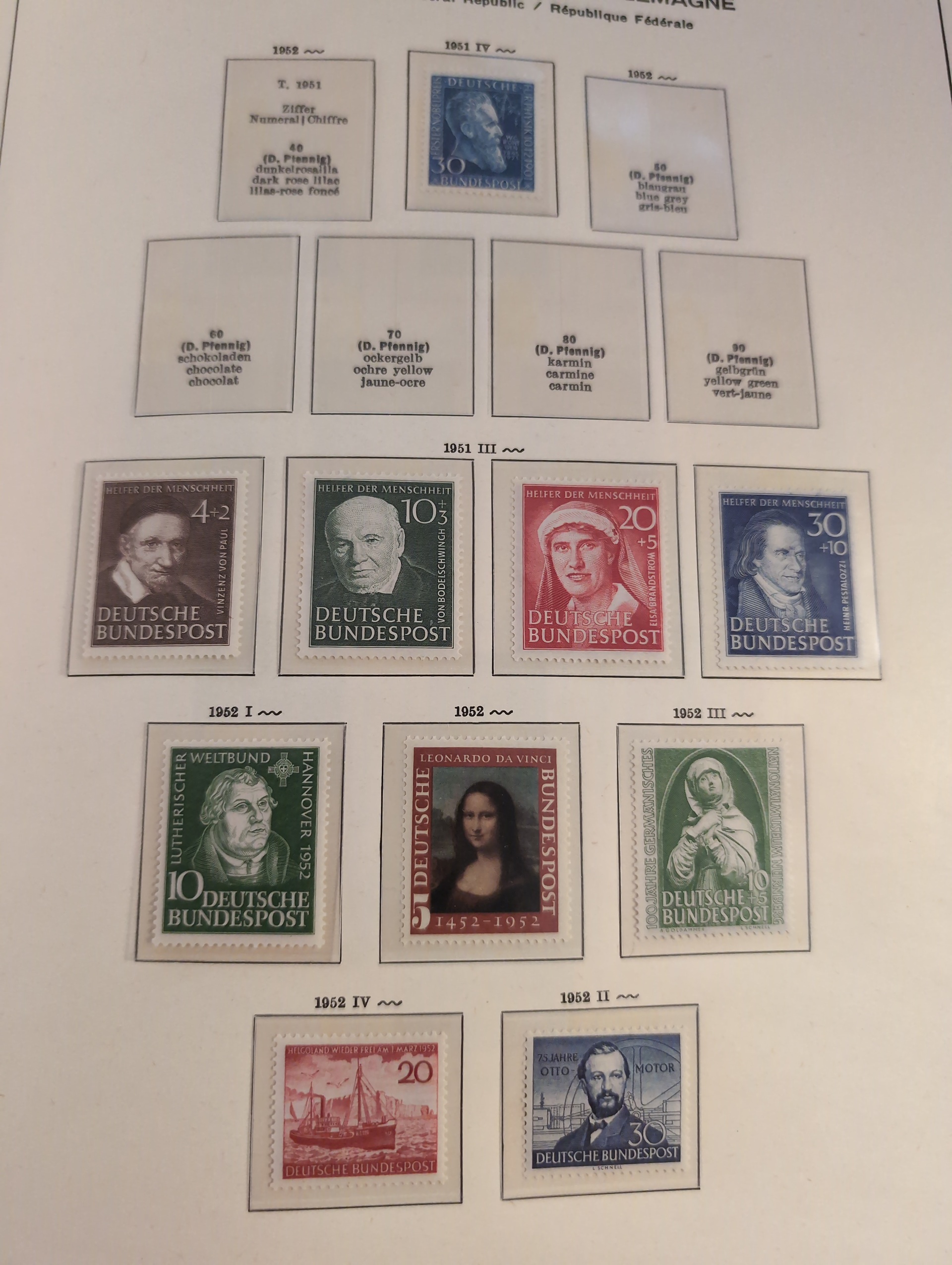 Germany, mixed. Collection ★★ 1949–1967 in album. GFR and Berlin never hinged in Schaubek album GFR looks complete except for Posthorn set. Berlin missing some early stamps. Please see a selection of scans at www.philea.se. Mostly fine quality. (500–600)
