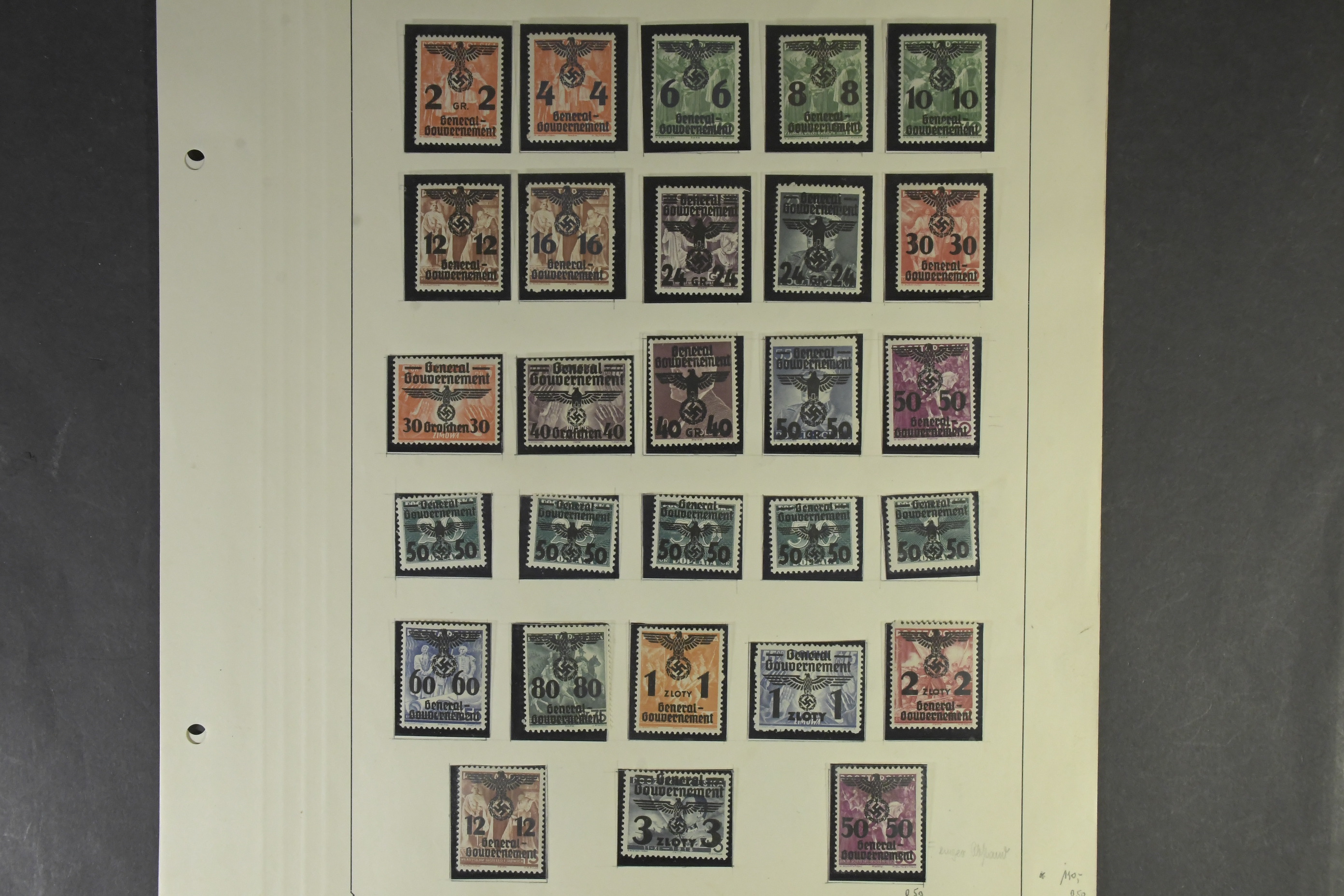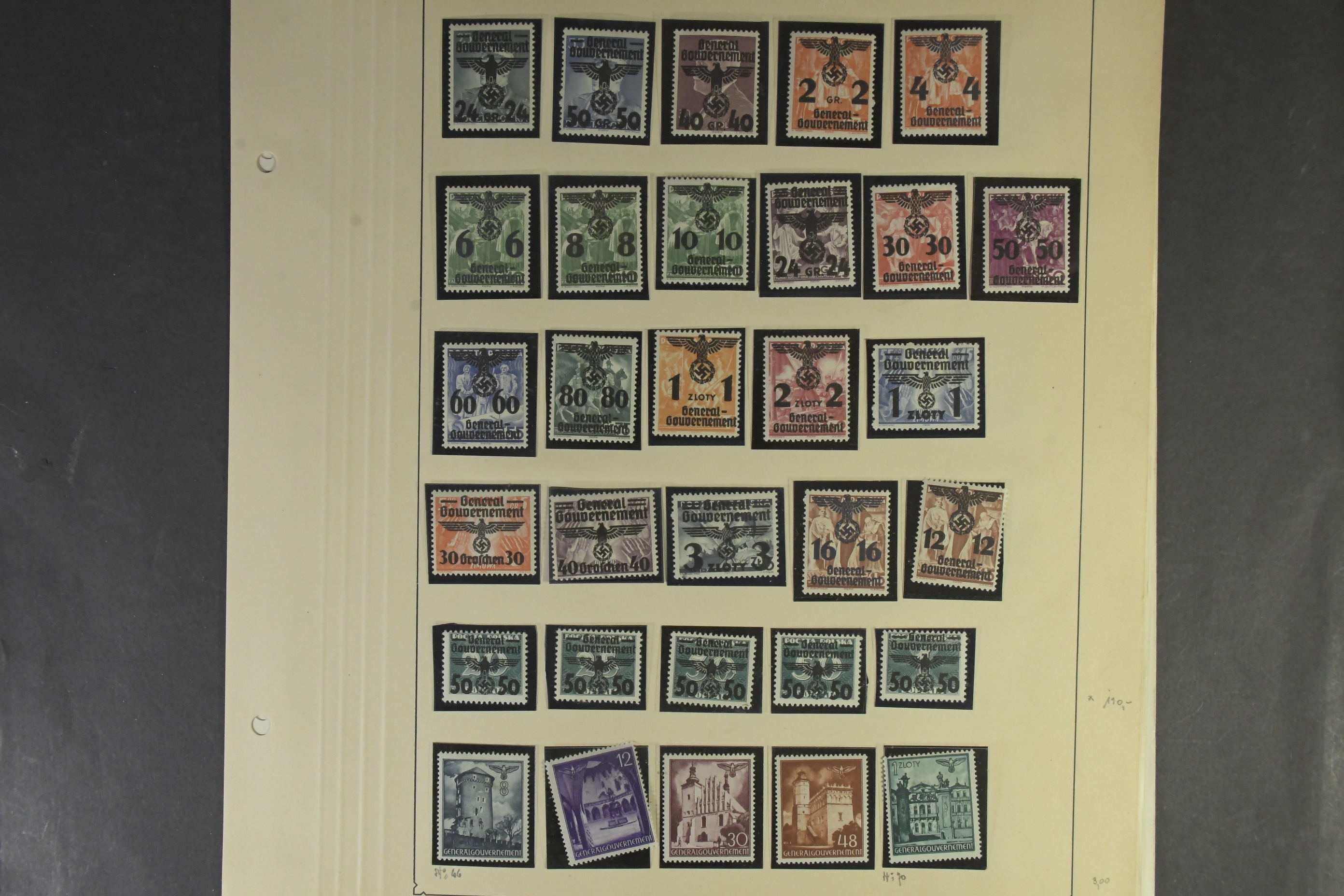 Germany, mixed. Collection ★★/★/⊙ on old leaves. Genelaj Government, Luxemburg, Elsass, Ukraine, Bohemia and Moravia. Many complete sets in good condition both x or xx and used. Somewhat mixed quality.