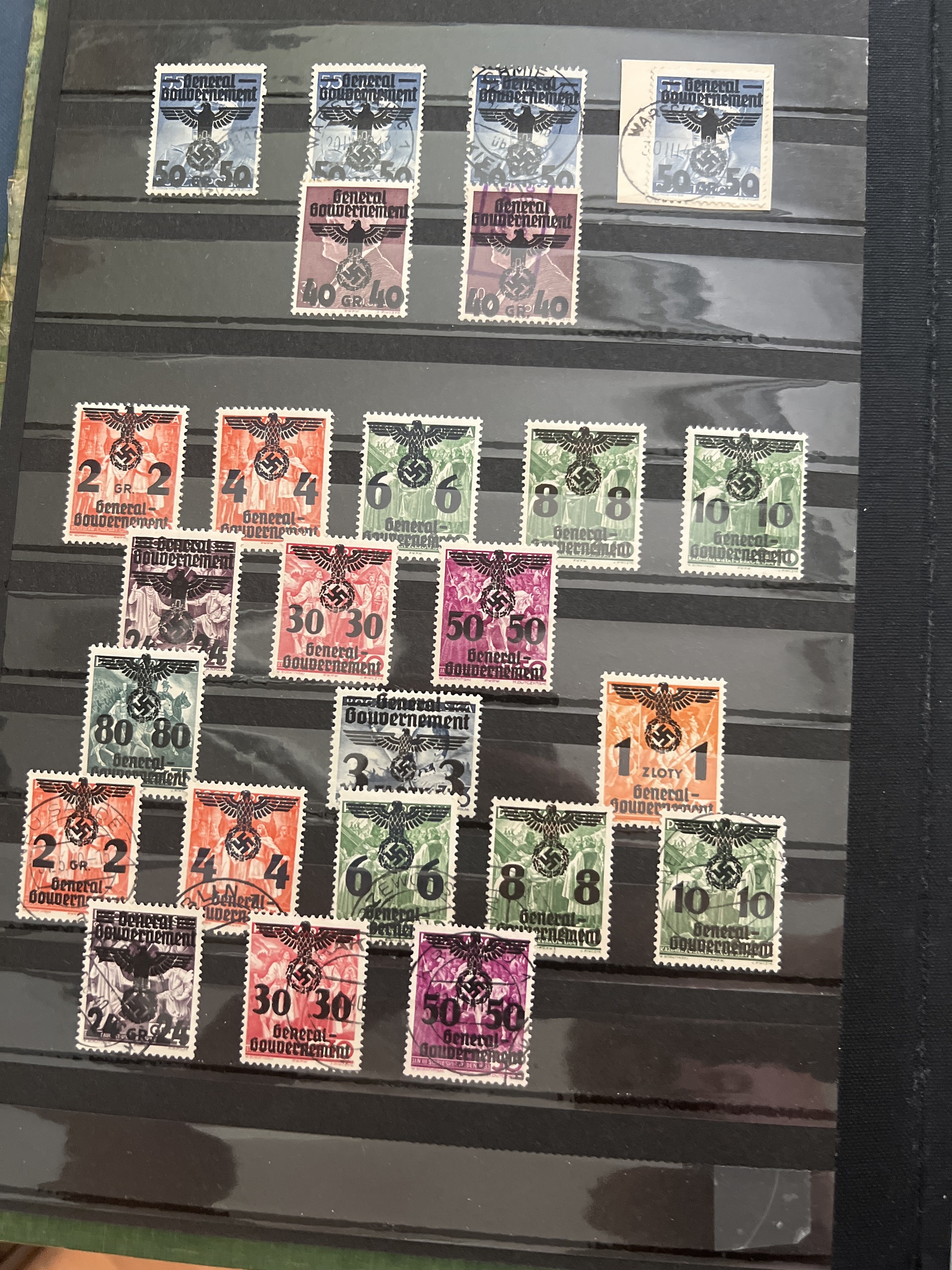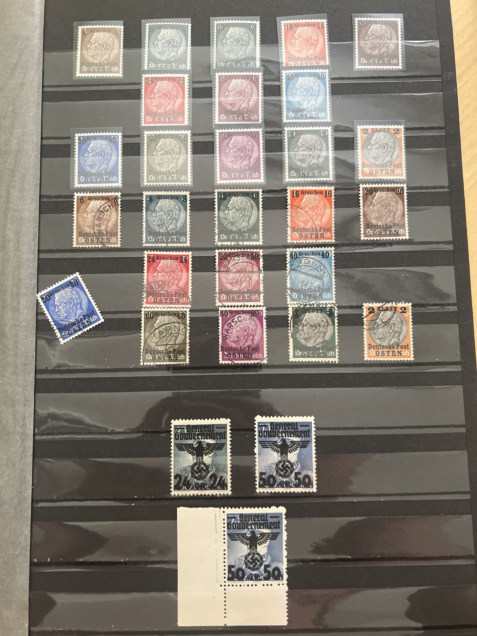 Germany, mixed. Accumulation ★★/★/⊙ 1914–1945 in three stockbooks. WWI occupation zones, voting areas and General Government and some other associated areas. Used and mint with some blocks of 4. Plenty of sets. Please see a selection of scans at www.philea.se. Mostly fine quality.