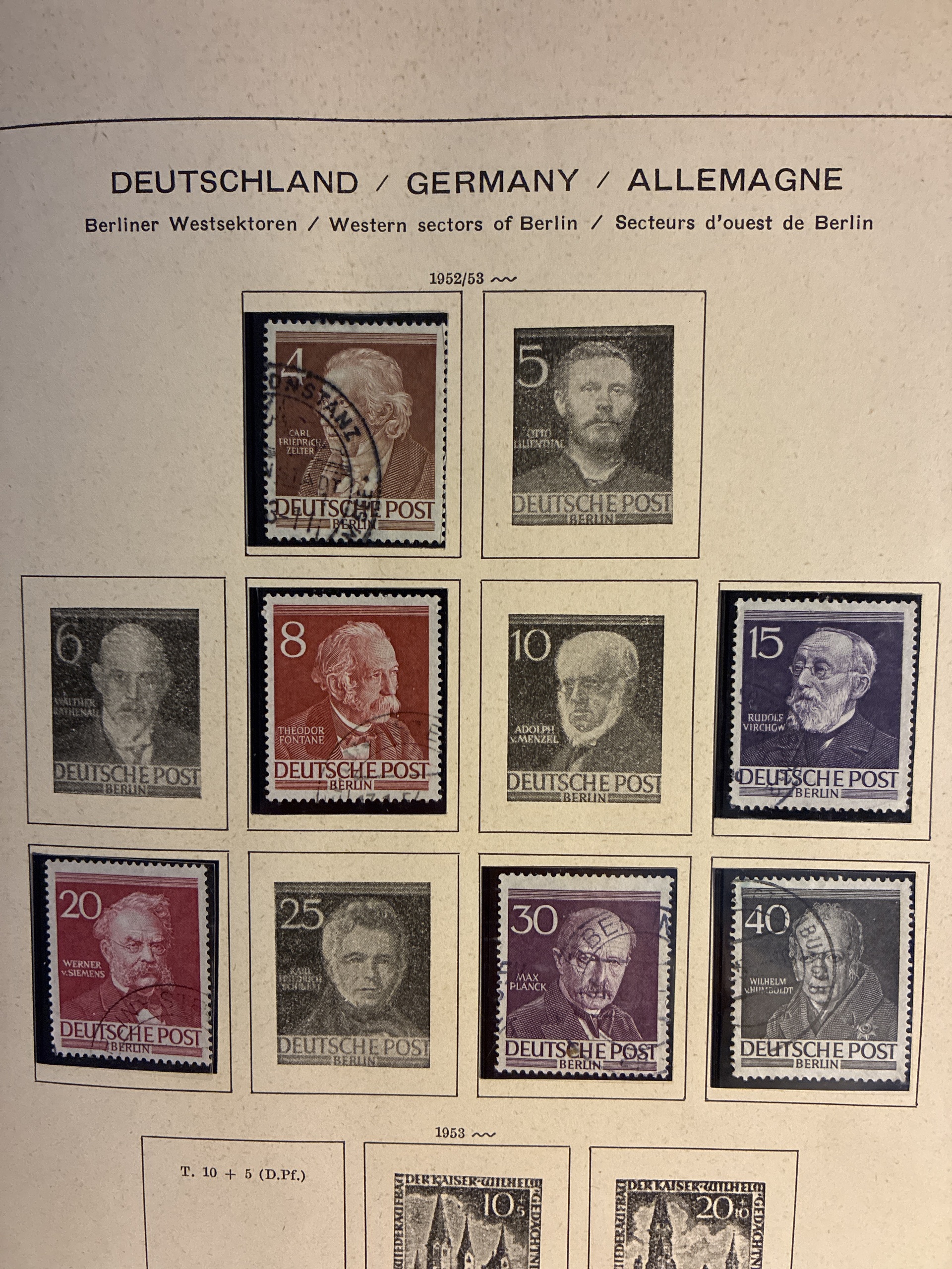 Germany, mixed. Collection ★★/⊙ 1945–1983 in two albums. BRD, Berlin West and French, American and British Zone, Saar. Please see a selection of scans at www.philea.se. Berlin mostly mint. Good quality. (2000)