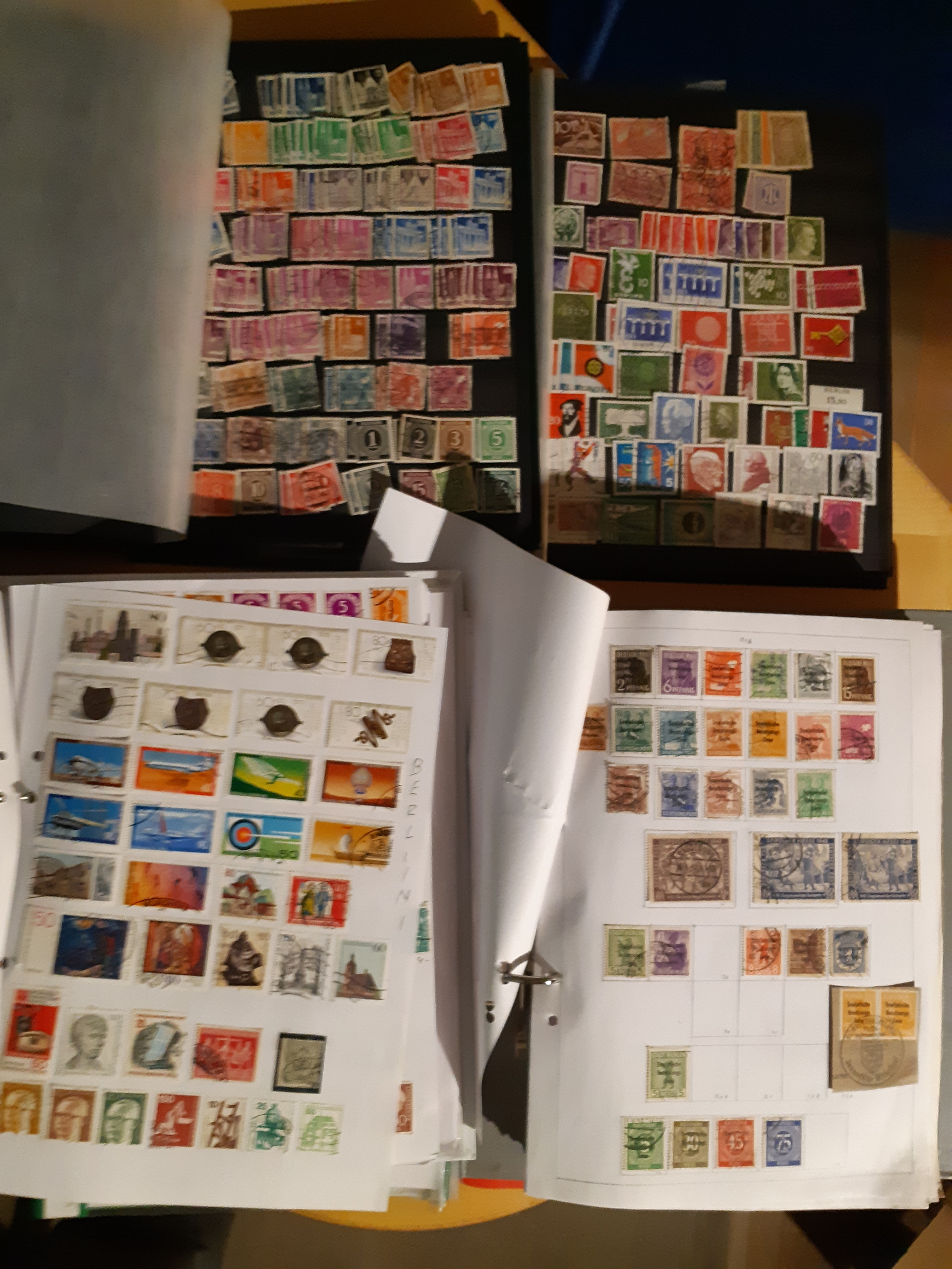 Germany, mixed. Accumulation used 1880s–2010s in albums and binders in box. Mostly BRD, DDR and Germany, plus a few Reich, Berlin, etc. Mostly good quality. Approx. 9 kg. (1000s)
