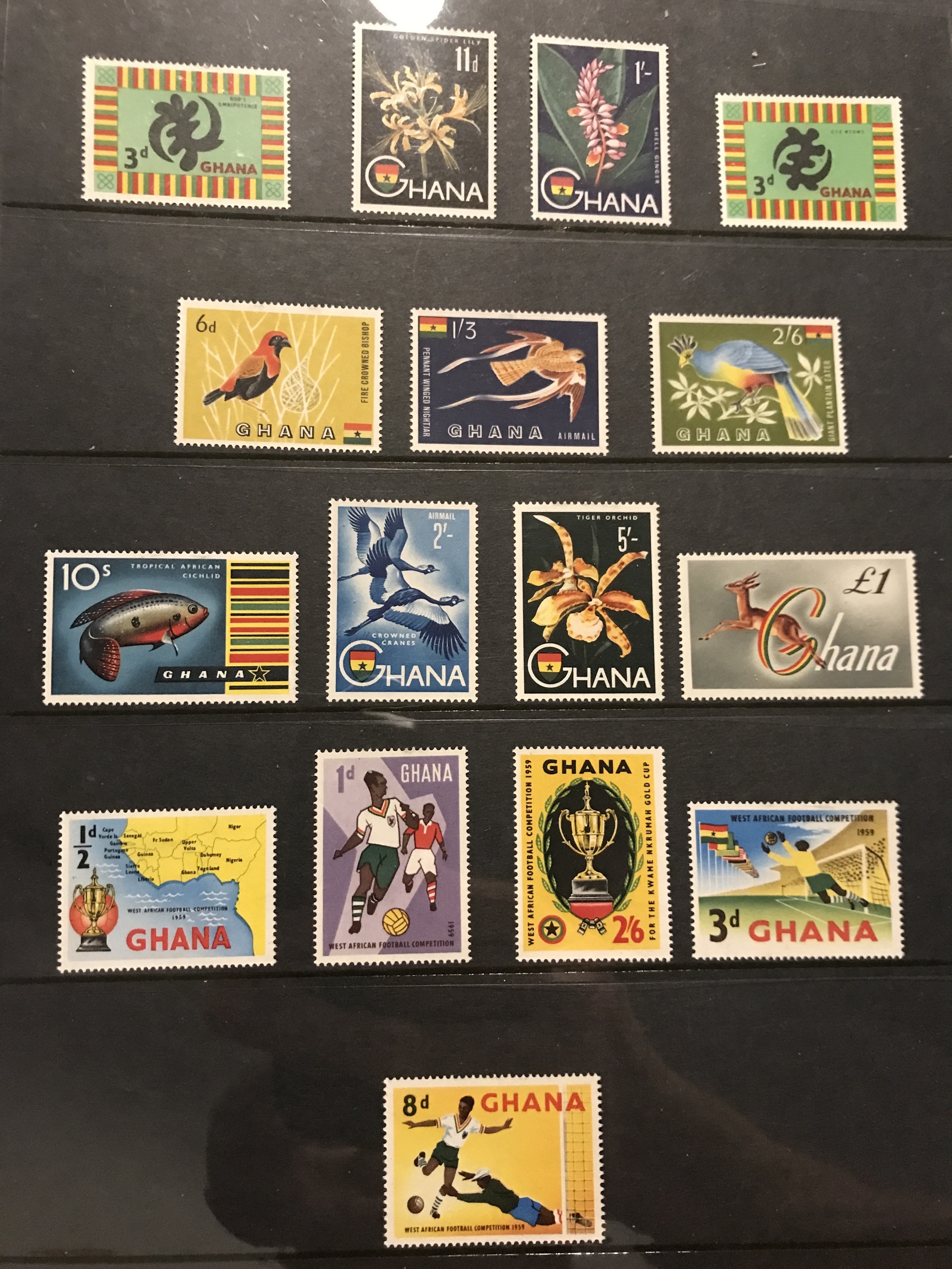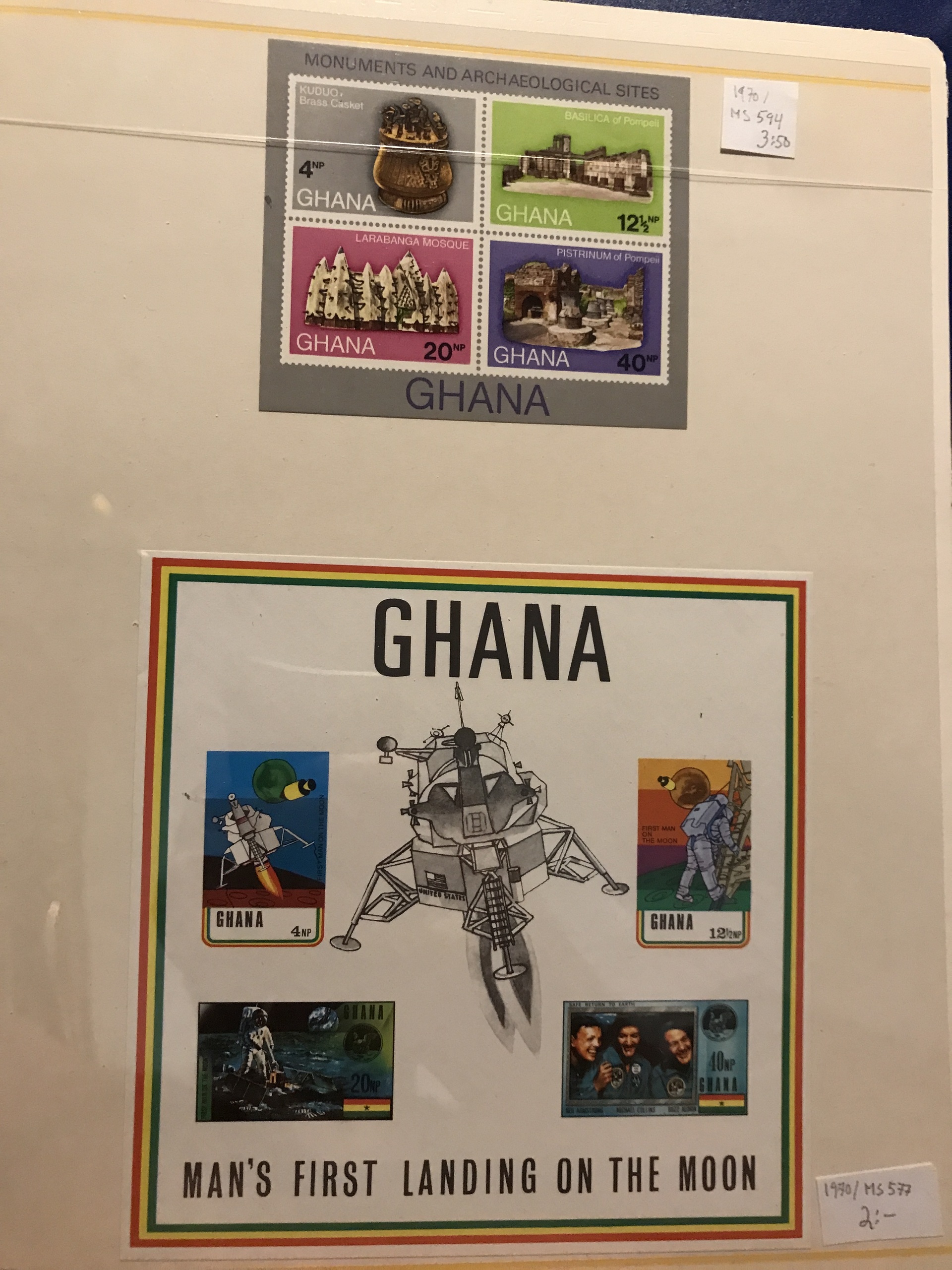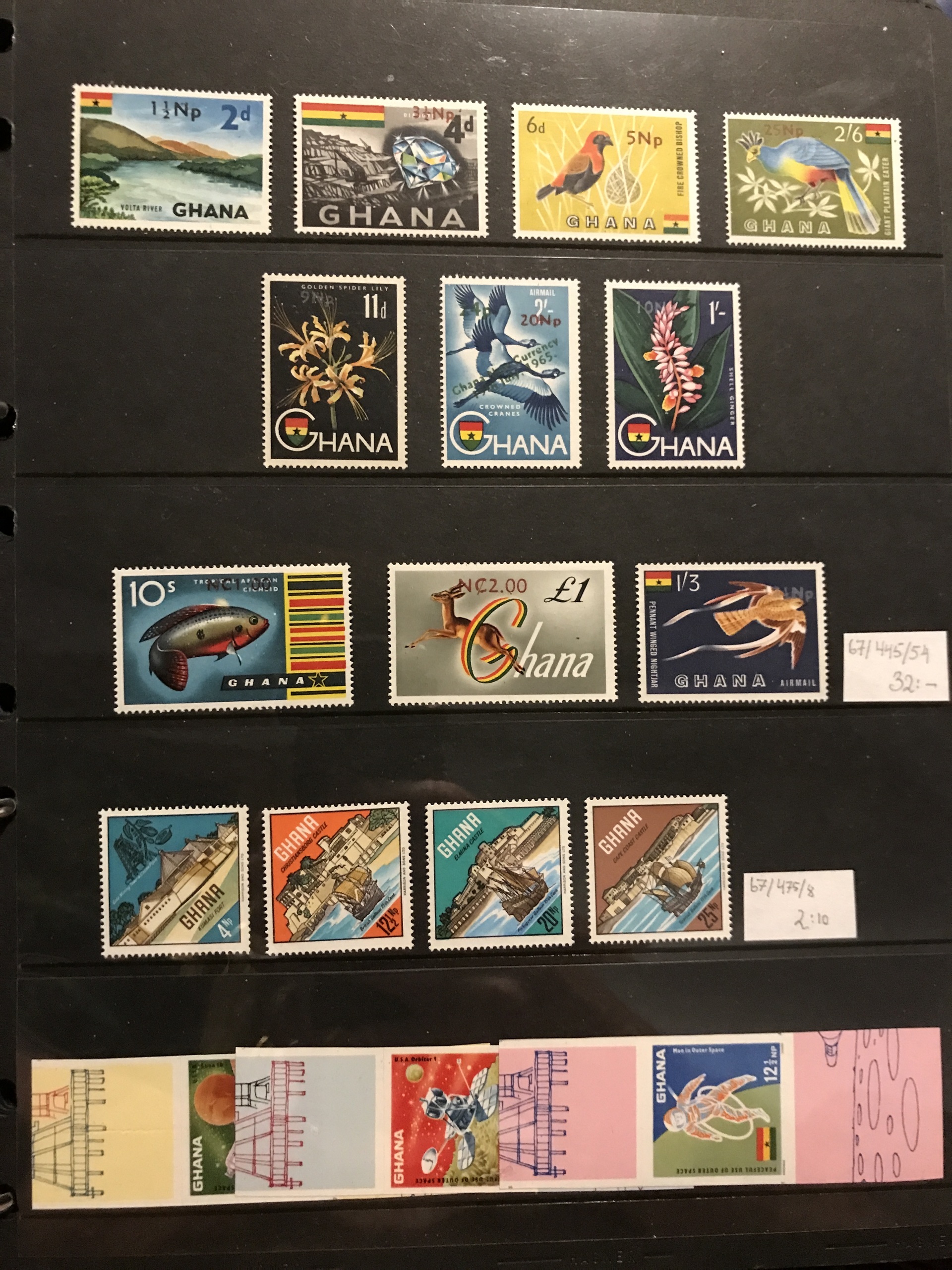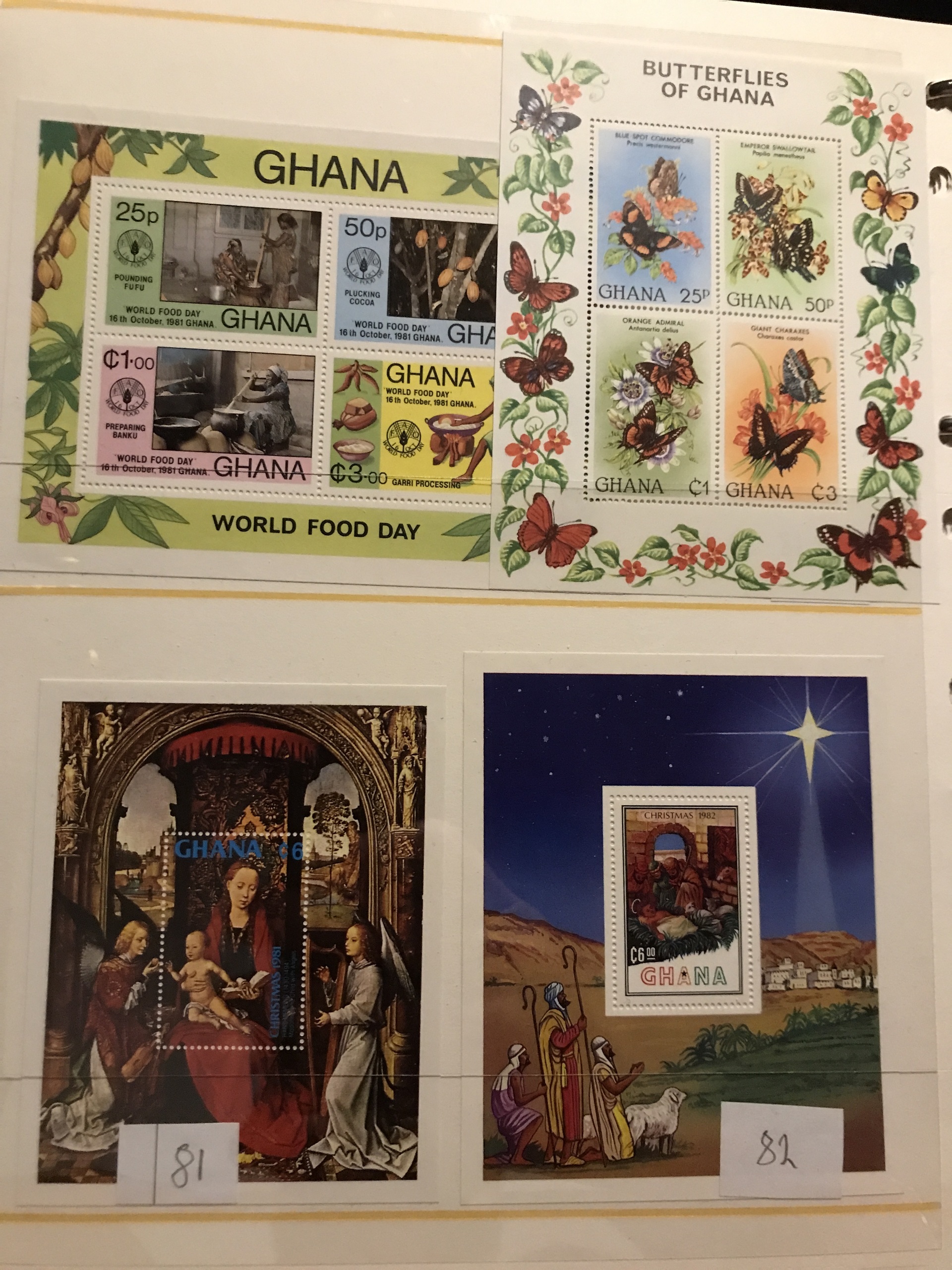 Ghana. ★★/★. Collection 1953-83 in two Leuchtturm albums with slip cases incl. about 95 souvenir sheets. Everything apparently ** from 1965. Please see a selection of scans at www.philea.se.