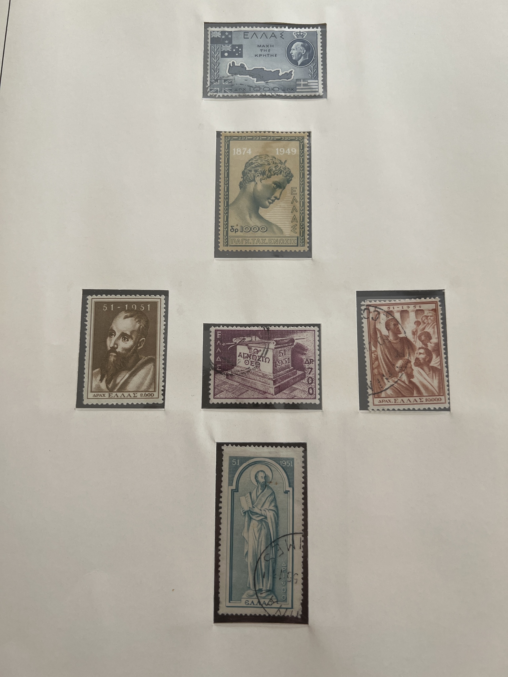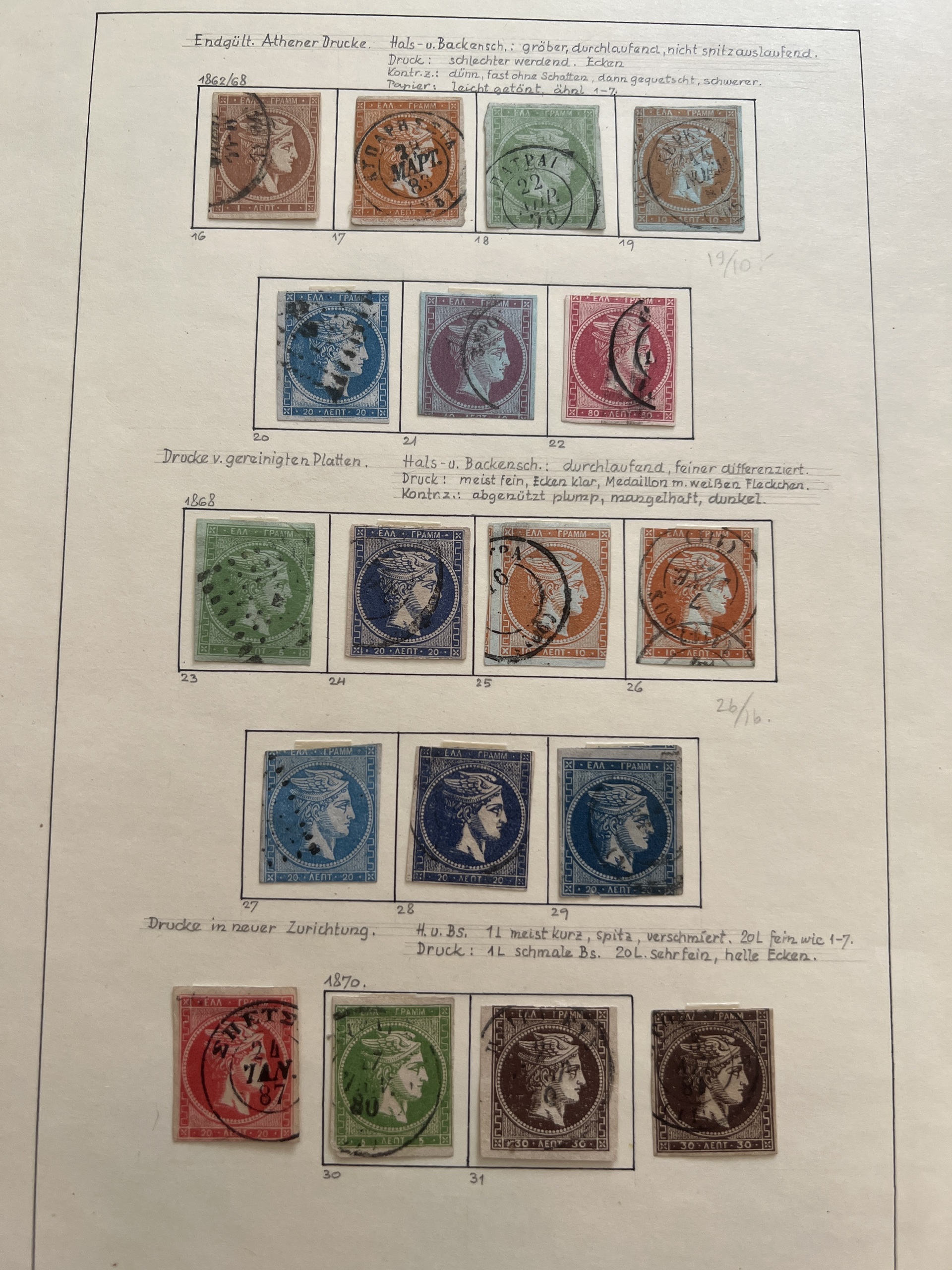 Greece. Collection/accumulation ★★/★/⊙ 1861–1981 in two albums. Two residue collections the first with some Hermes heads and then a simple used collection. The other with 1935–1981 in Lindner album with mounts, incl. some better used stamps and sets, from 1965 most are UM. Please see a selection of scans at www.philea.se. Good quality. Approx. 5 kg. (1000s)