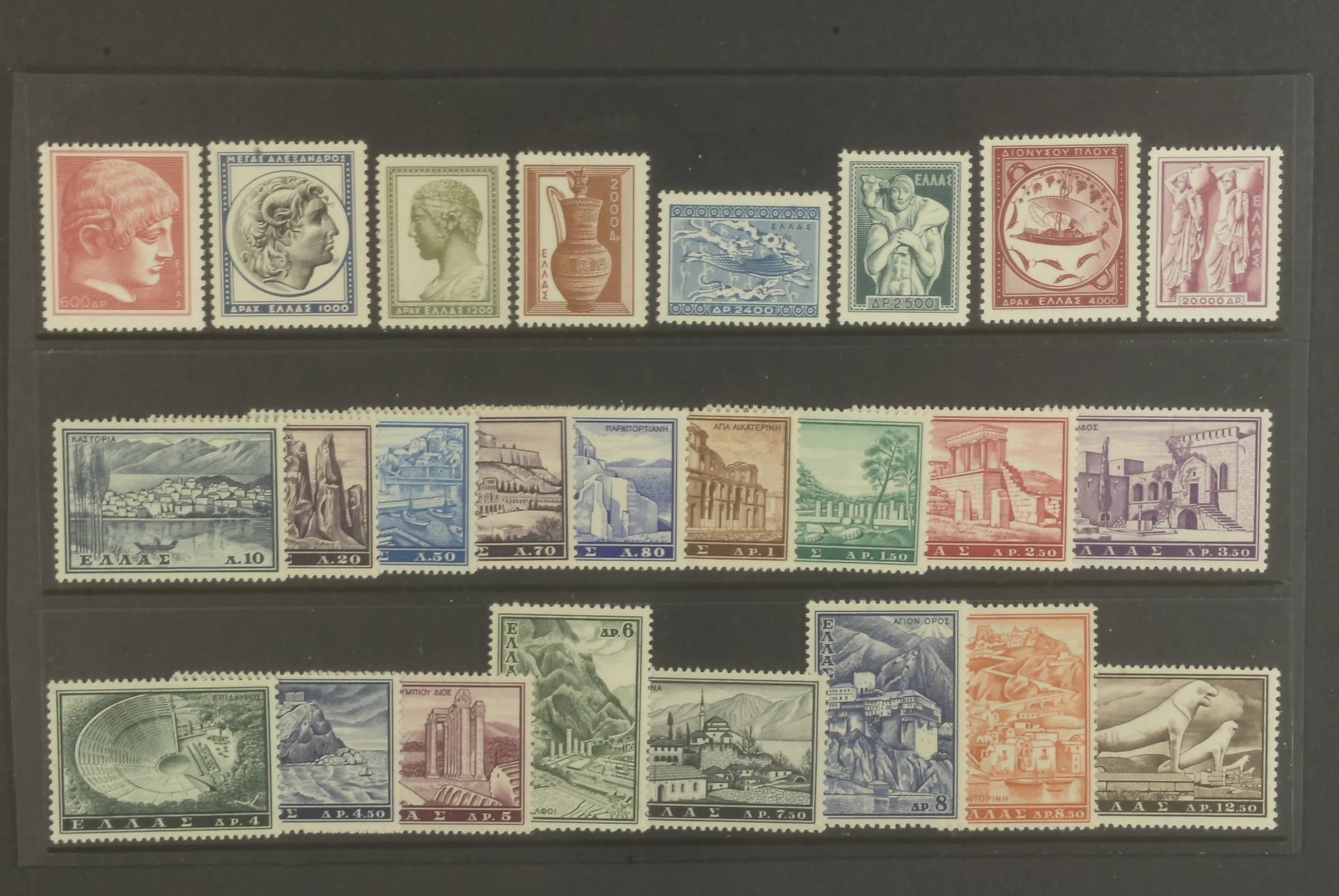 Greece. ★★. Five nice sets 1951–61 incl. Mi582–87 Marshall, 603–14, 615–17 NATO, 618–23 and 748–64. Mi 850 Euro. The entire lot is presented at www.philea.se.