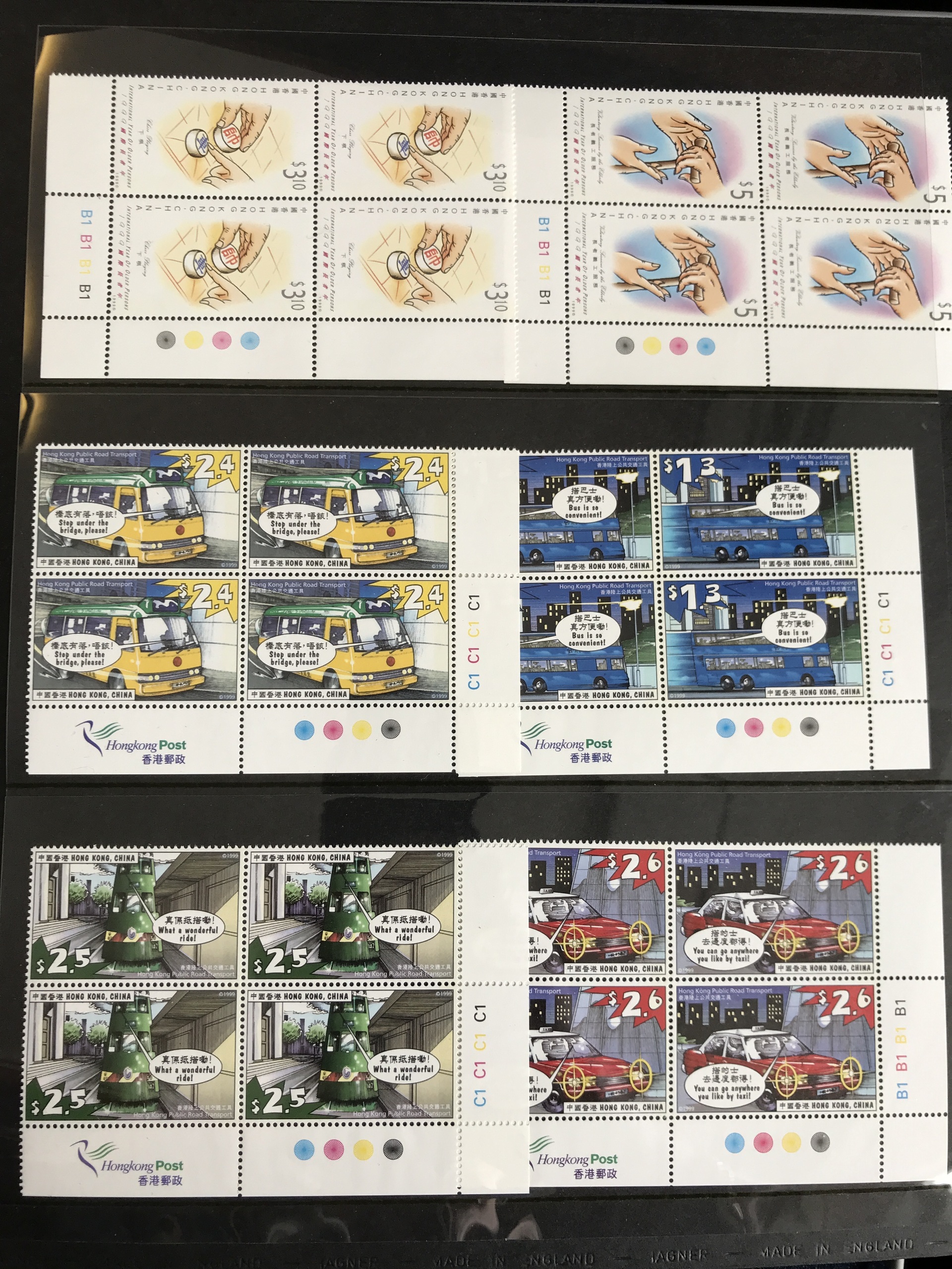 Hong Kong. ★★. Three thick Visir binders with e.g. 100s of strips-, blocks-of-four and souvenir sheets, etc. mostly 1990s–2000s + visir binder with FDCs and some booklets, etc. Please see a selection of scans at www.philea.se. Approx. 12 kg.