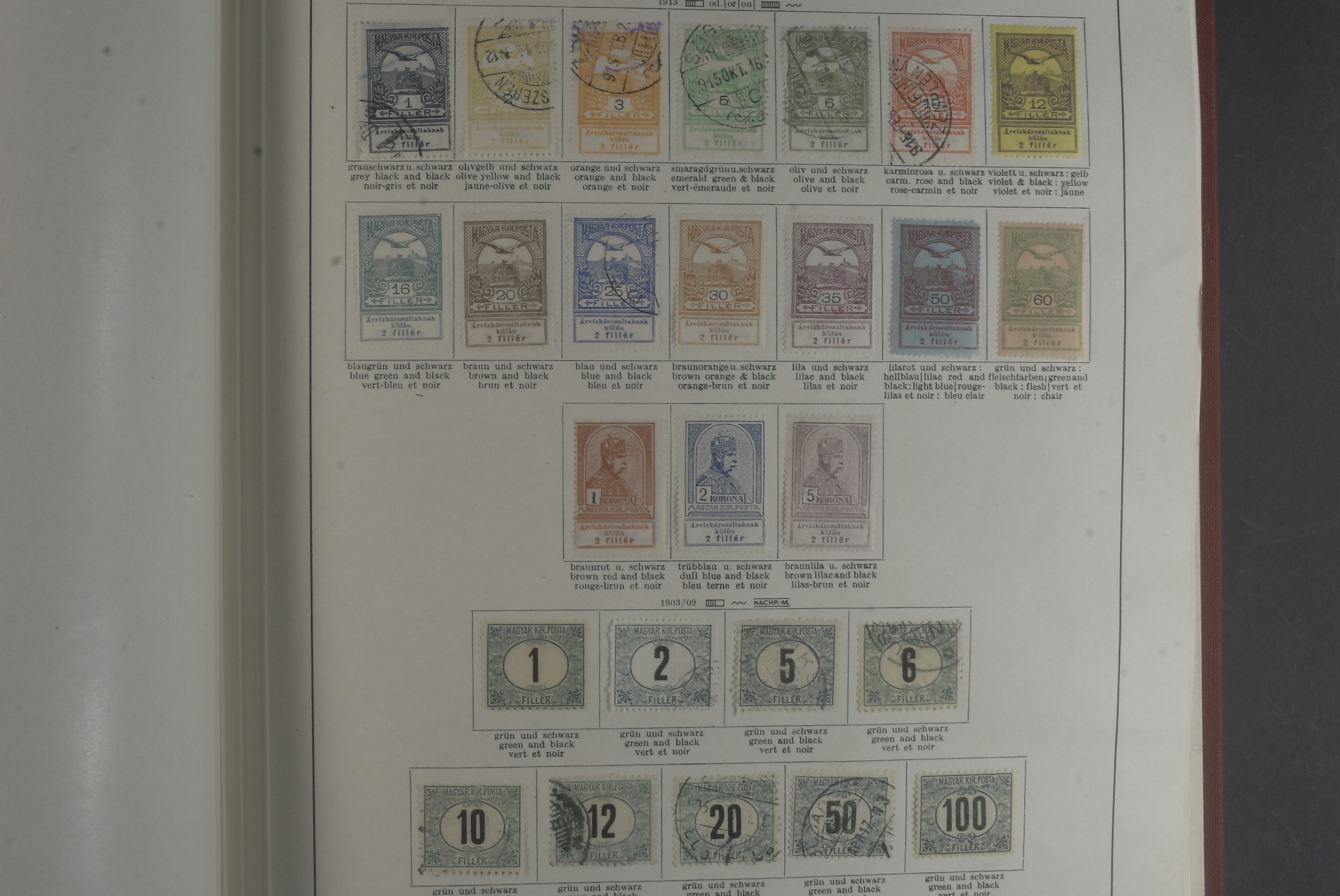 Hungary. Collection ★/⊙ 1871-1956 in Schaubek album without stamp mounts. Almost complete in main numbers mixed used and mint, many better stamps ans good s/s (some, no 17, 19-22 **). Please see a selection of scans at www.philea.se. Mostly fine quality.