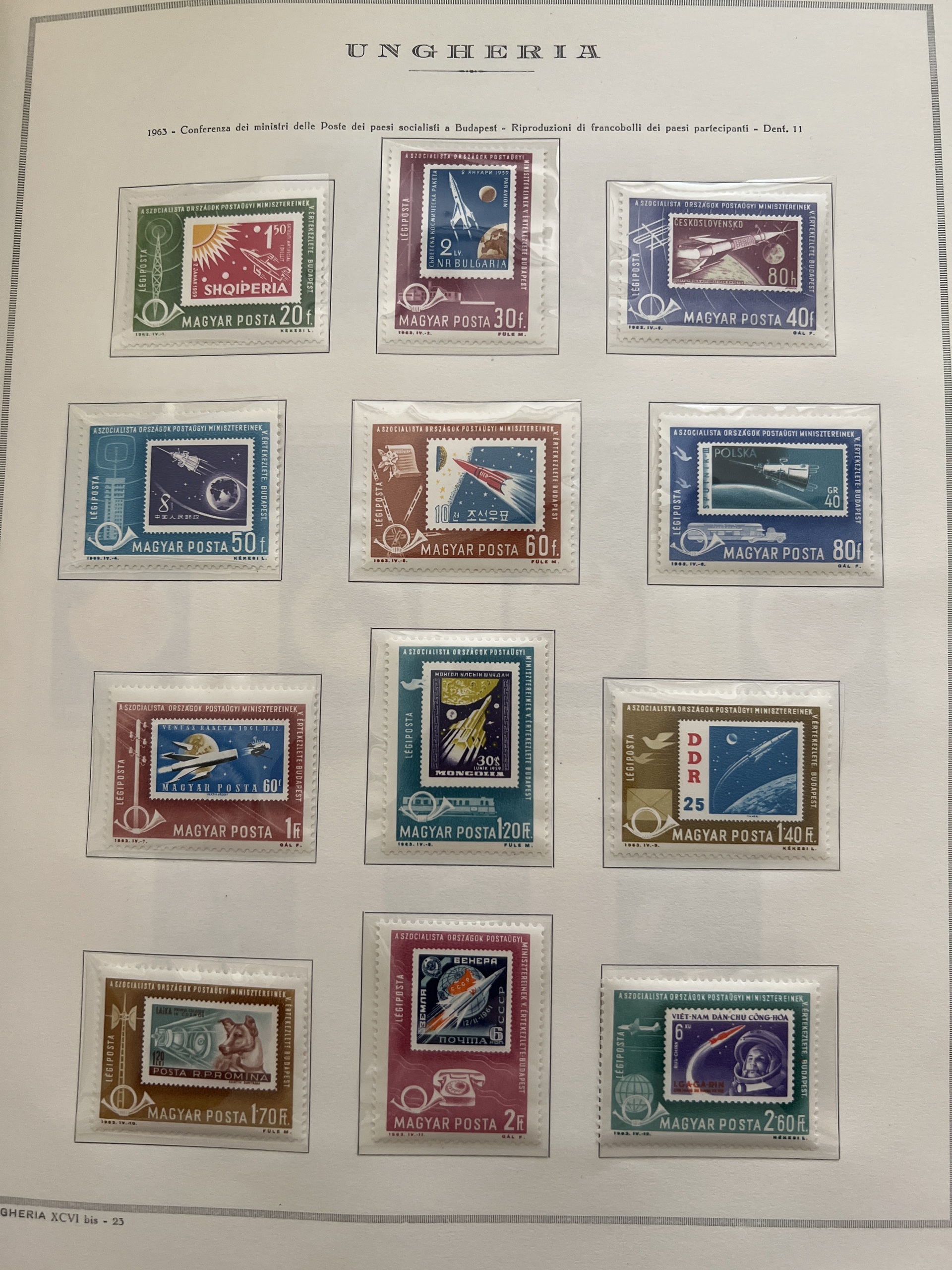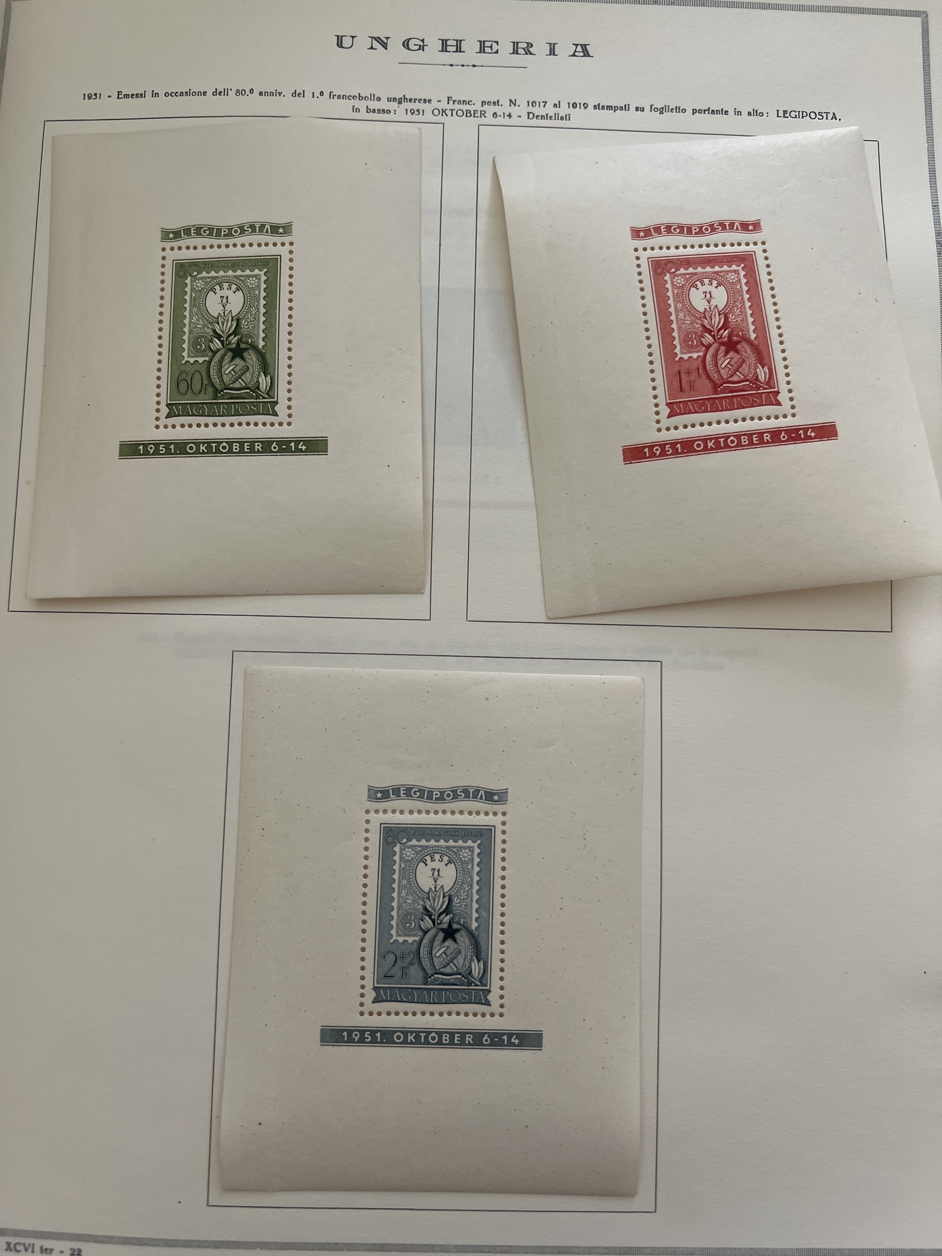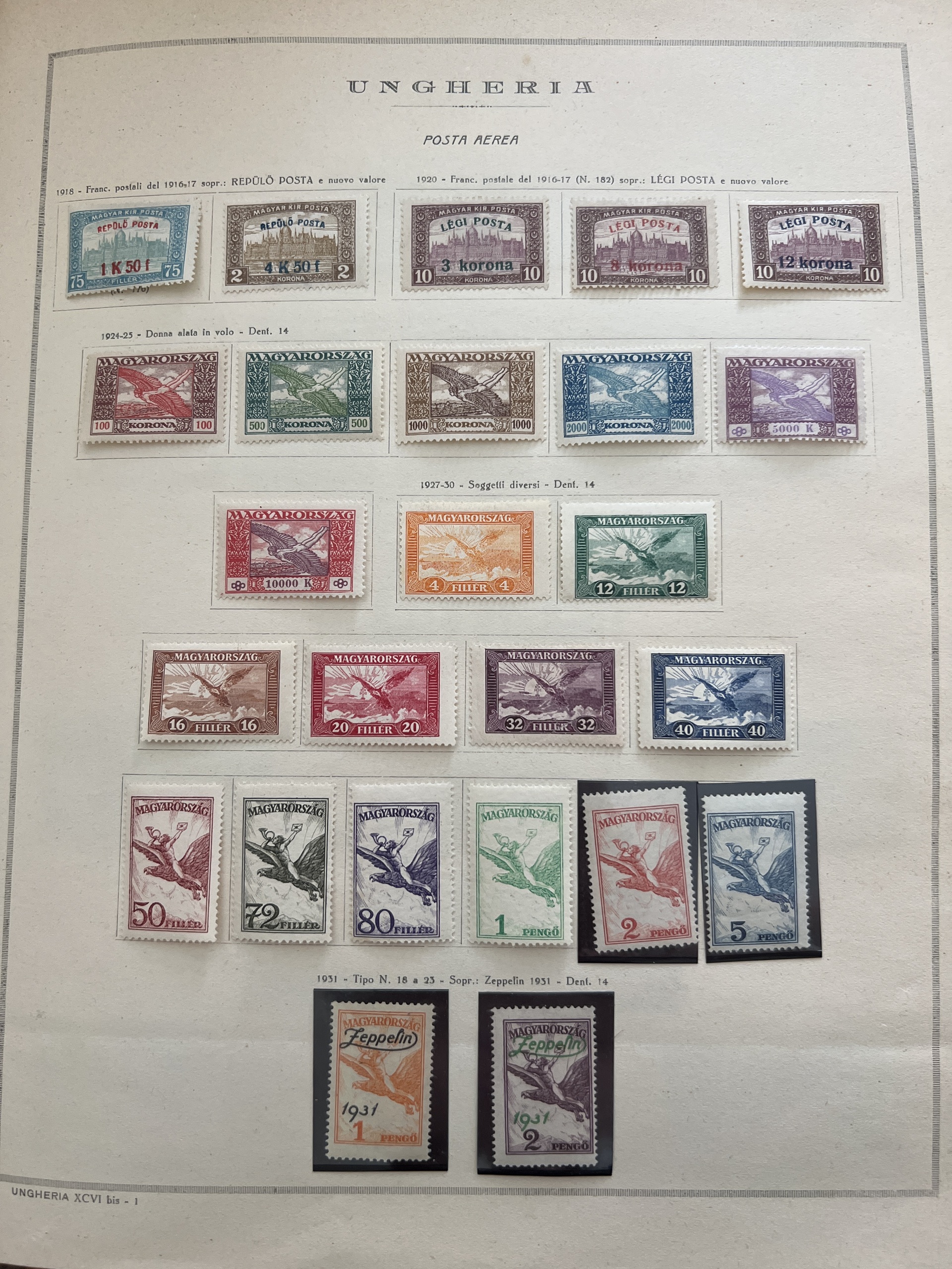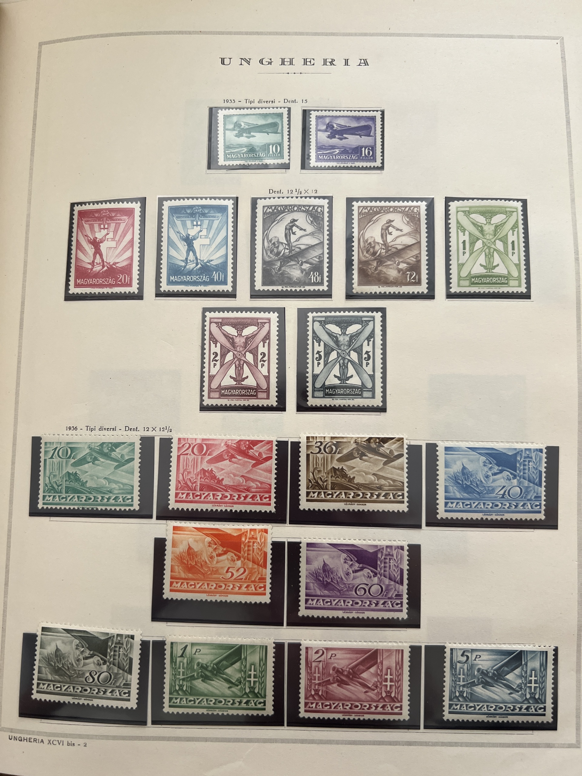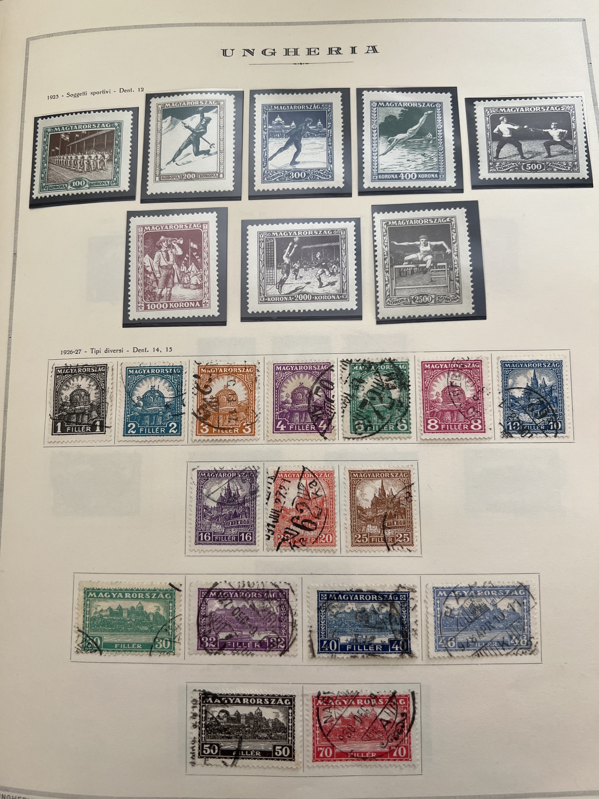 Hungary. Collection ★★/★/⊙ 1871–1970 in two Marini albums. Very well filled with mixed mint and used until 1940 after that mostly mint and from 1962 MNH. Incl. many better stamps and sets and some good M/S. Not many gaps except for M/S. Please see a selection of scans at www.philea.se. Mostly fine quality. Approx. 5 kg. (2400+)