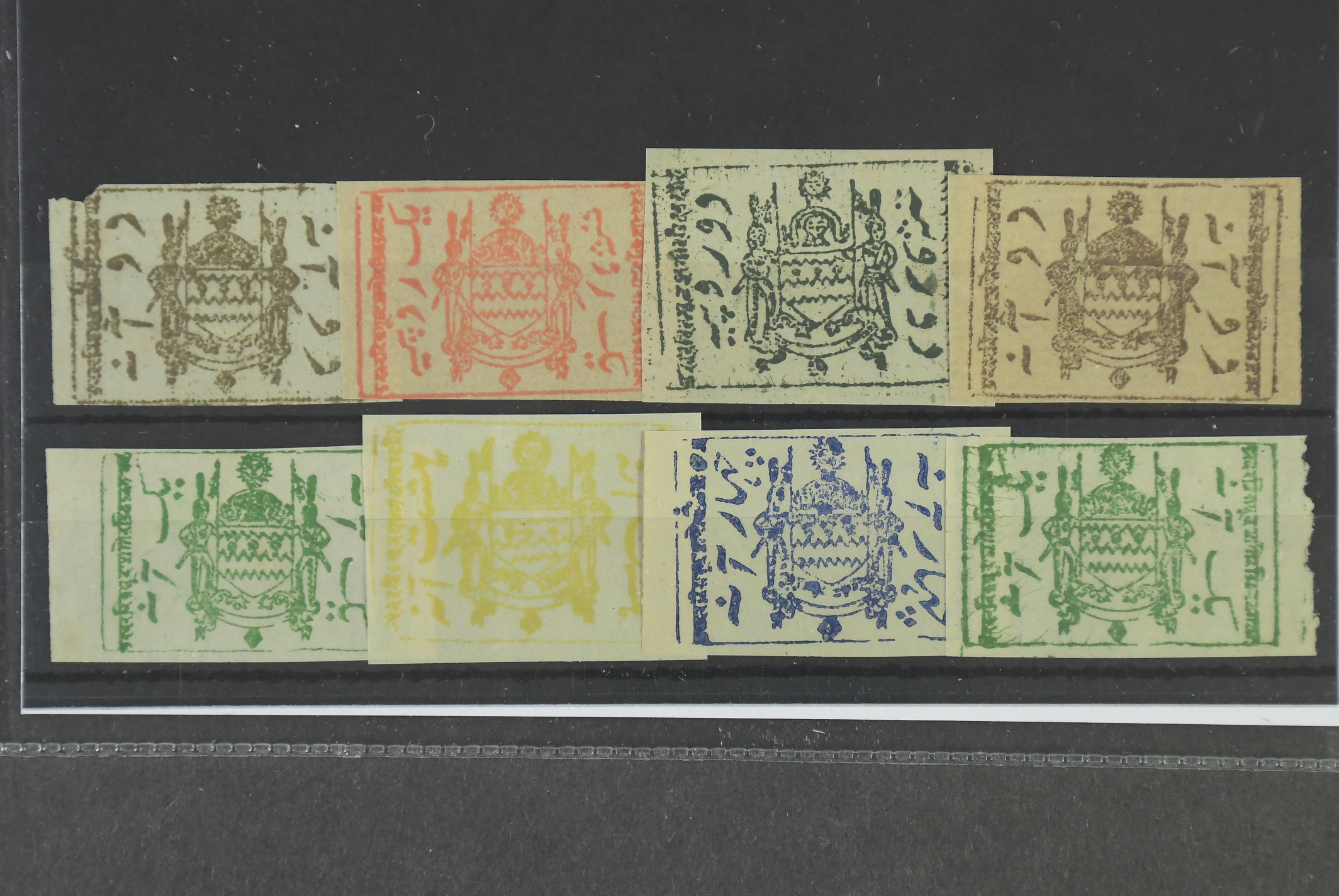 India, Jammu and Kashmir. Telegraph stamps Michel T1–8 (★), 1884–87 short set missing the two most expensive stamps (8). EUR SG 41,5