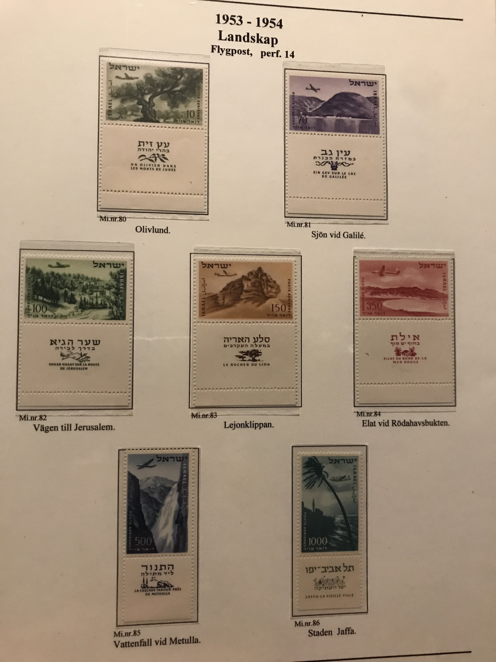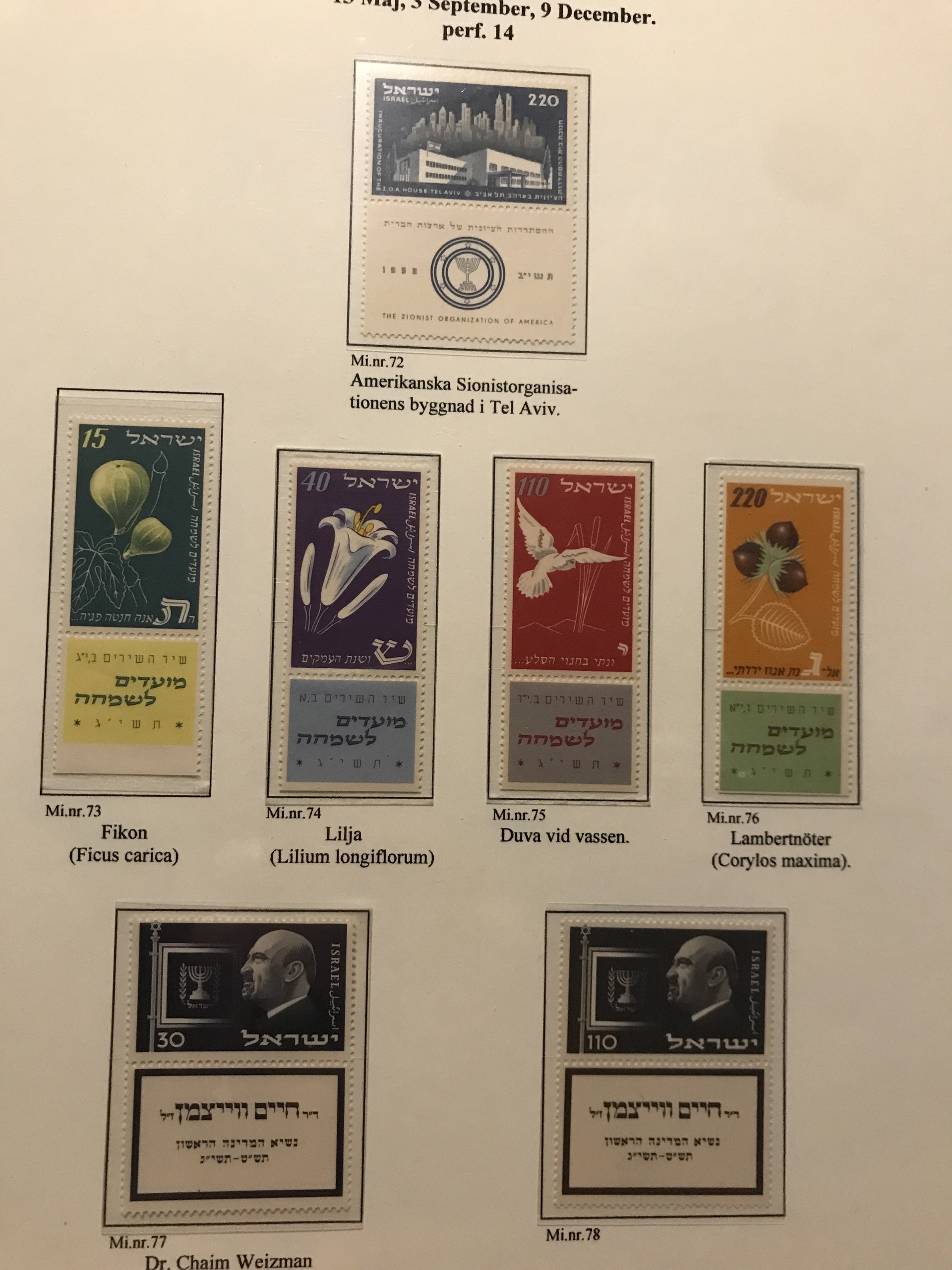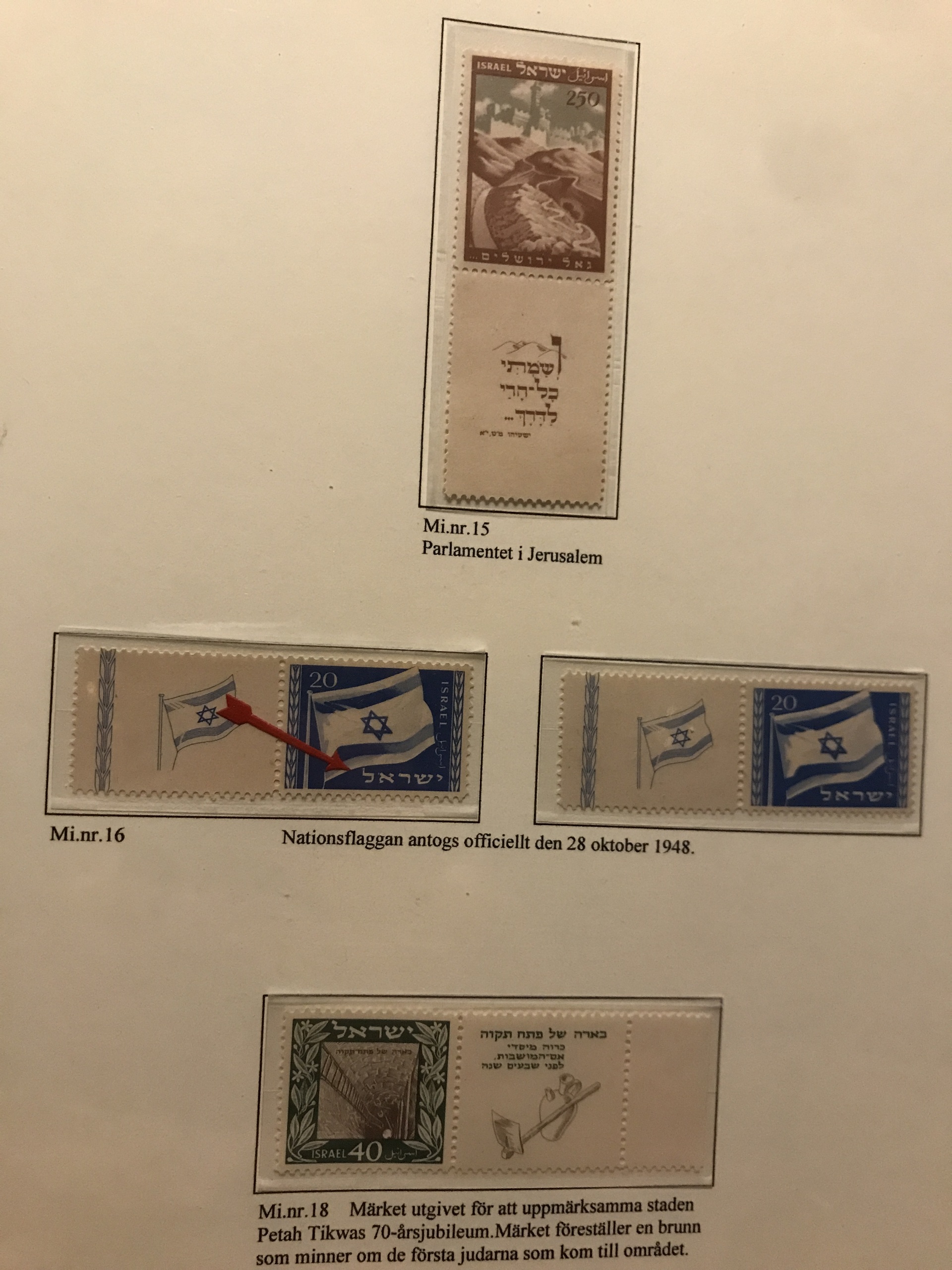 Israel. ★★. Apparently complete collection 1948–1980. Mi1–9 used, otherwise ** incl. many early issues with half tabs and some full tabs, se-tenant gutter pairs, two s/s1 incl. one used. Please see a selection of scans at www.philea.se.