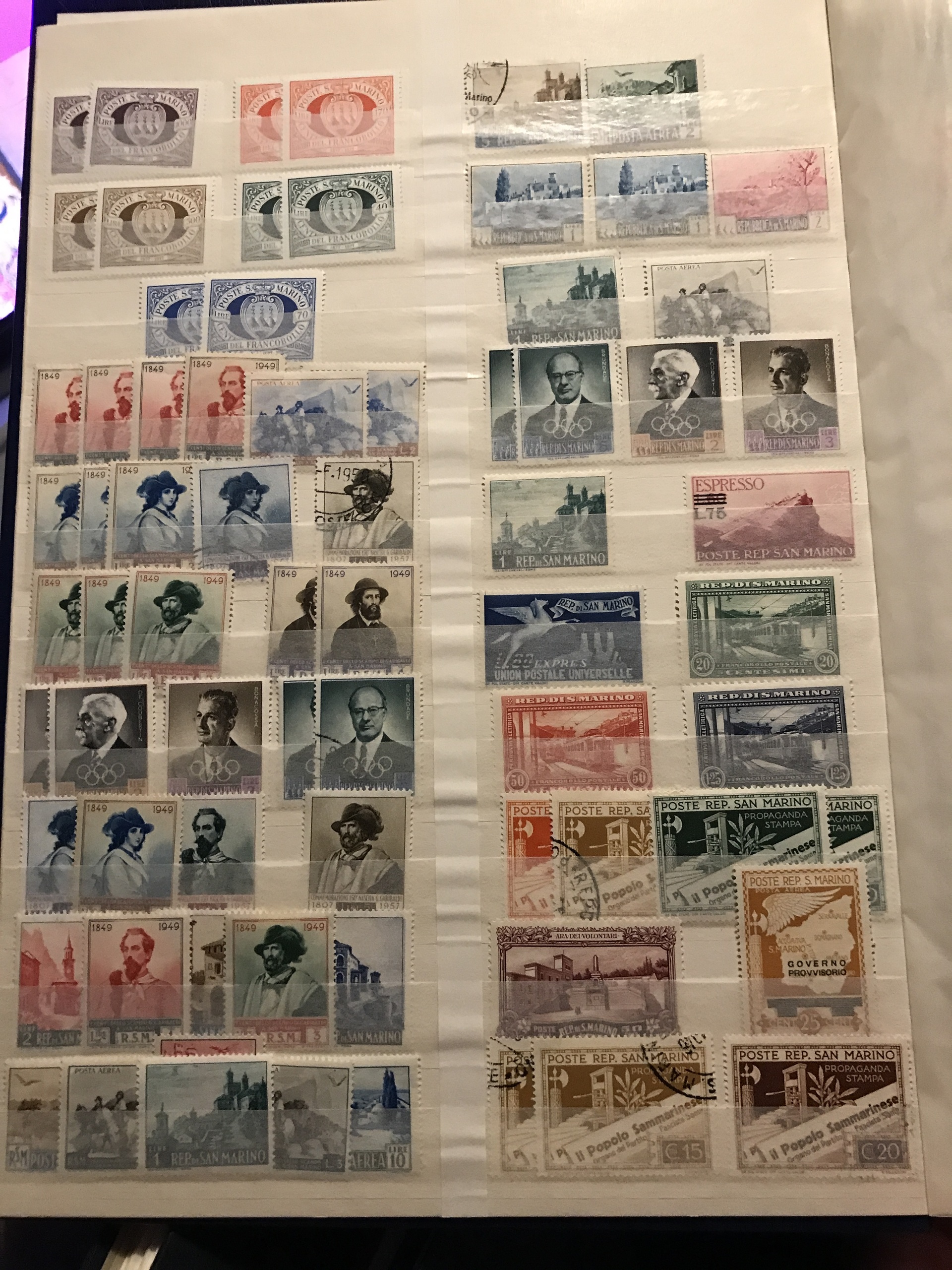 Italy. ★★/★/⊙. Accumulation classic–modern in seven albums incl. Vatican City 1867–1979 in DAVO album, San Marino mostly **/* in Lindner album+ stockbook, old Italian states and colonies, back-of-the-book, Fiume, etc. Approx. 8 kg.
