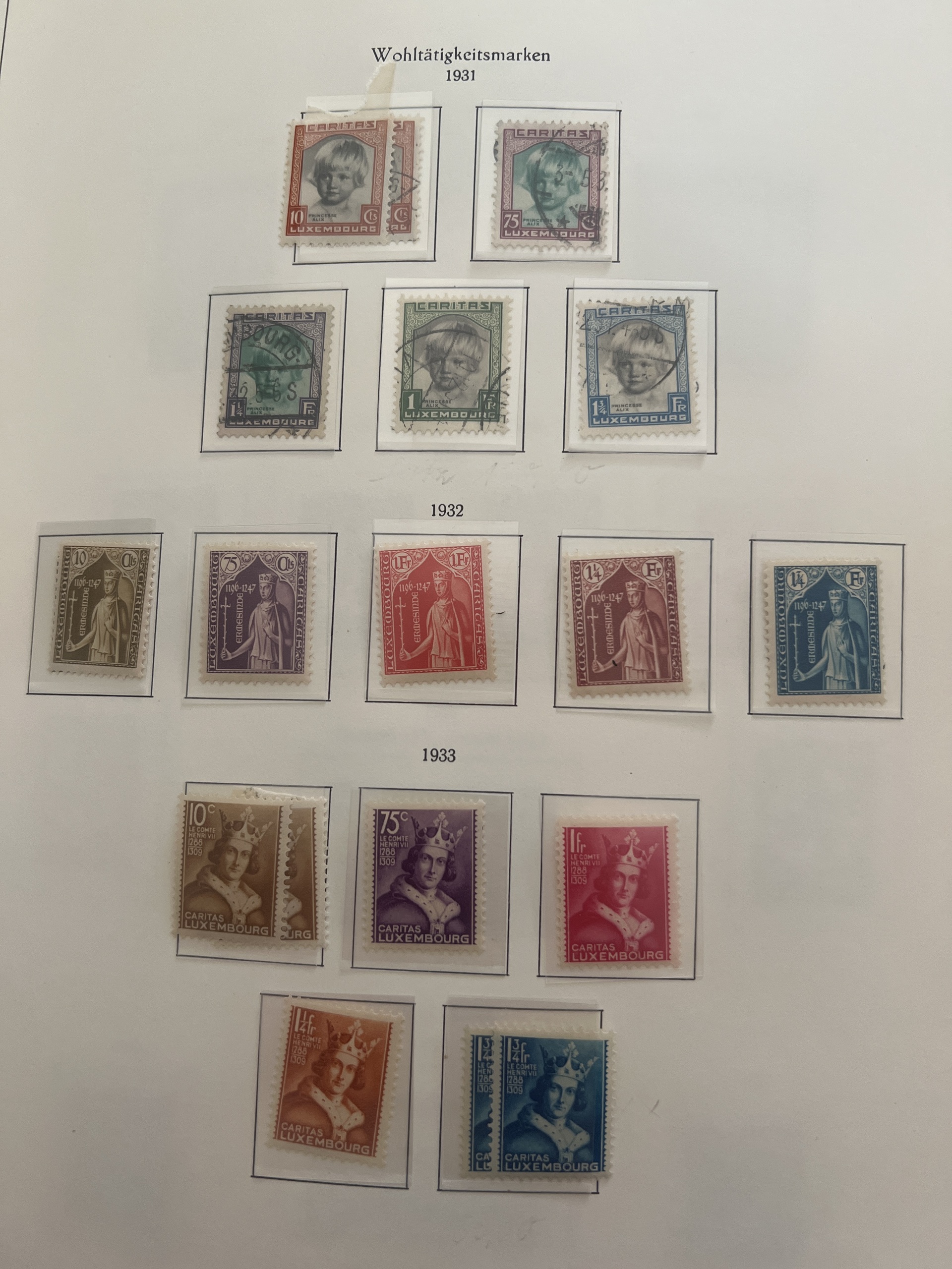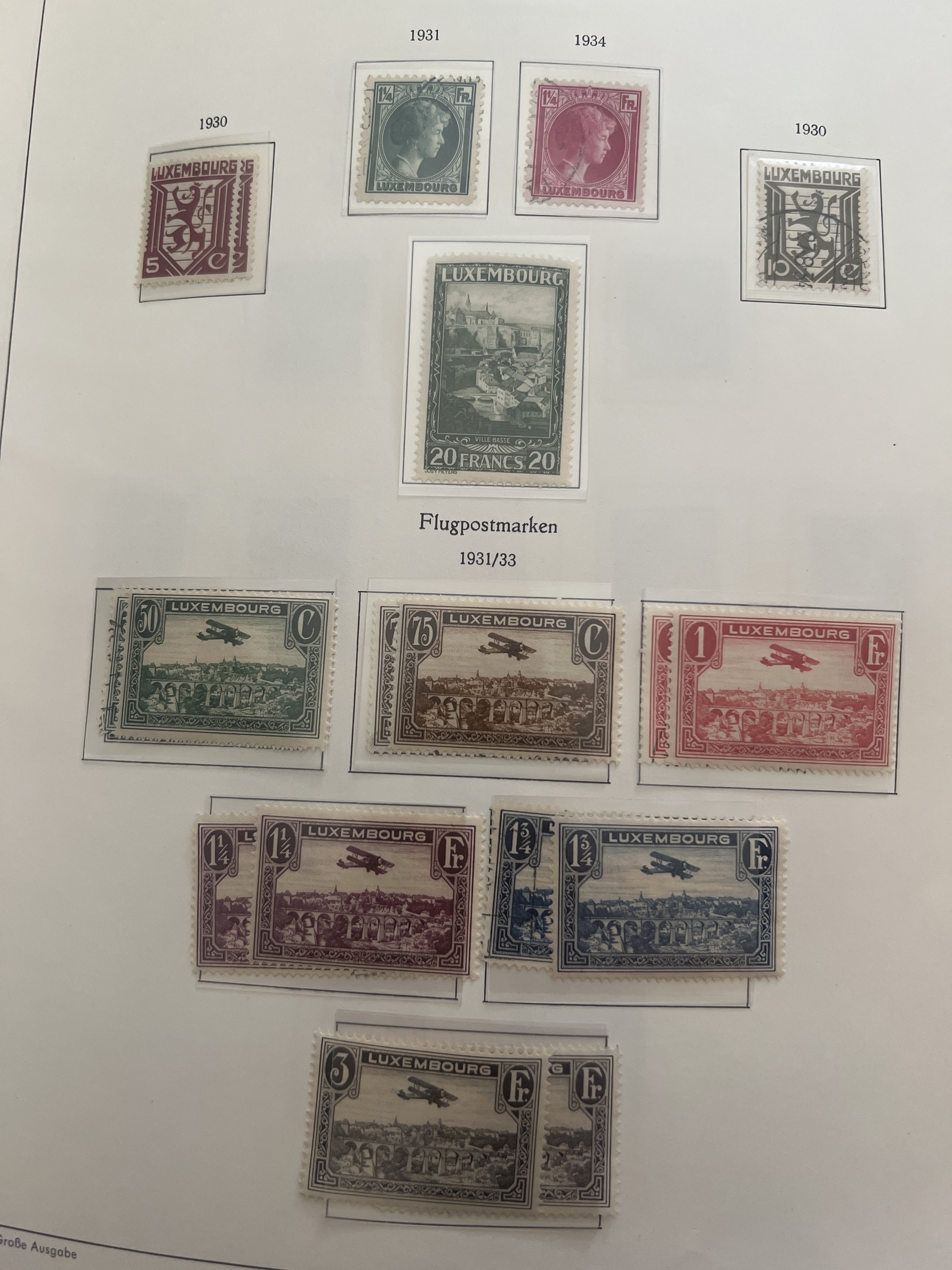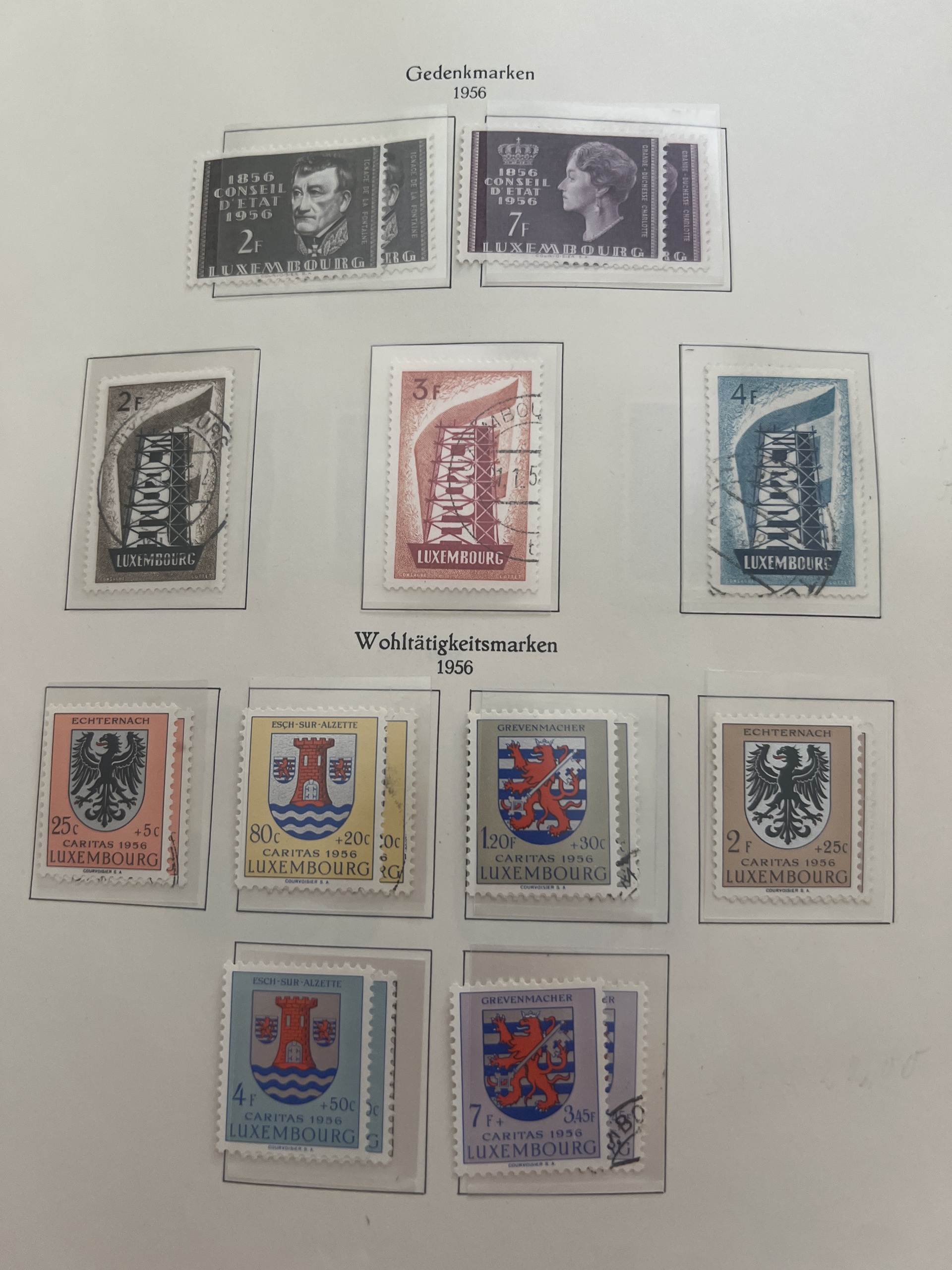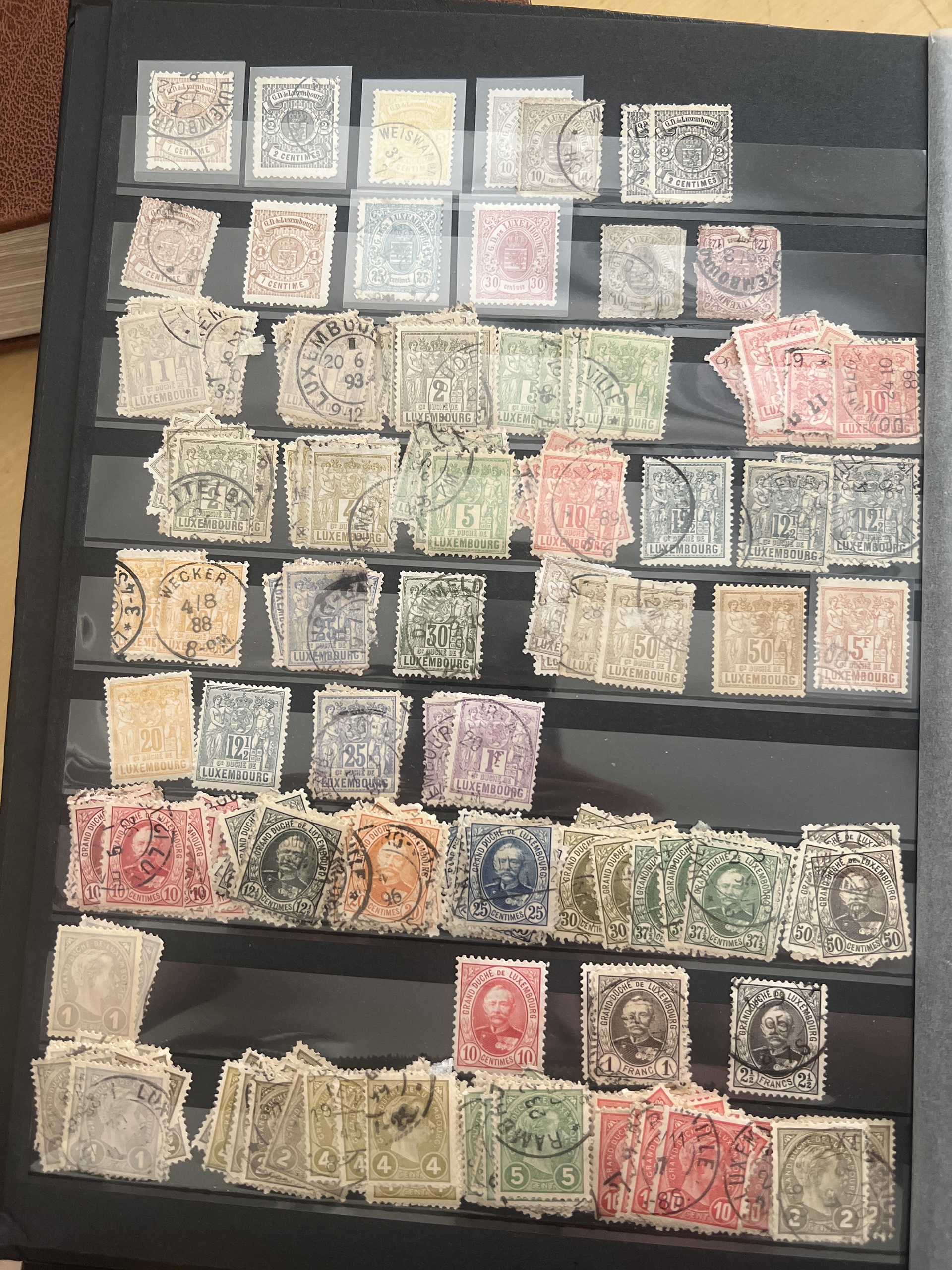 Luxembourg. Collection/accumulation ★★/★/⊙ 1852–2000 in two albums. Well filled Ka-Be album with plenty of better stamps and sets. Starts with a strong early part used in better quality than usual. From c1900 there is both mint and used and often both. From the late 30s most mint stamps are MNH. Looks complete from 1955 to the end with either used or mint (MNH). Second album is a duplicate stock with some better stamps and sets and a lot of stamps from the 1950s and onwards. Please see a selection of scans at www.philea.se. Mostly fine quality. Approx. 5 kg. (3000+)