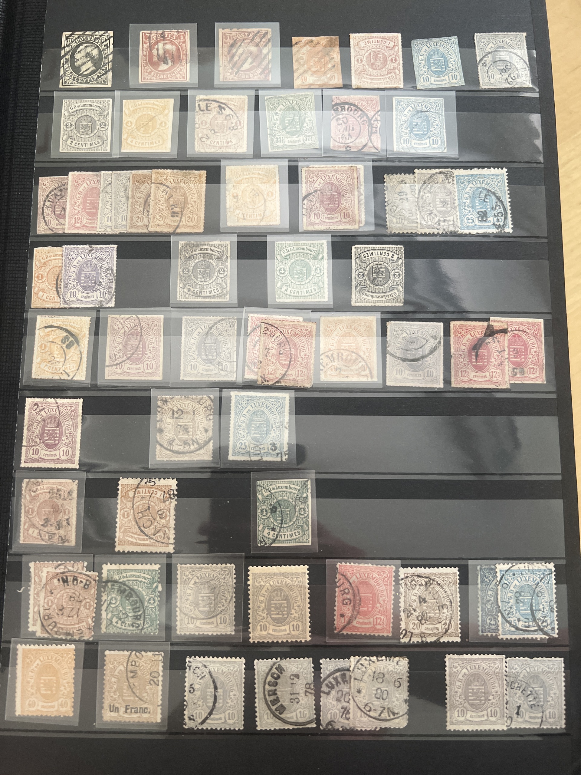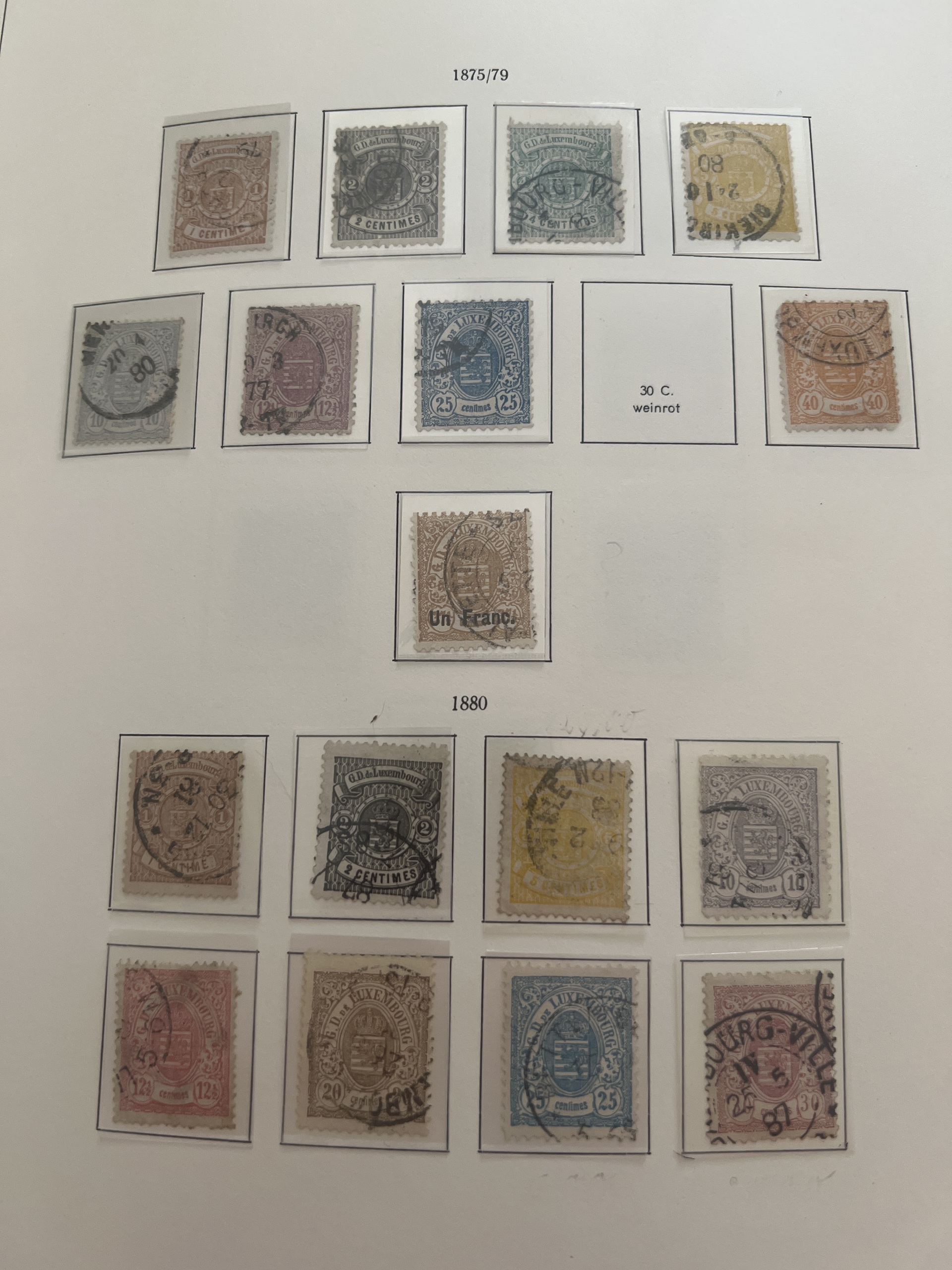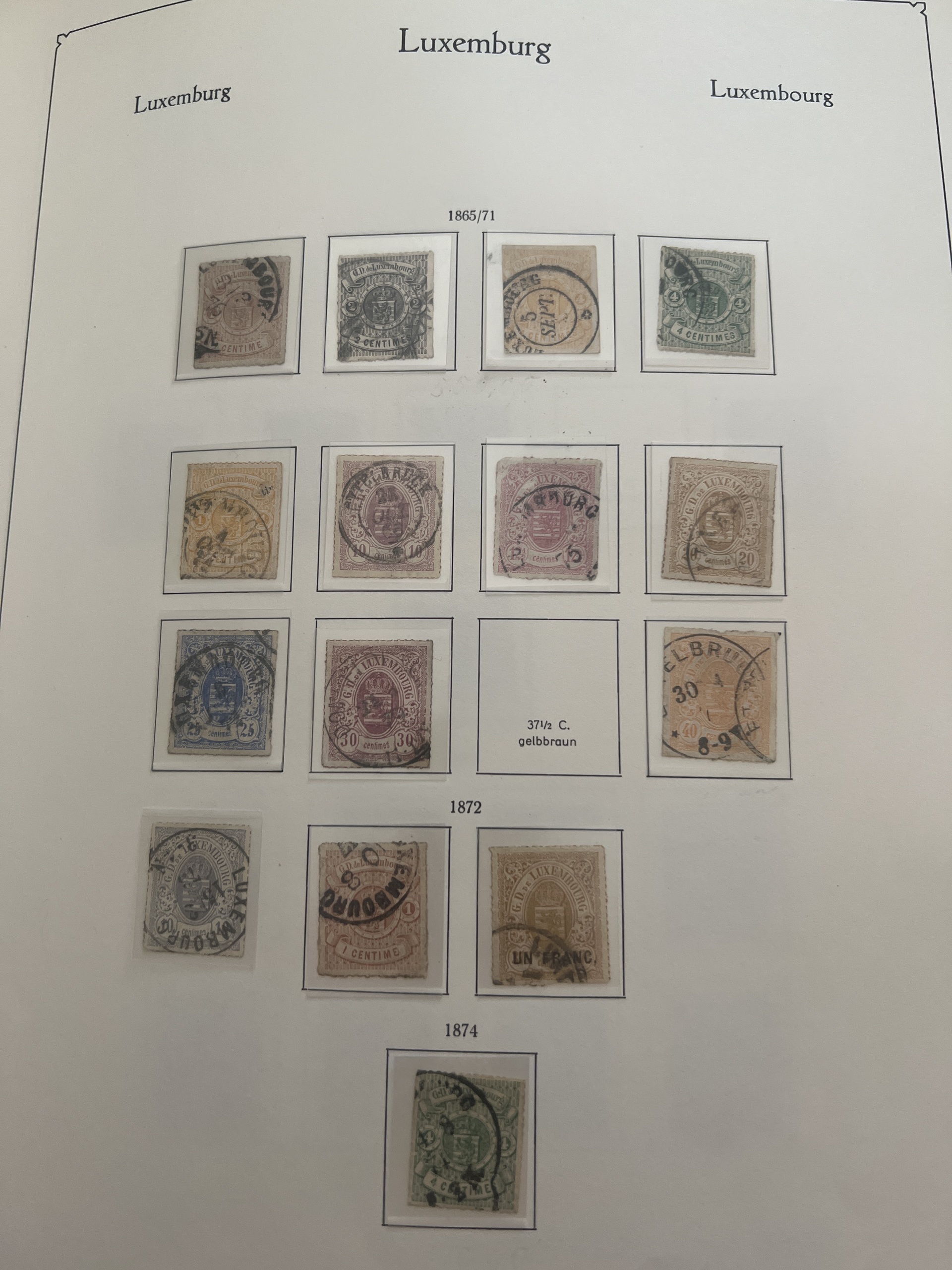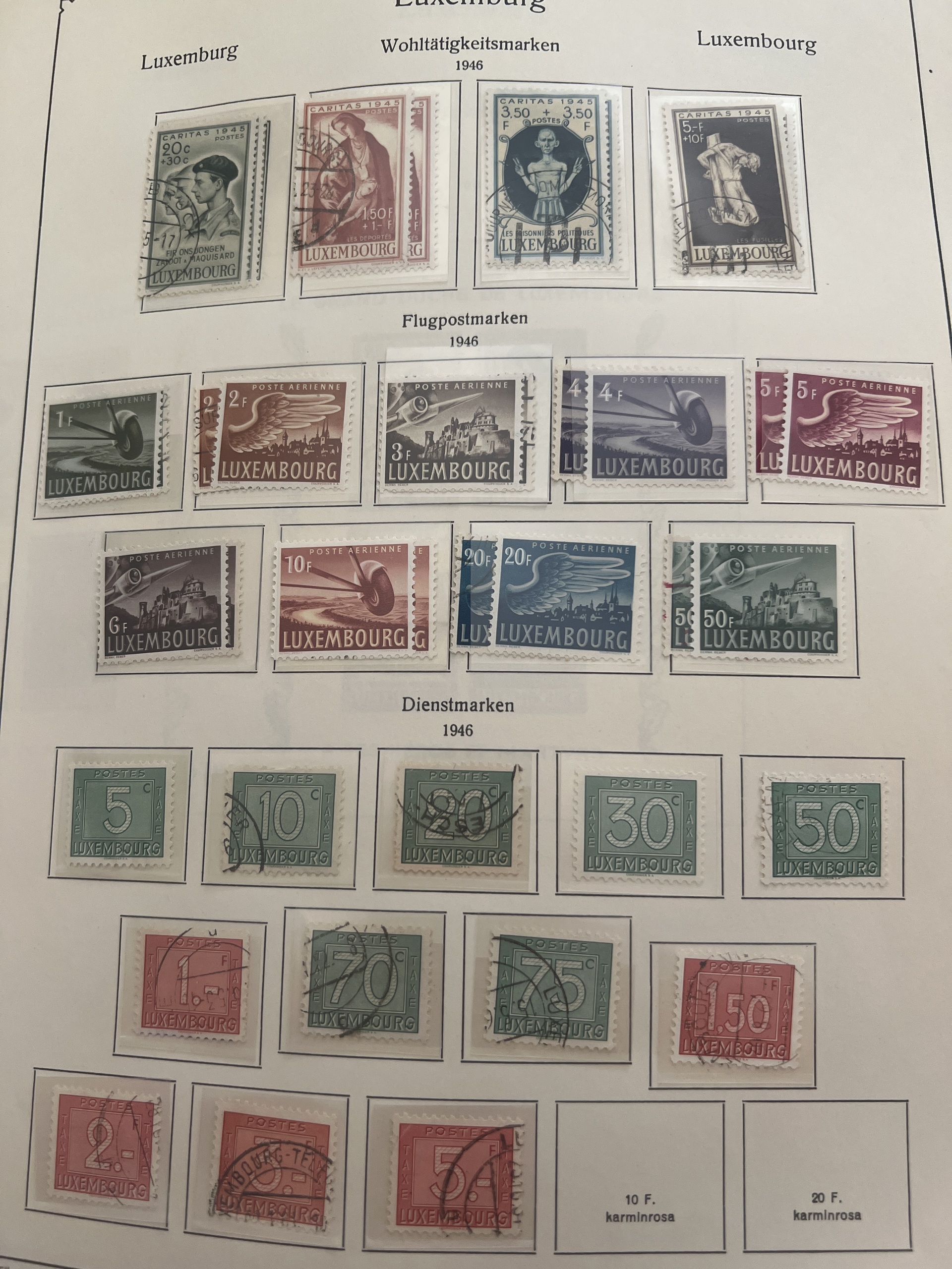 Luxembourg. Collection/accumulation ★★/★/⊙ 1852–2000 in two albums. Well filled Ka-Be album with plenty of better stamps and sets. Starts with a strong early part used in better quality than usual. From c1900 there is both mint and used and often both. From the late 30s most mint stamps are MNH. Looks complete from 1955 to the end with either used or mint (MNH). Second album is a duplicate stock with some better stamps and sets and a lot of stamps from the 1950s and onwards. Please see a selection of scans at www.philea.se. Mostly fine quality. Approx. 5 kg. (3000+)