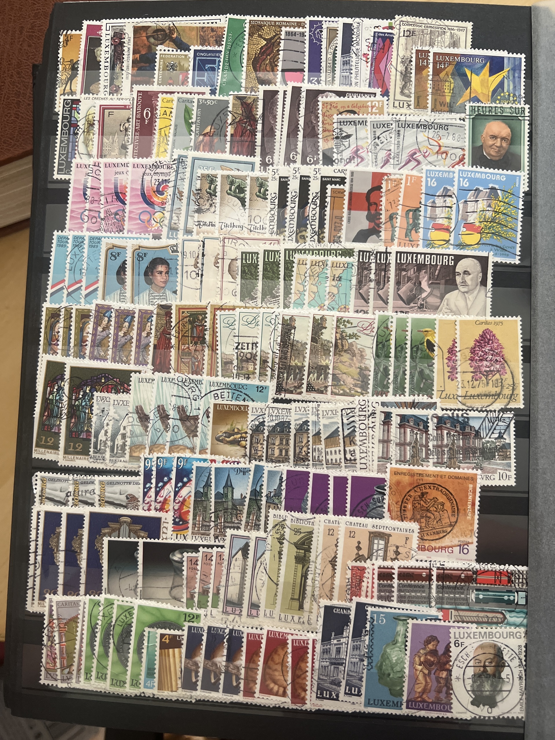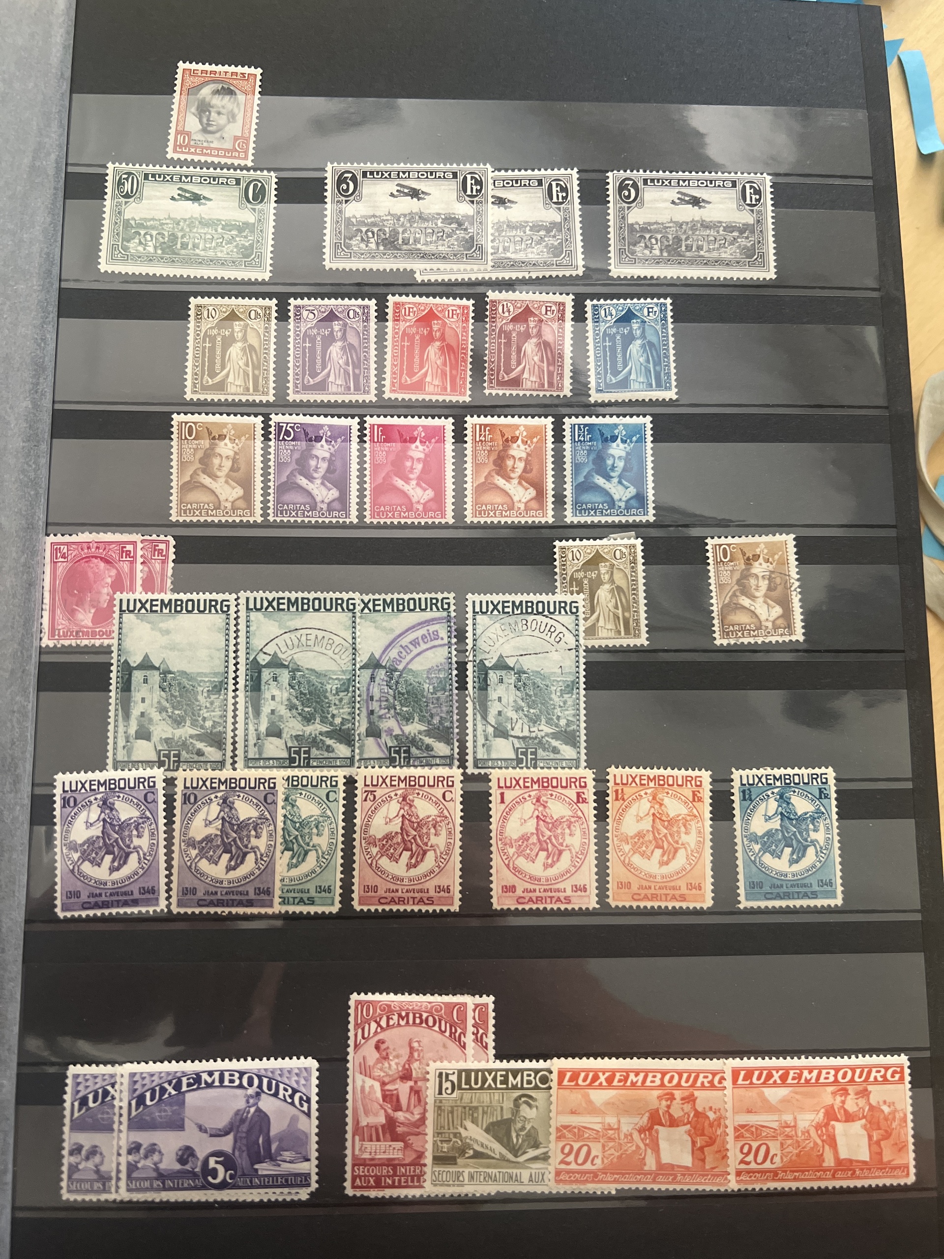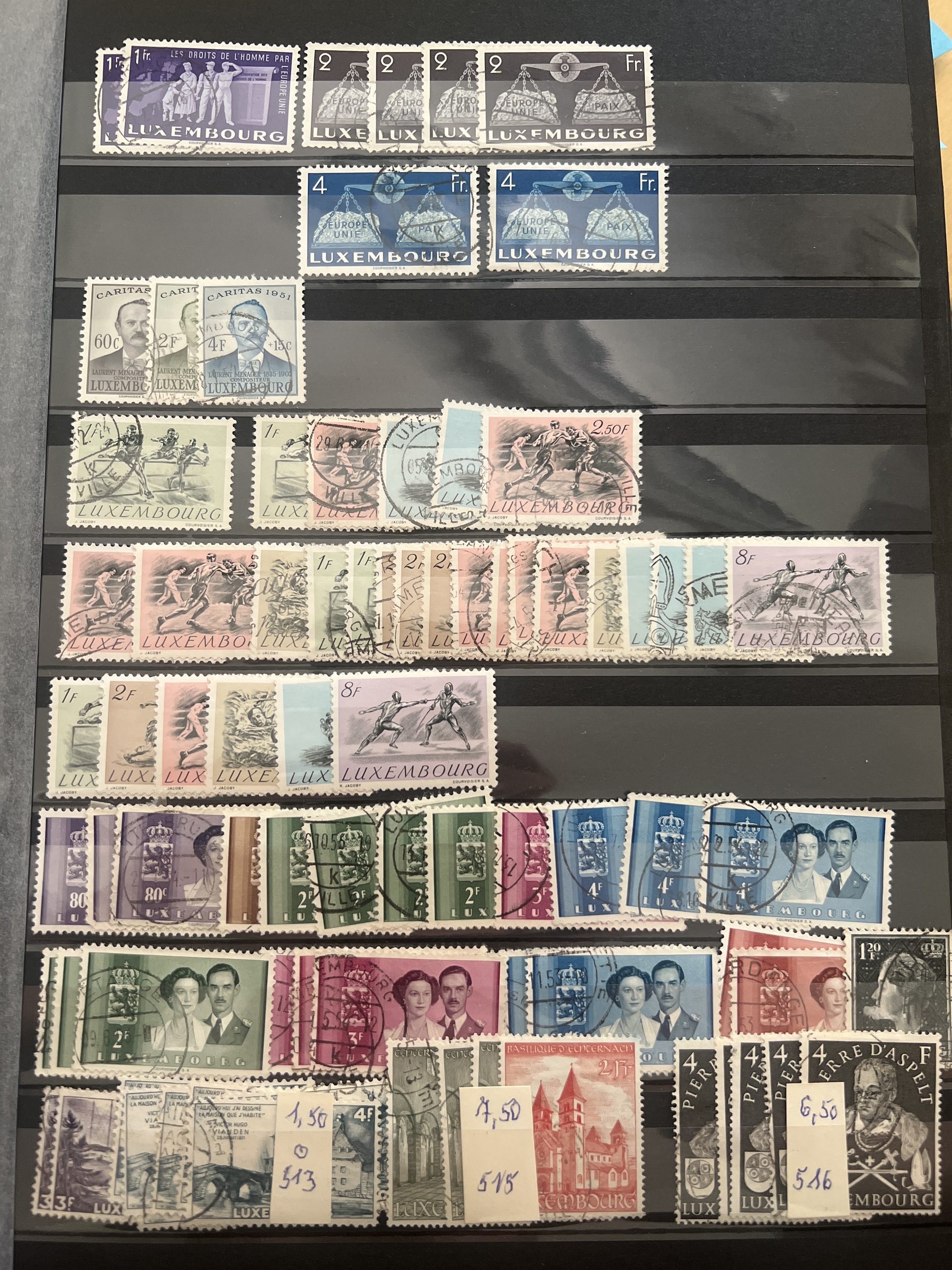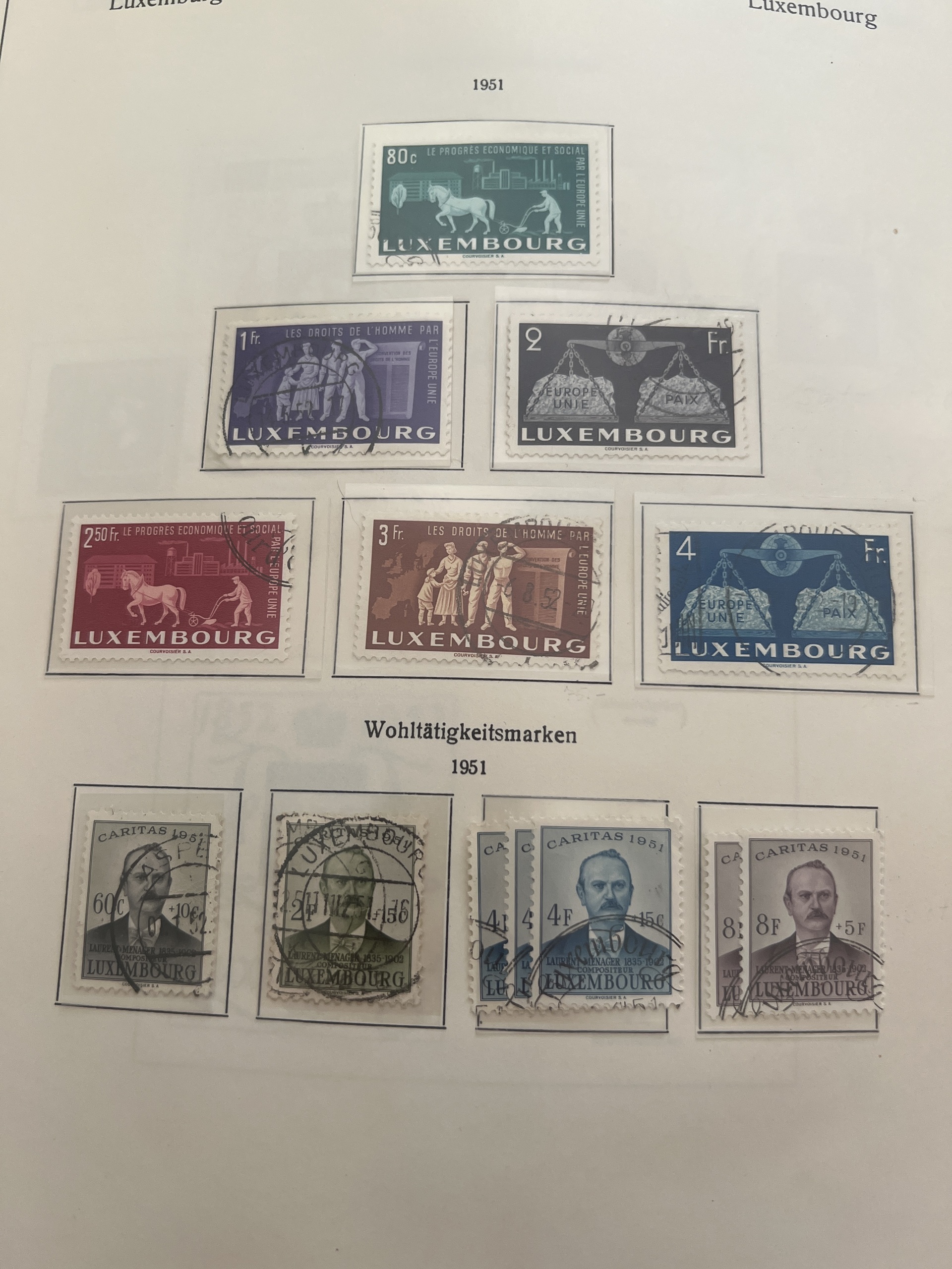 Luxembourg. Collection/accumulation ★★/★/⊙ 1852–2000 in two albums. Well filled Ka-Be album with plenty of better stamps and sets. Starts with a strong early part used in better quality than usual. From c1900 there is both mint and used and often both. From the late 30s most mint stamps are MNH. Looks complete from 1955 to the end with either used or mint (MNH). Second album is a duplicate stock with some better stamps and sets and a lot of stamps from the 1950s and onwards. Please see a selection of scans at www.philea.se. Mostly fine quality. Approx. 5 kg. (3000+)
