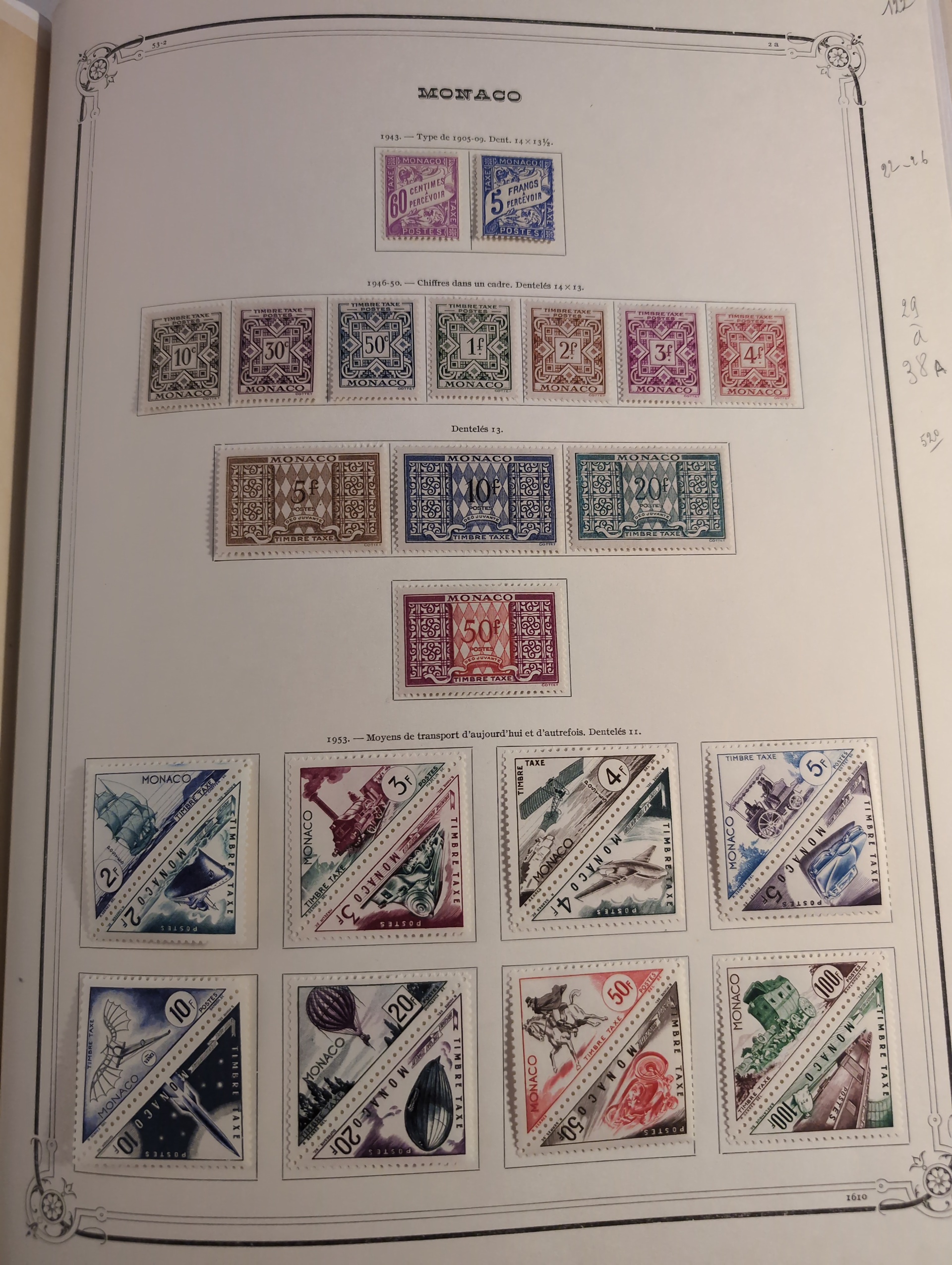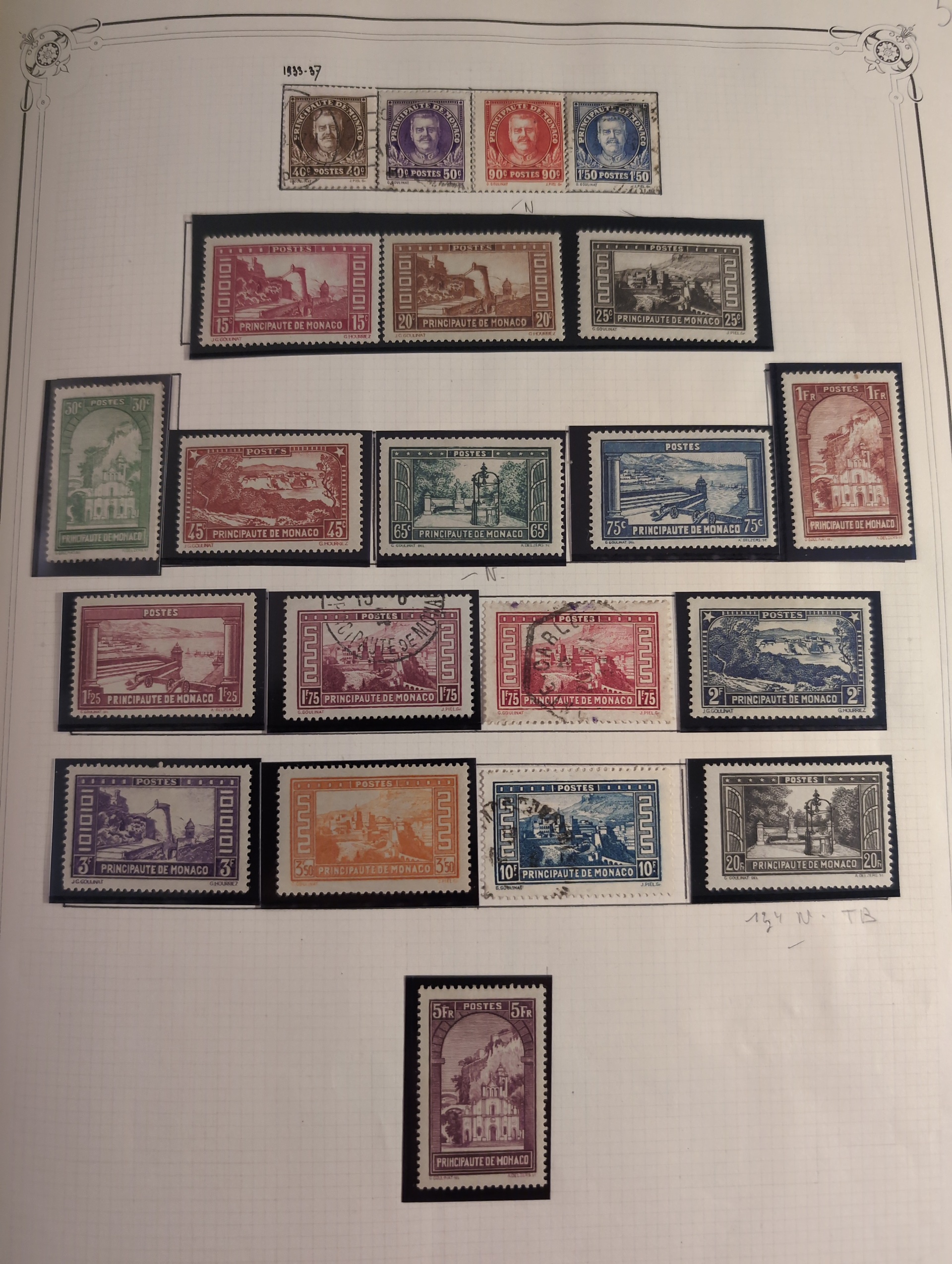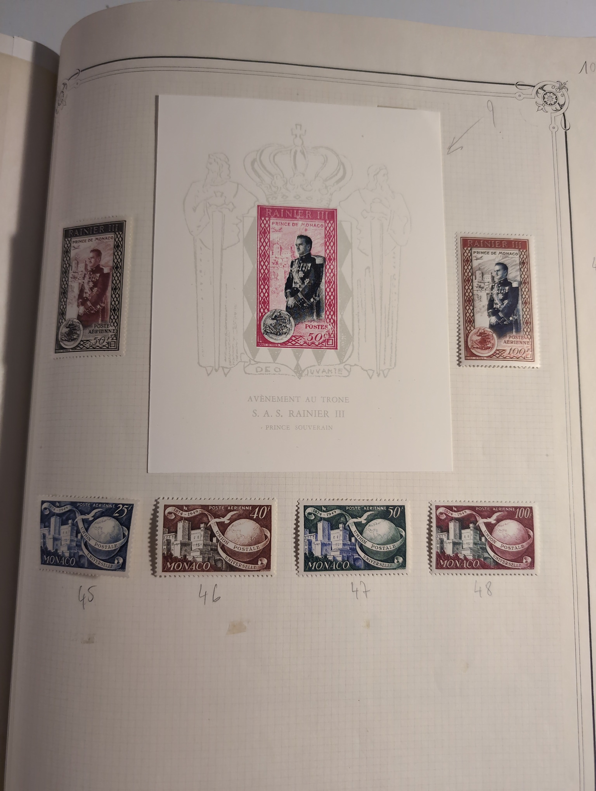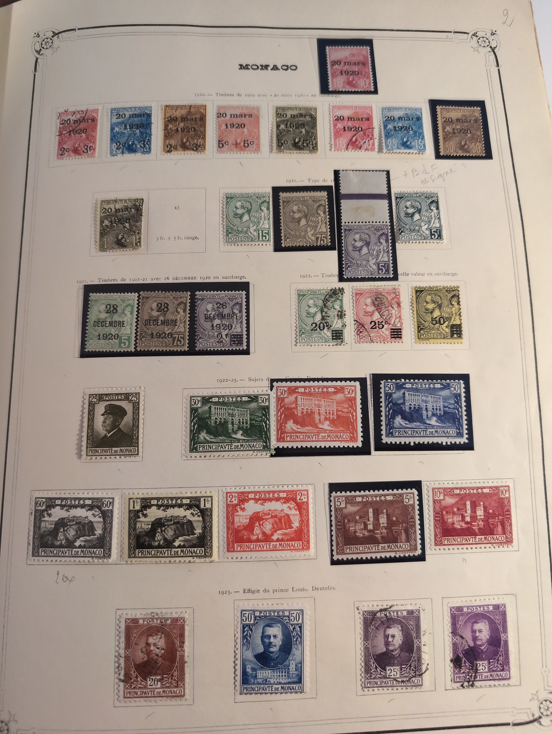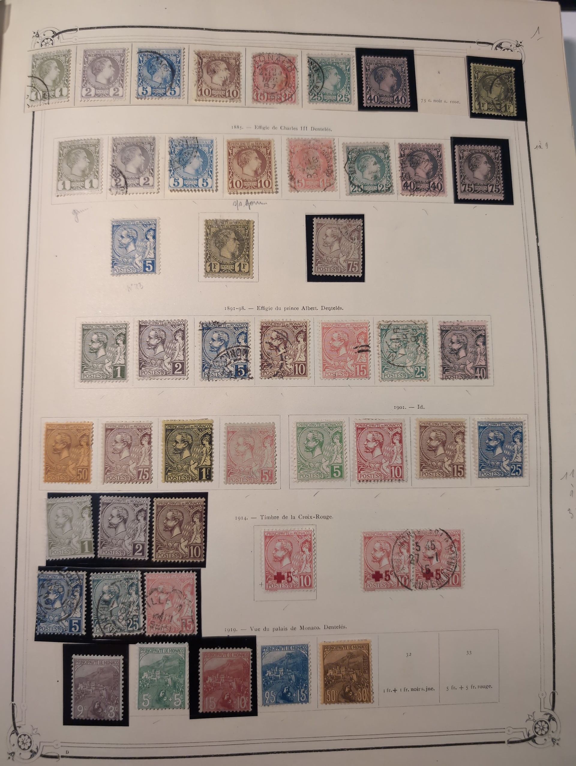 Monaco. Collection ★★/★ 1885–1982 in large Y&T album. Very wellfilled collection with a good classic part with 1885 up to 1f used (2) and 75c mint. 1891 to 5fr mint (2), 1919 to 50c, 1920 to 50c mint and 1fr cto. 1920 5fr MNH (light gum crease) from 1942 and onwards very complete missing some better Air mail and some souvenir sheets. (Red cross sheets are not included) Good section back of the book with pre-cancels etc. Please see a selection of scans at www.philea.se. Mostly fine quality. (1500+)