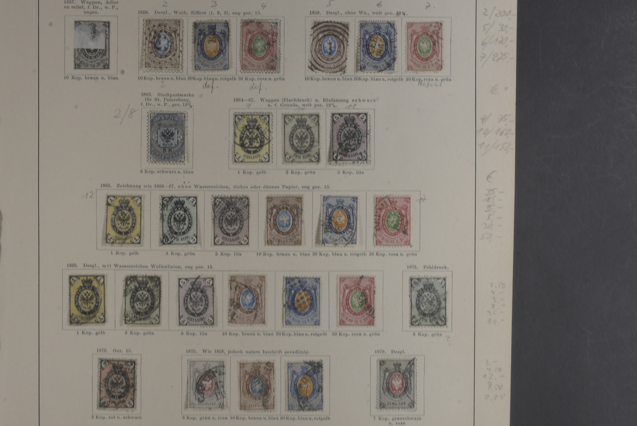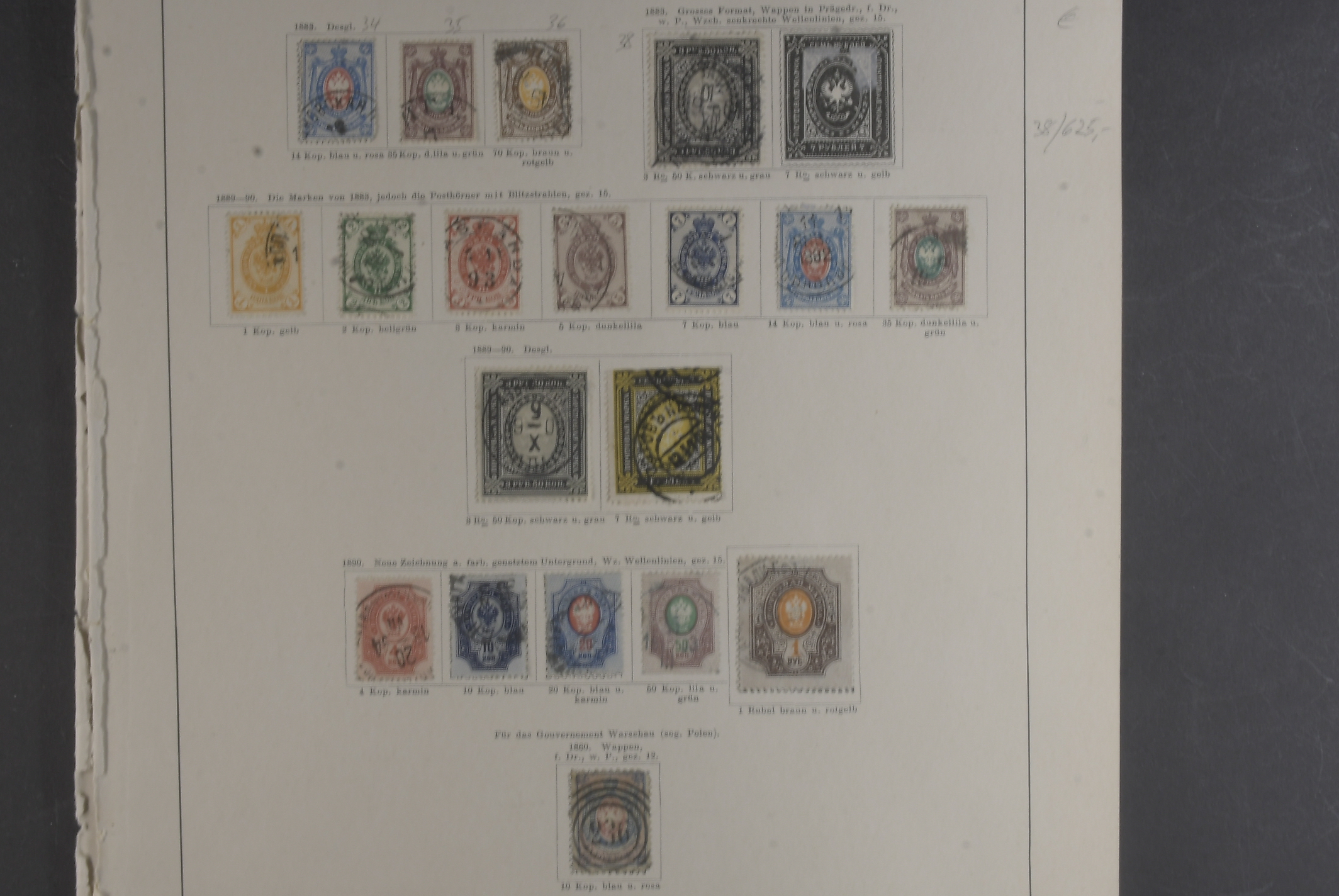 Russia. Collection used 1858-90 on three old leaves. Some better. Also P.O. in Levant. The entire lot is presented at www.philea.se. Mixed quality.