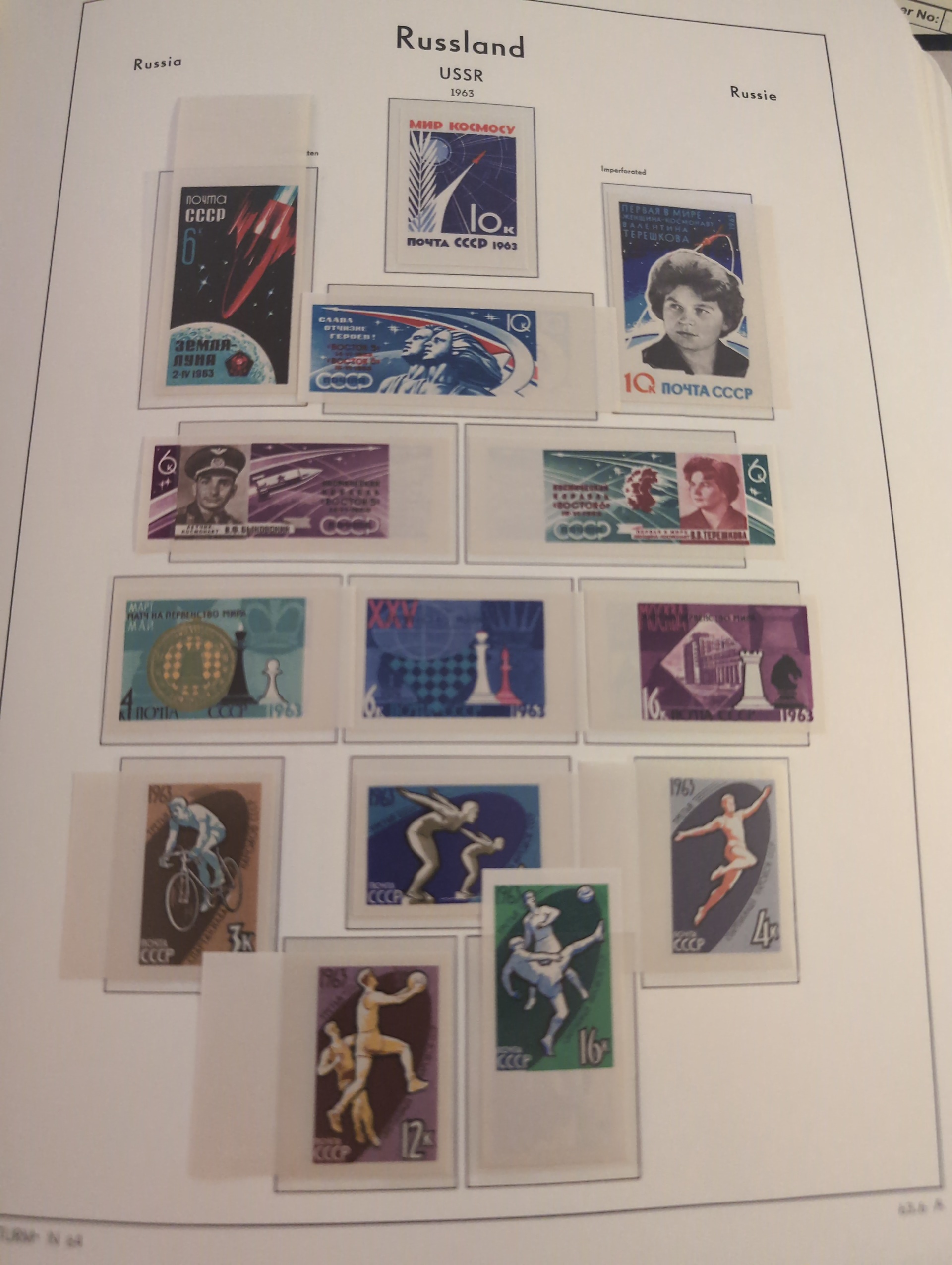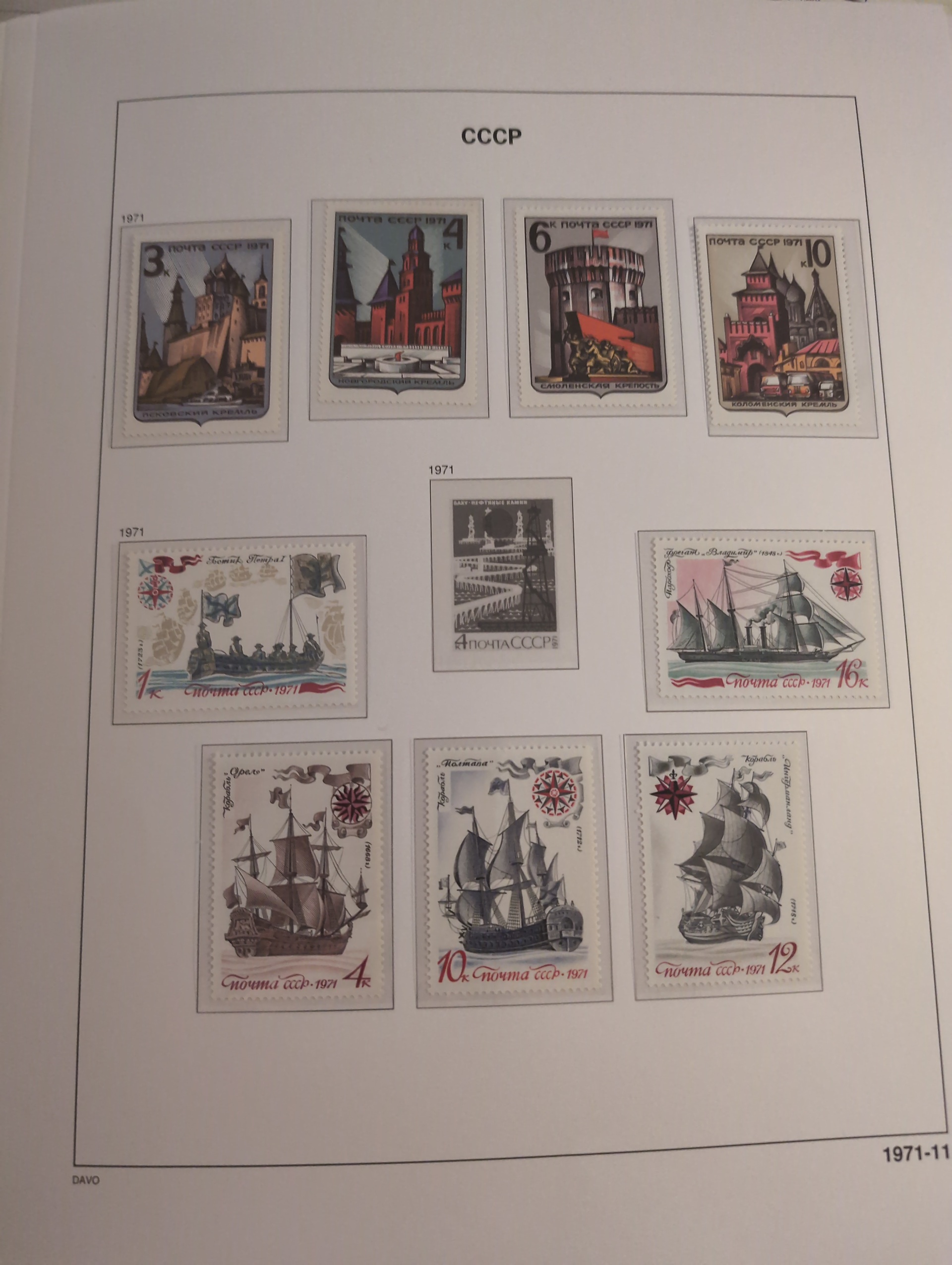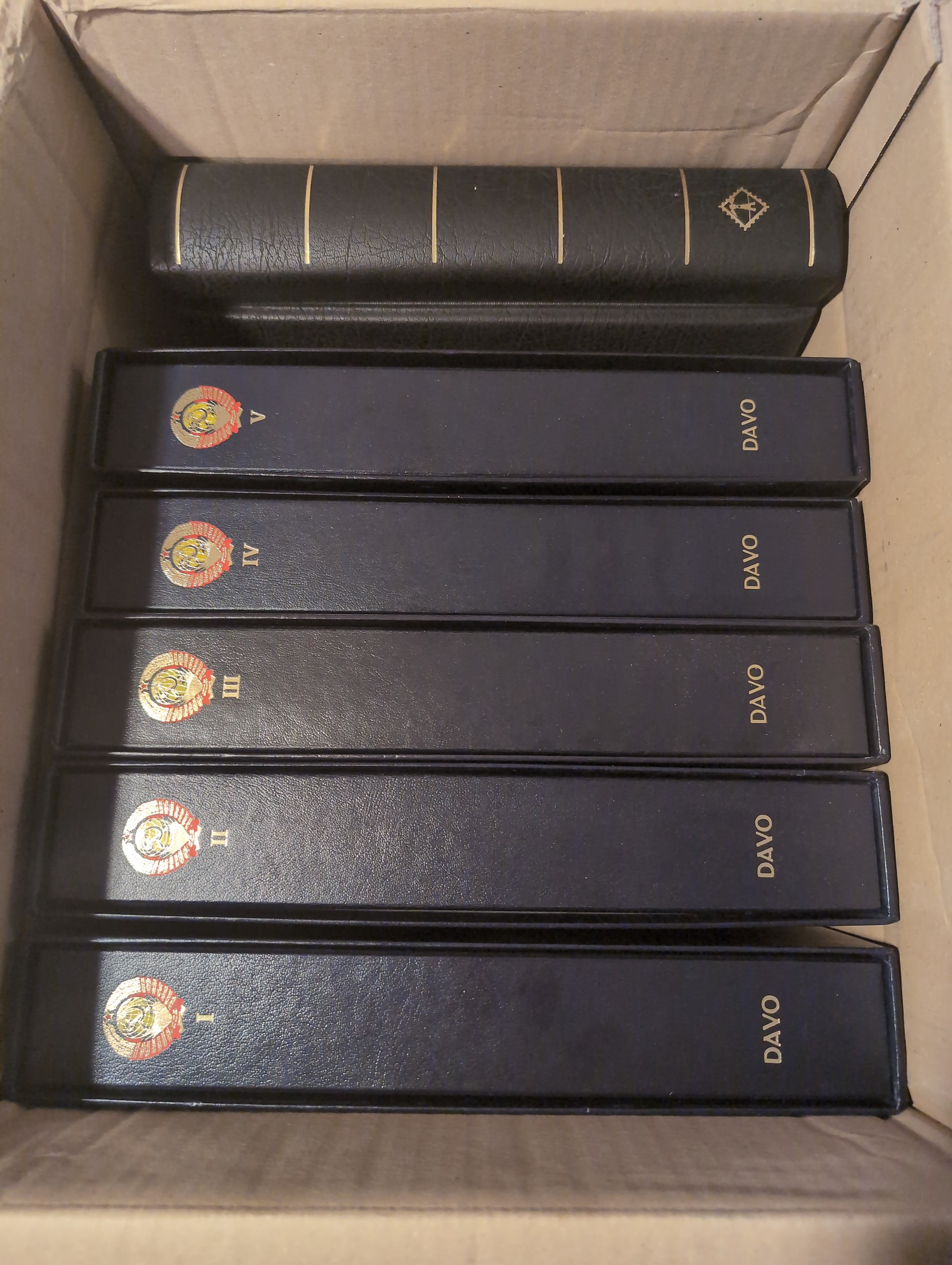 Soviet Union. Collection ★★ 1960–2003 in box. 1960–1969 in Leuchturm album, 1970–2003 in five nice DAVO albums, all with mounts. About 50 % filled albums. A good start to complete the USSR collection. Please see a selection of scans at www.philea.se. Fine quality. Approx. 17 kg. (1000s)