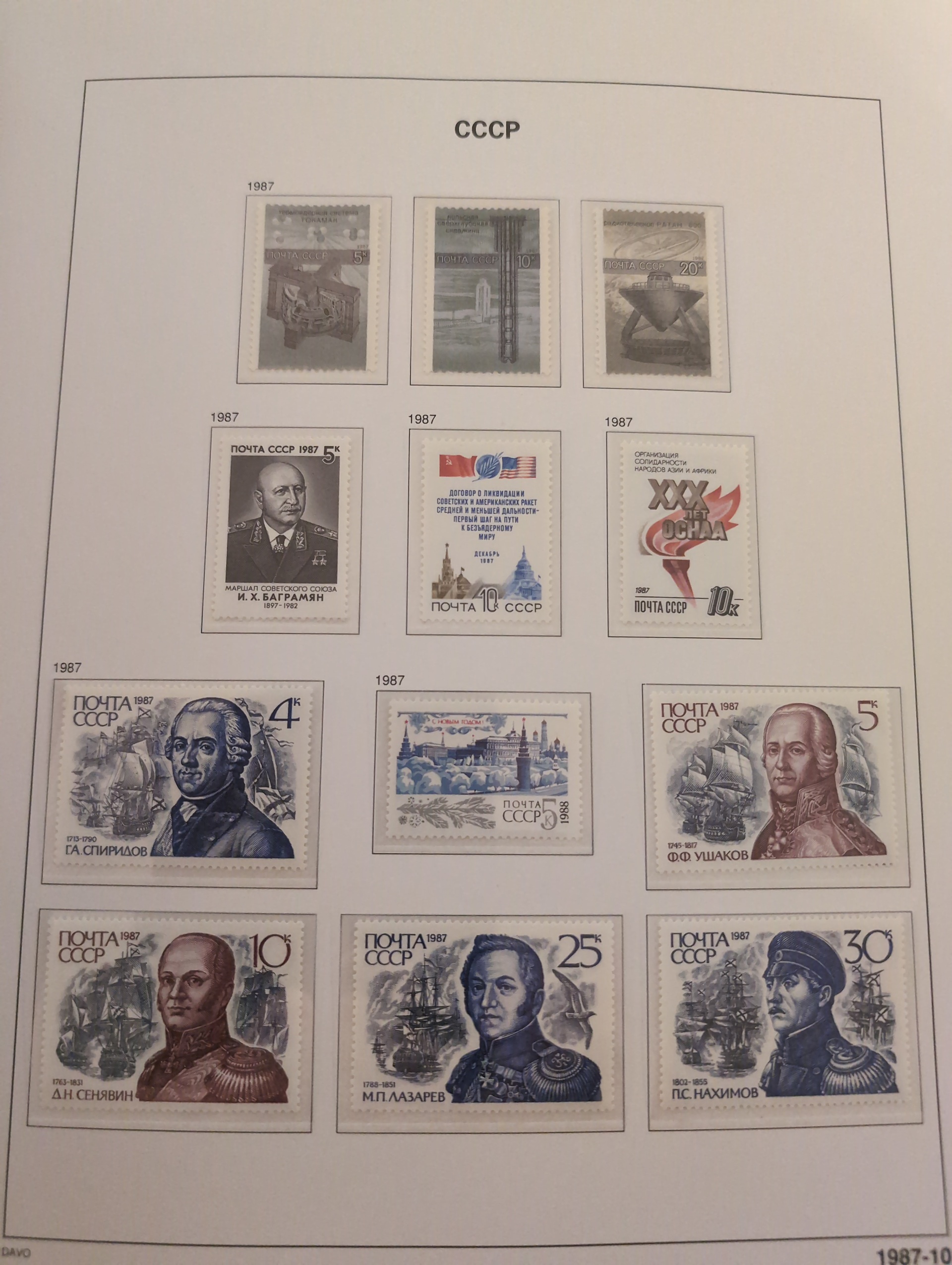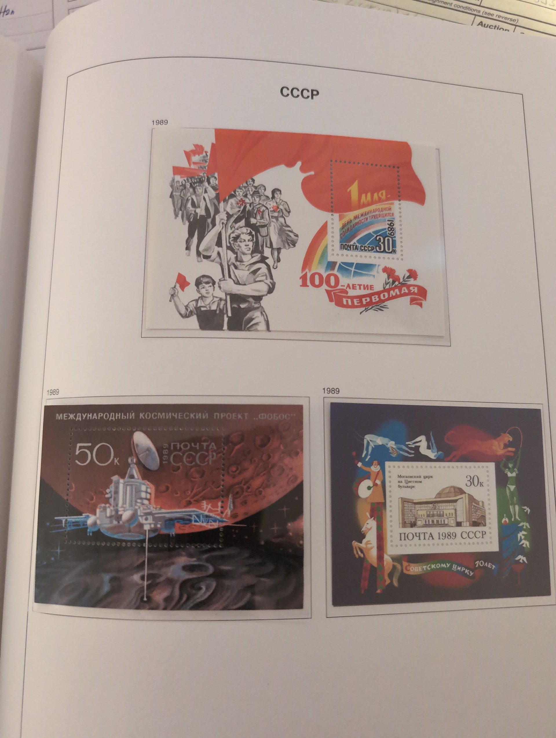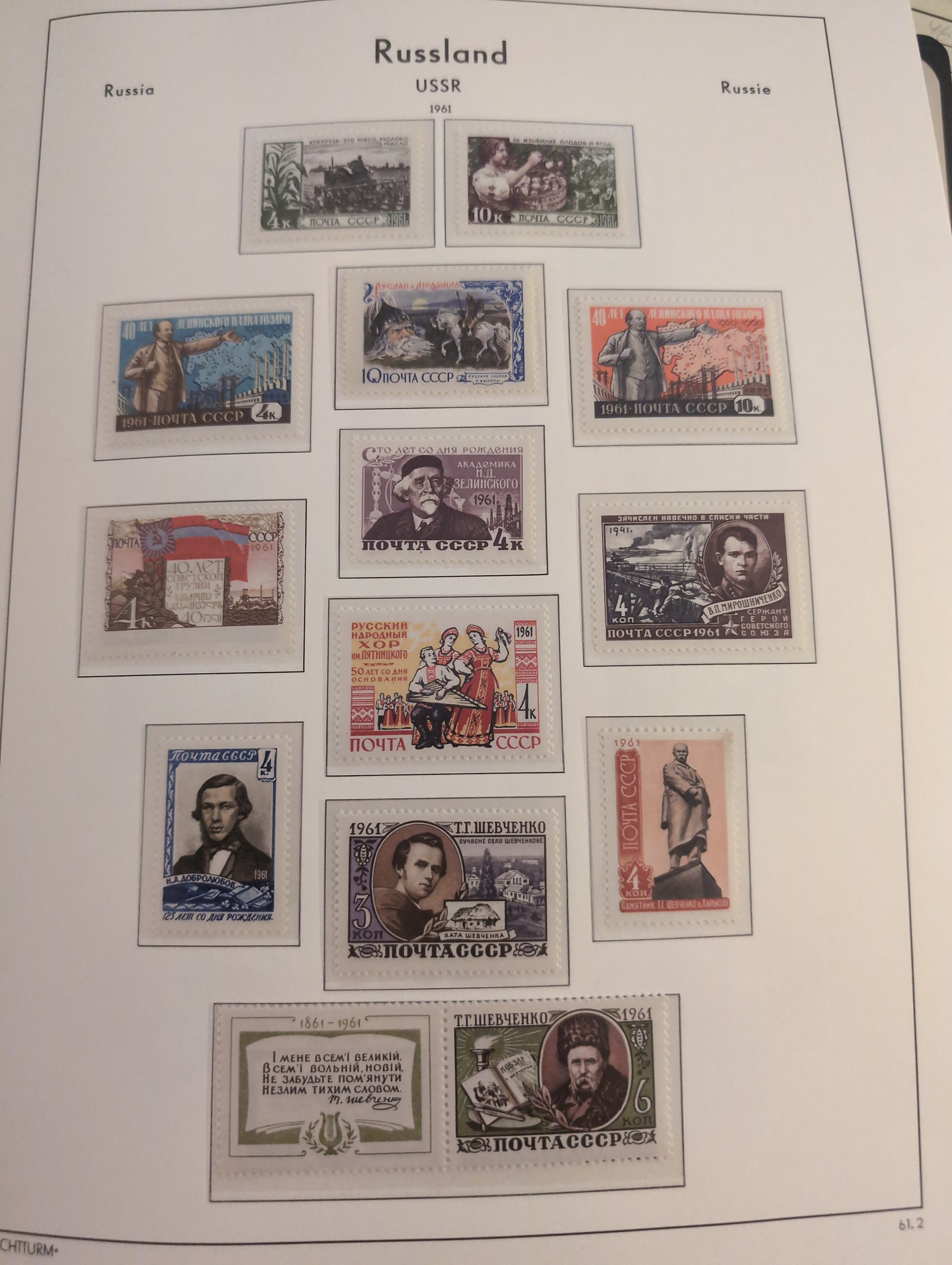 Soviet Union. Collection ★★ 1960–2003 in box. 1960–1969 in Leuchturm album, 1970–2003 in five nice DAVO albums, all with mounts. About 50 % filled albums. A good start to complete the USSR collection. Please see a selection of scans at www.philea.se. Fine quality. Approx. 17 kg. (1000s)
