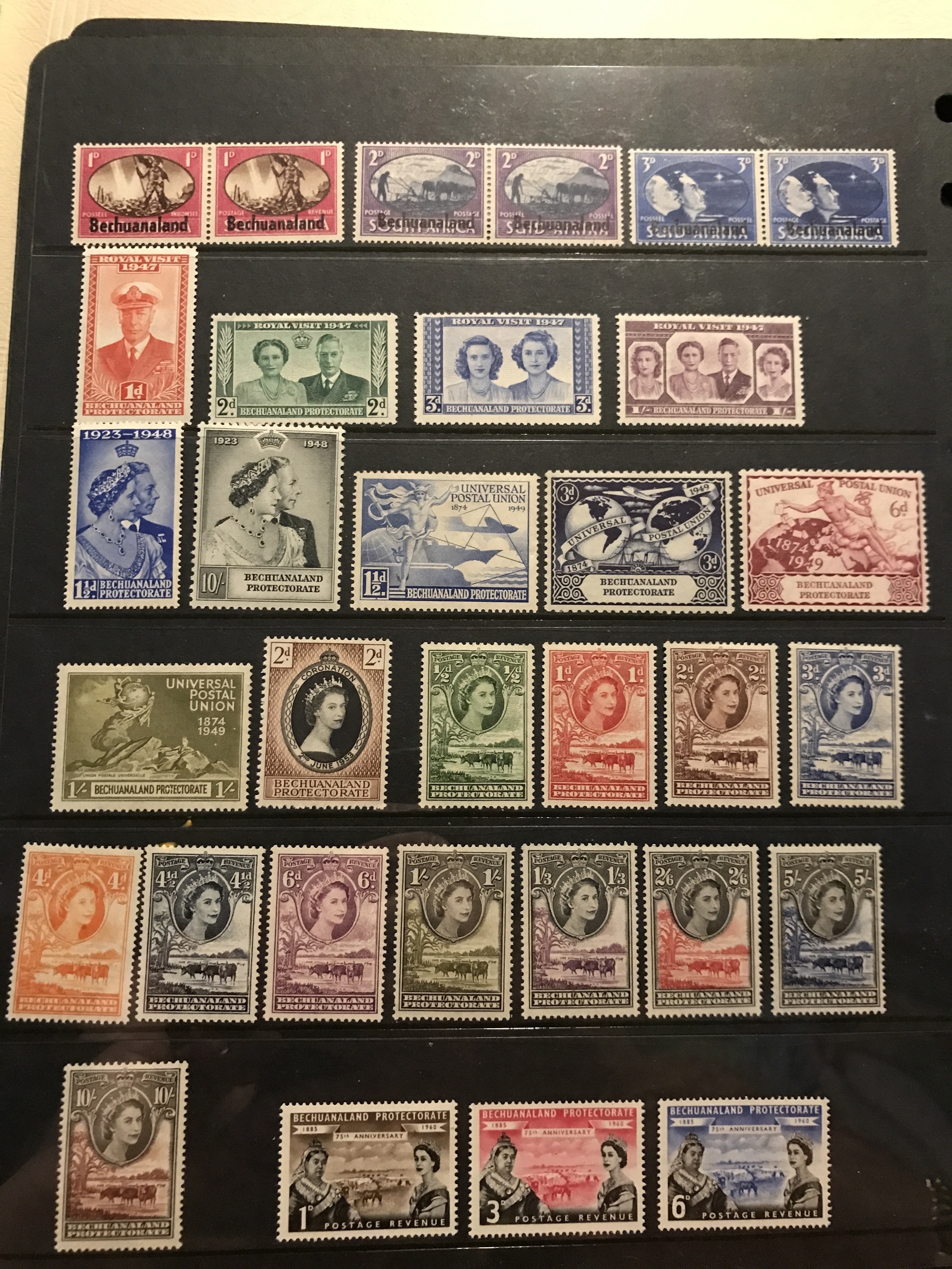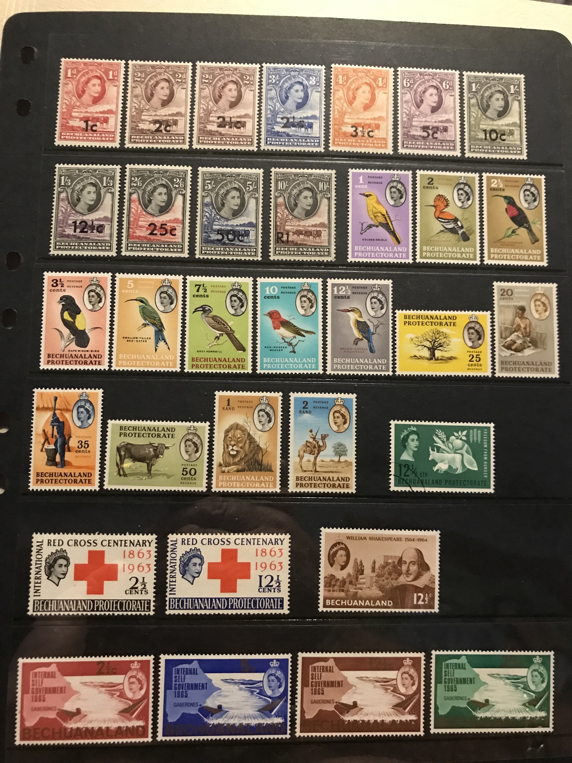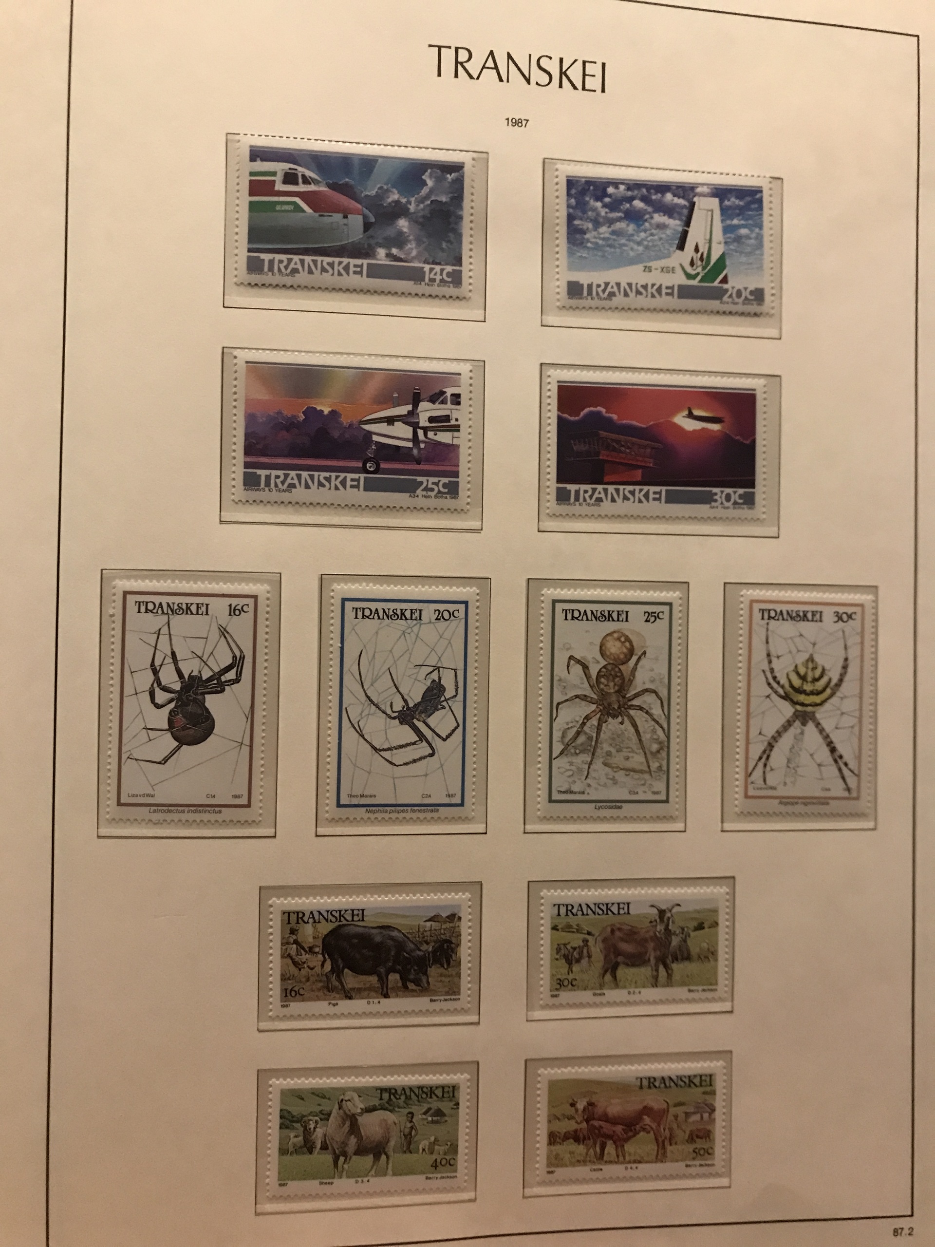 South Africa. ★★. Collections Bophuthatsvana, Ciskei, Transkei and Venda until 1987 in Leuchtturm album with slip case, Mi about 610 Euro. Also Bechuanaland mainly * 1932-66 cpl Mi82-188. Please see a selection of scans at www.philea.se.