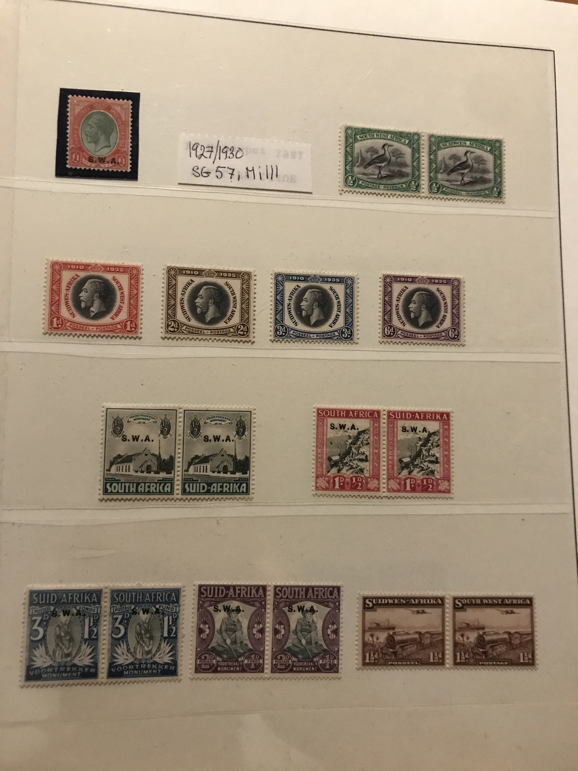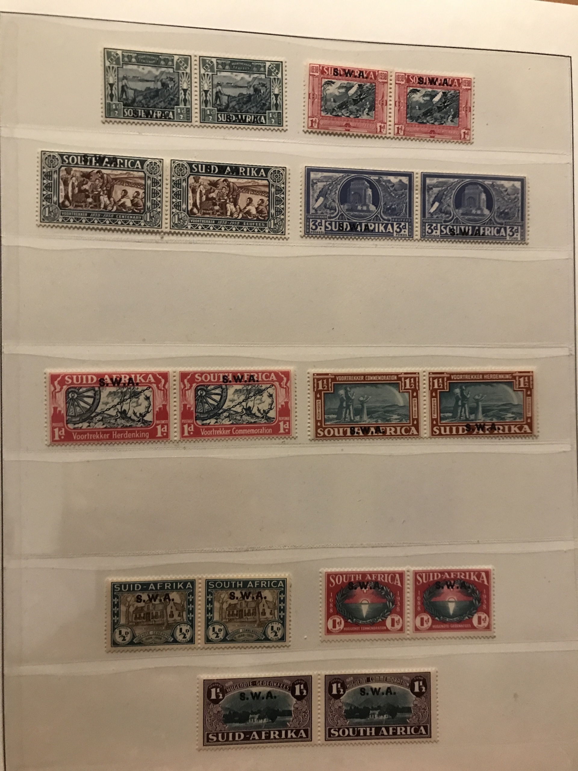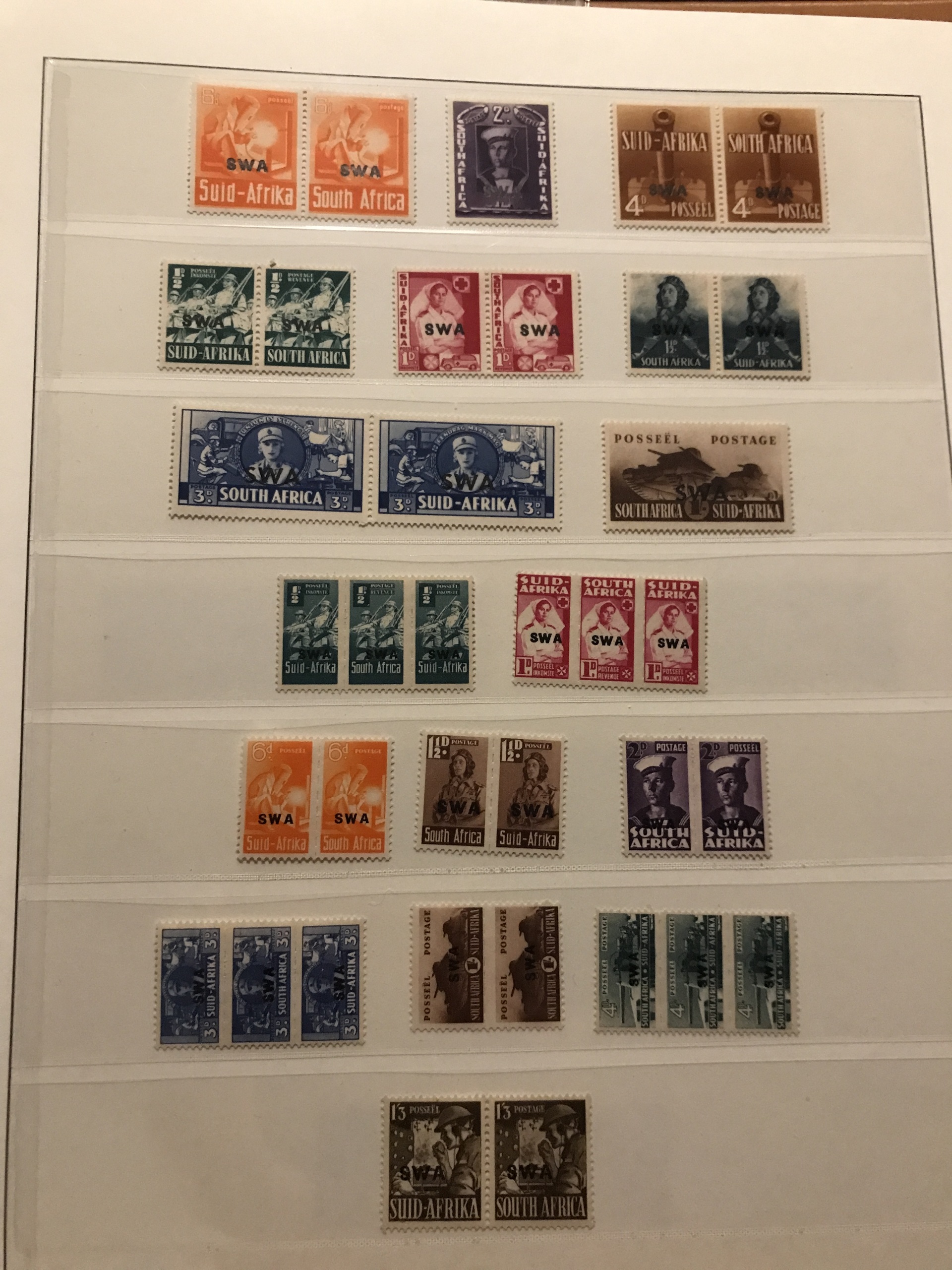South West Africa. ★★/★. Collection 1927-2000 in three Lindner Falzlos albums incl. e.g. Mi111*, 279-315 and 332-499 cpl **, 49 pair combinations etc. Apparently ** from 1942 and with exceptions complete. Please see a selection of scans at www.philea.se. Approx. 6 kg.