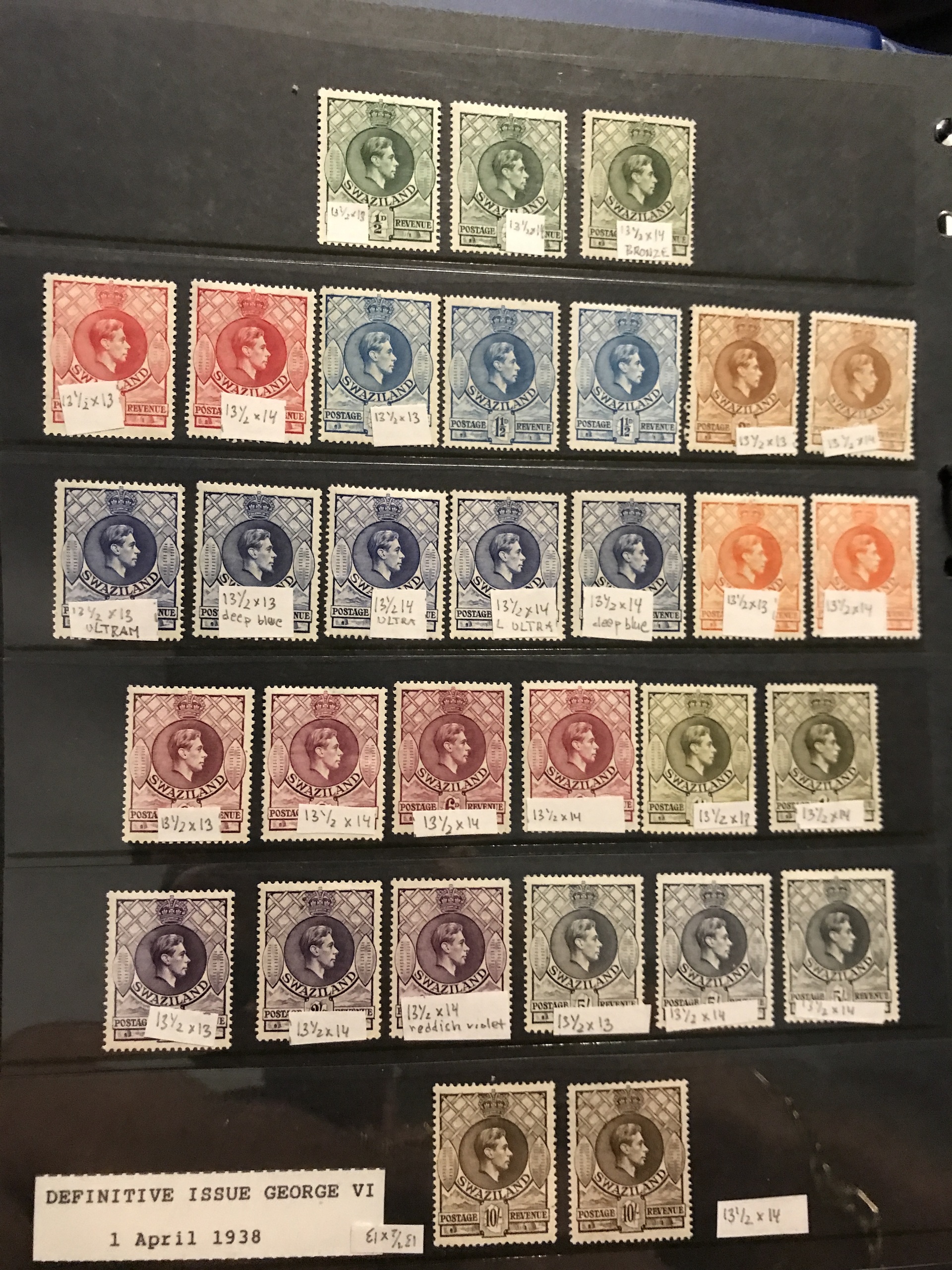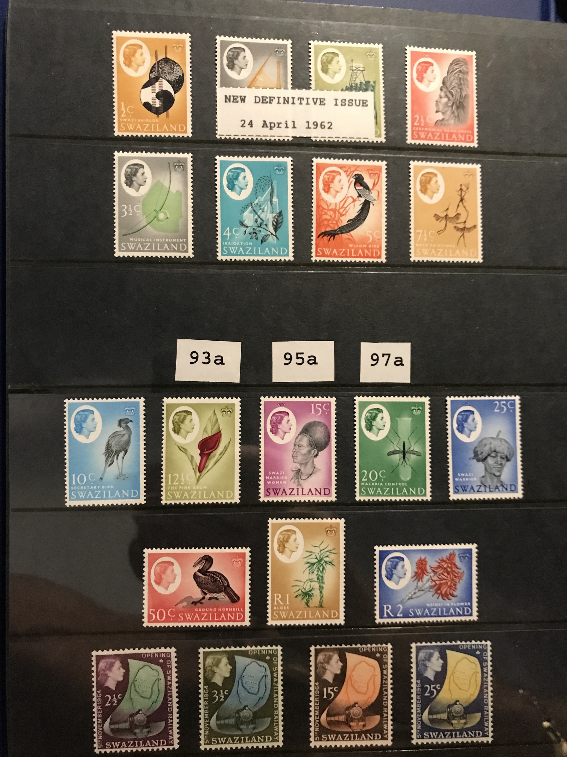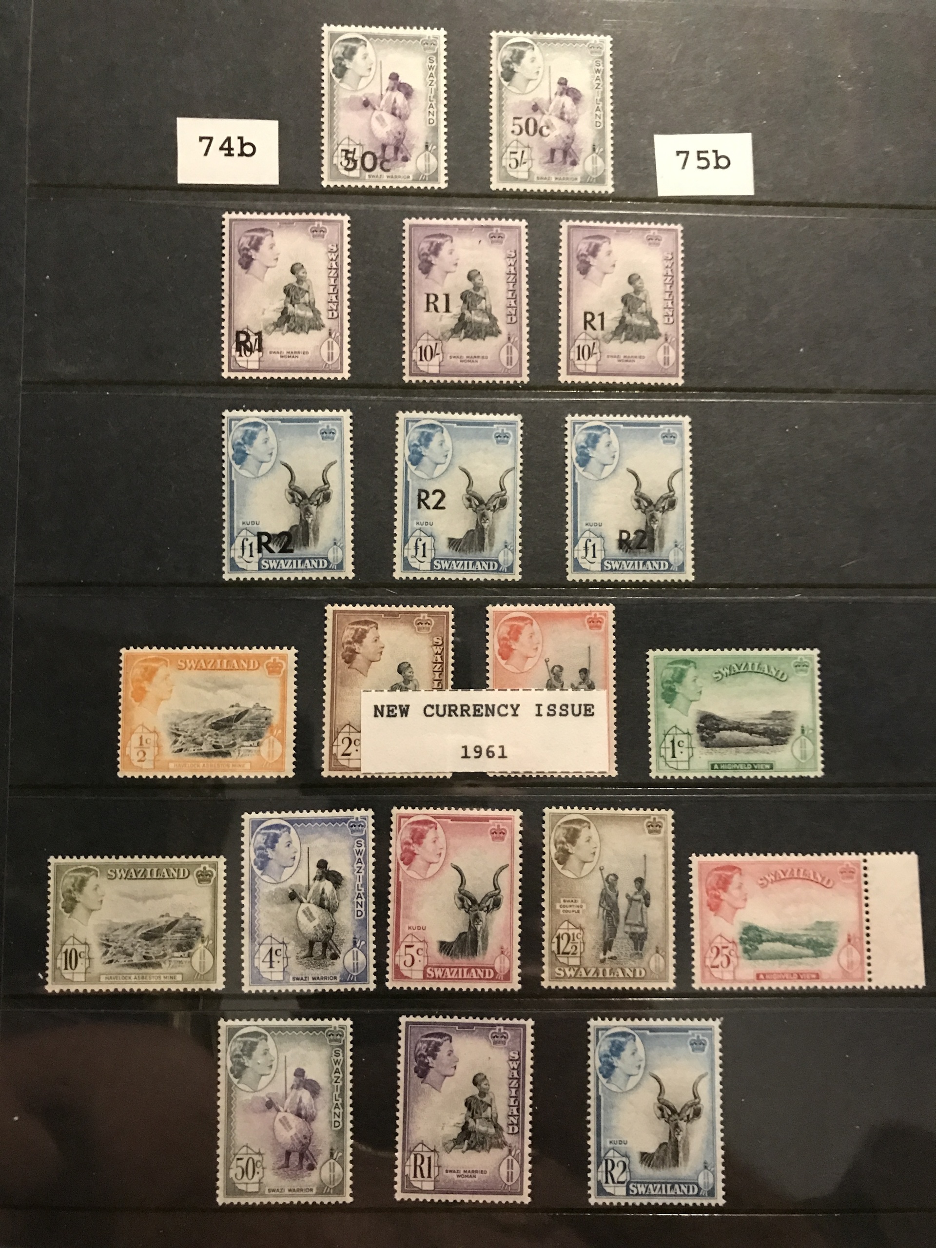 Swaziland. Mostly ★★. Collection 1889–1987 in Leuchtturm binder. Containing nice overprints 1889 (some reprints), Mi17–19, 55–66 and 80–107 **, different perforations, etc. Also some used blocks of four.