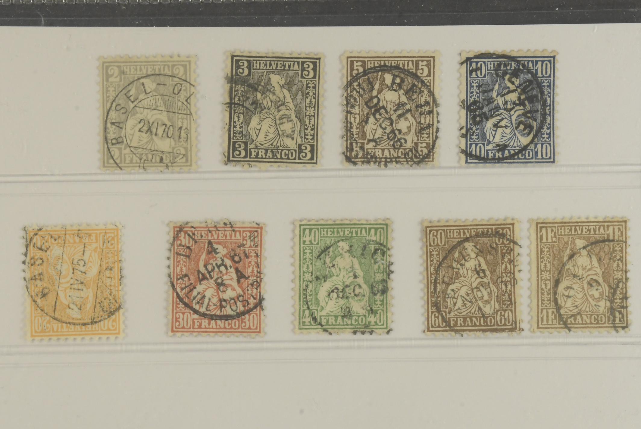 Switzerland. Michel 20–28 used, 1863 Sitting Helvetia SET (9). 60 f minor short perf. EUR 500